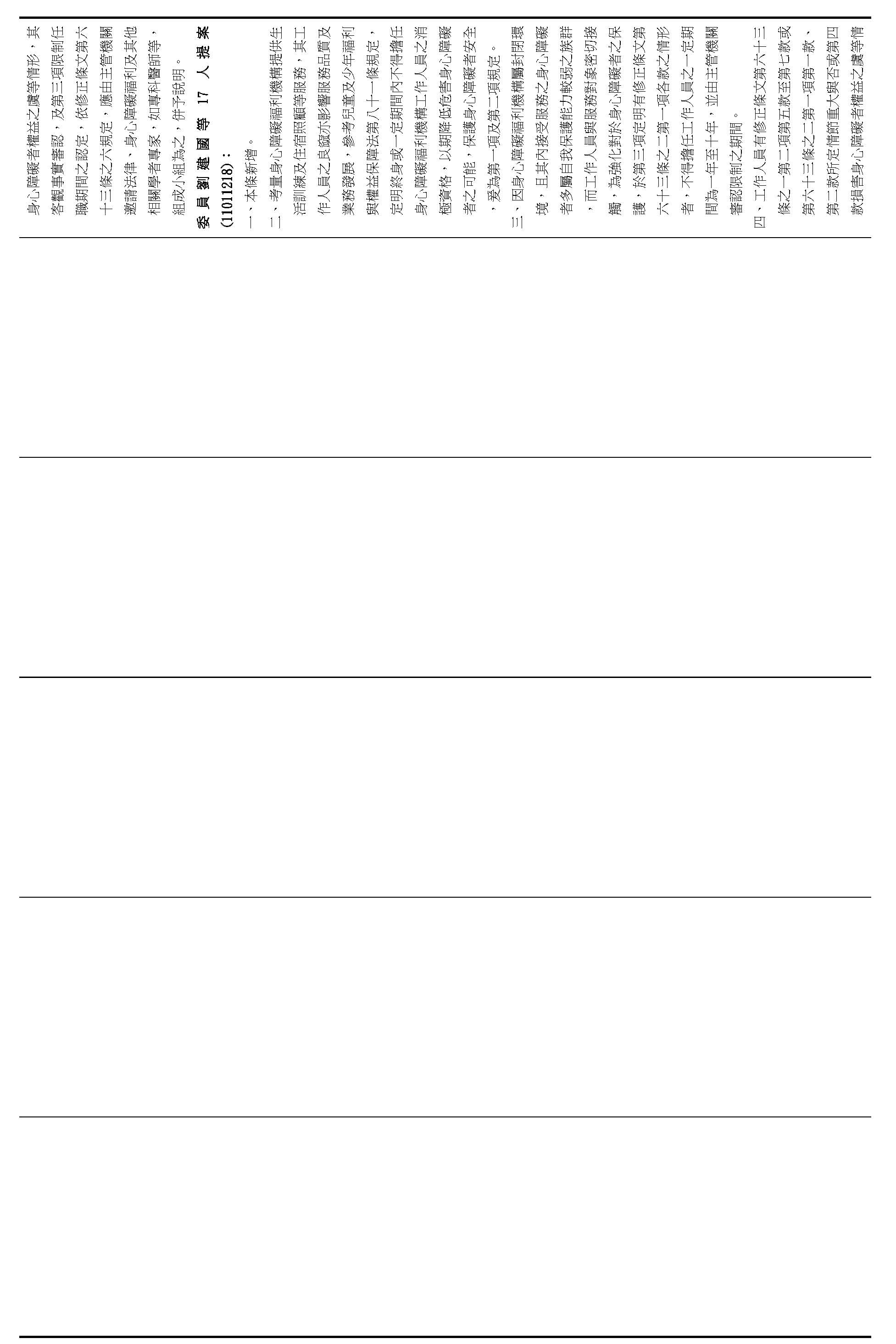 (十七)委員洪孟楷等18人擬具「身心障礙者權益保障法增訂第四十條之一條文草案」案。