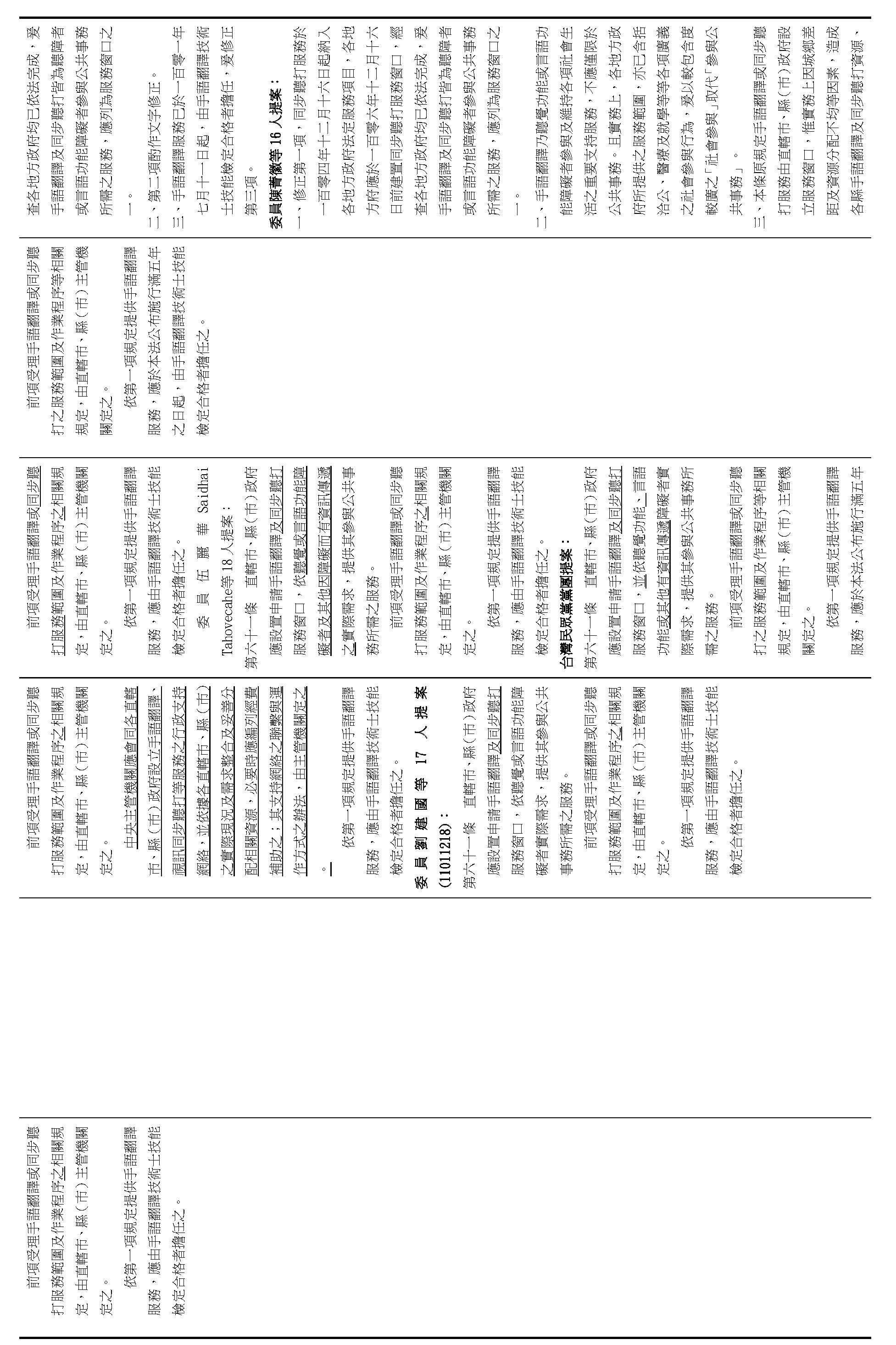 先作以下宣告:為使聽語障的朋友們能更了解本日議案的審查過程,請委員及官員分別到質詢臺及備詢臺發言,以利手語翻譯員畫面的轉播。