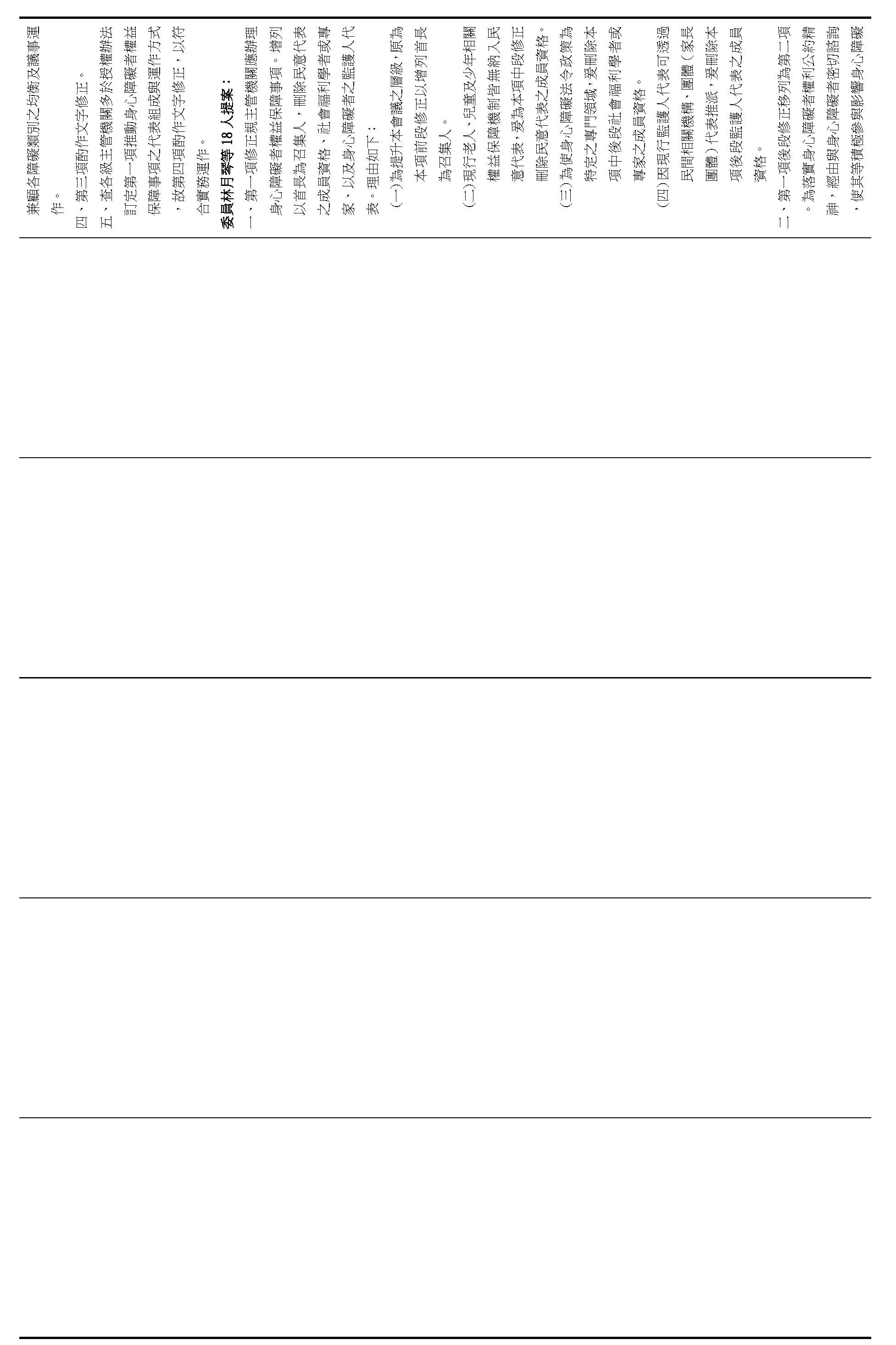 (十八)委員羅美玲等16人擬具「身心障礙者權益保障法部分條文修正草案」案。