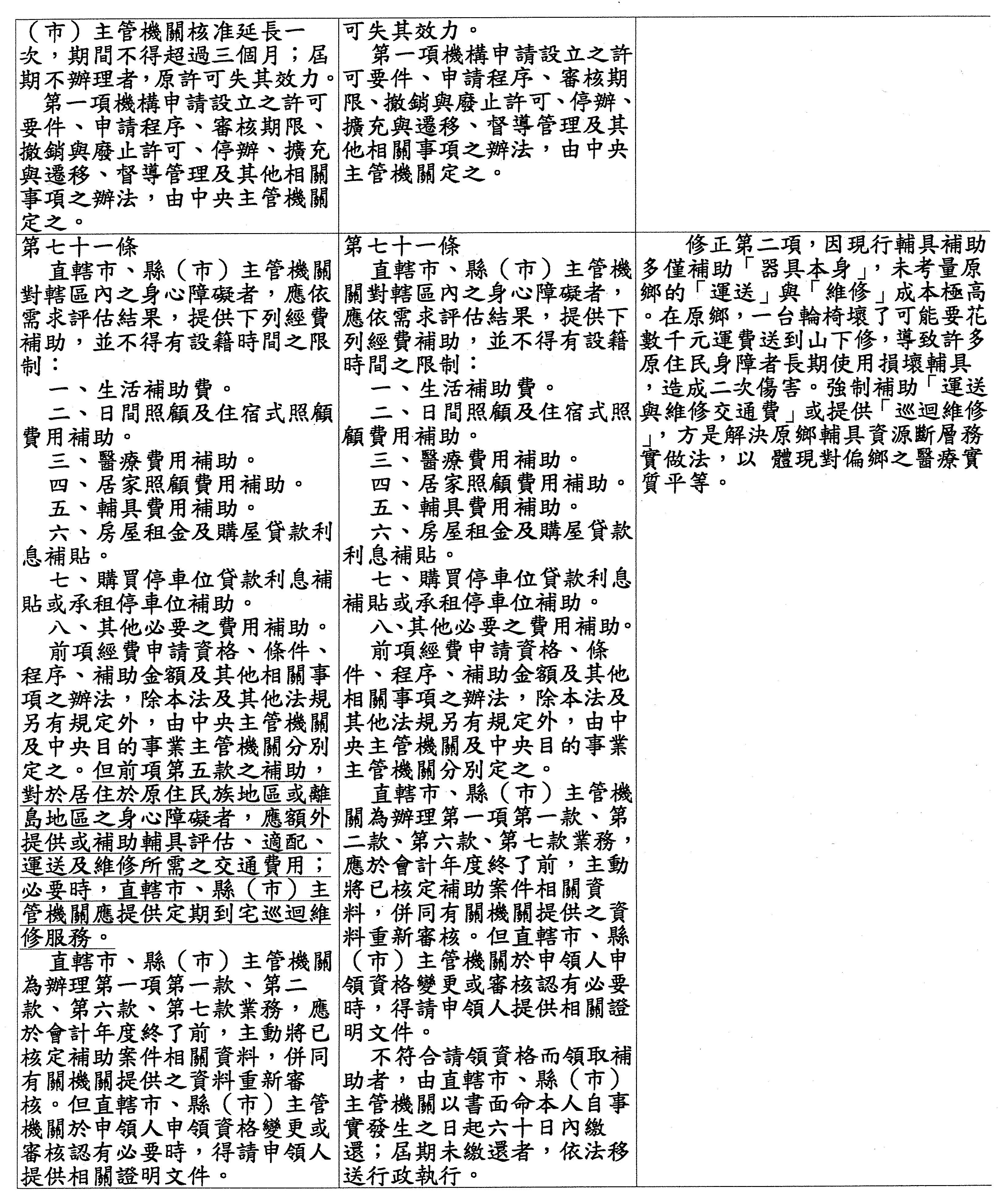 (二十)委員林楚茵等17人擬具「身心障礙者權益保障法第七十一條條文修正草案」案。