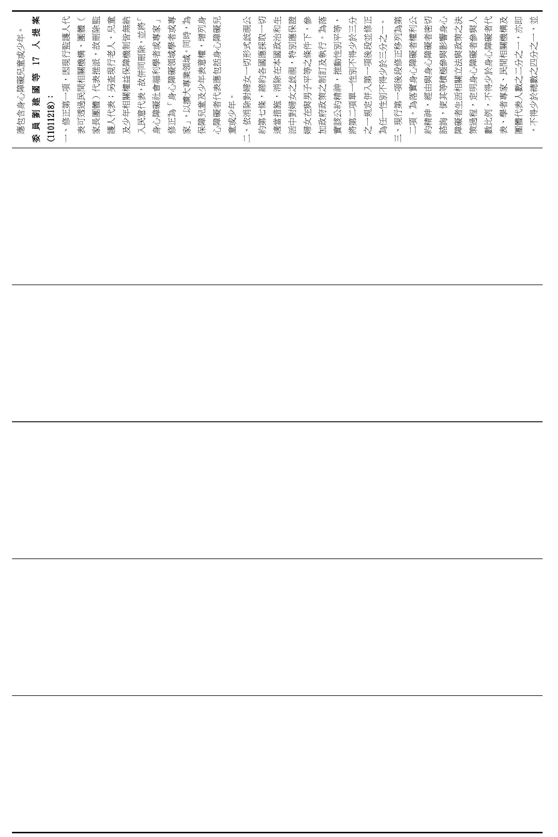 (三)委員王育敏等17人擬具「身心障礙者權益保障法部分條文修正草案」案。