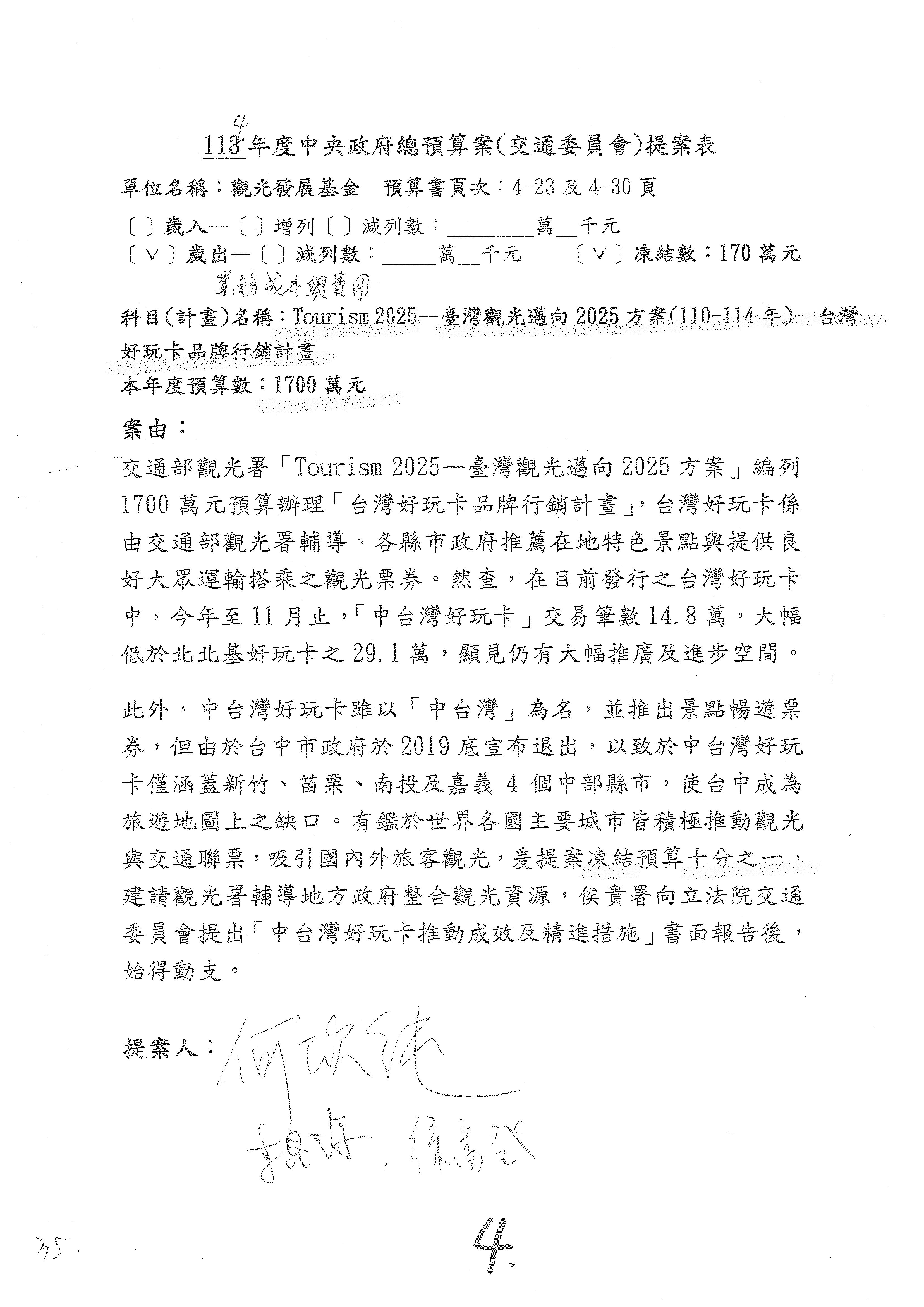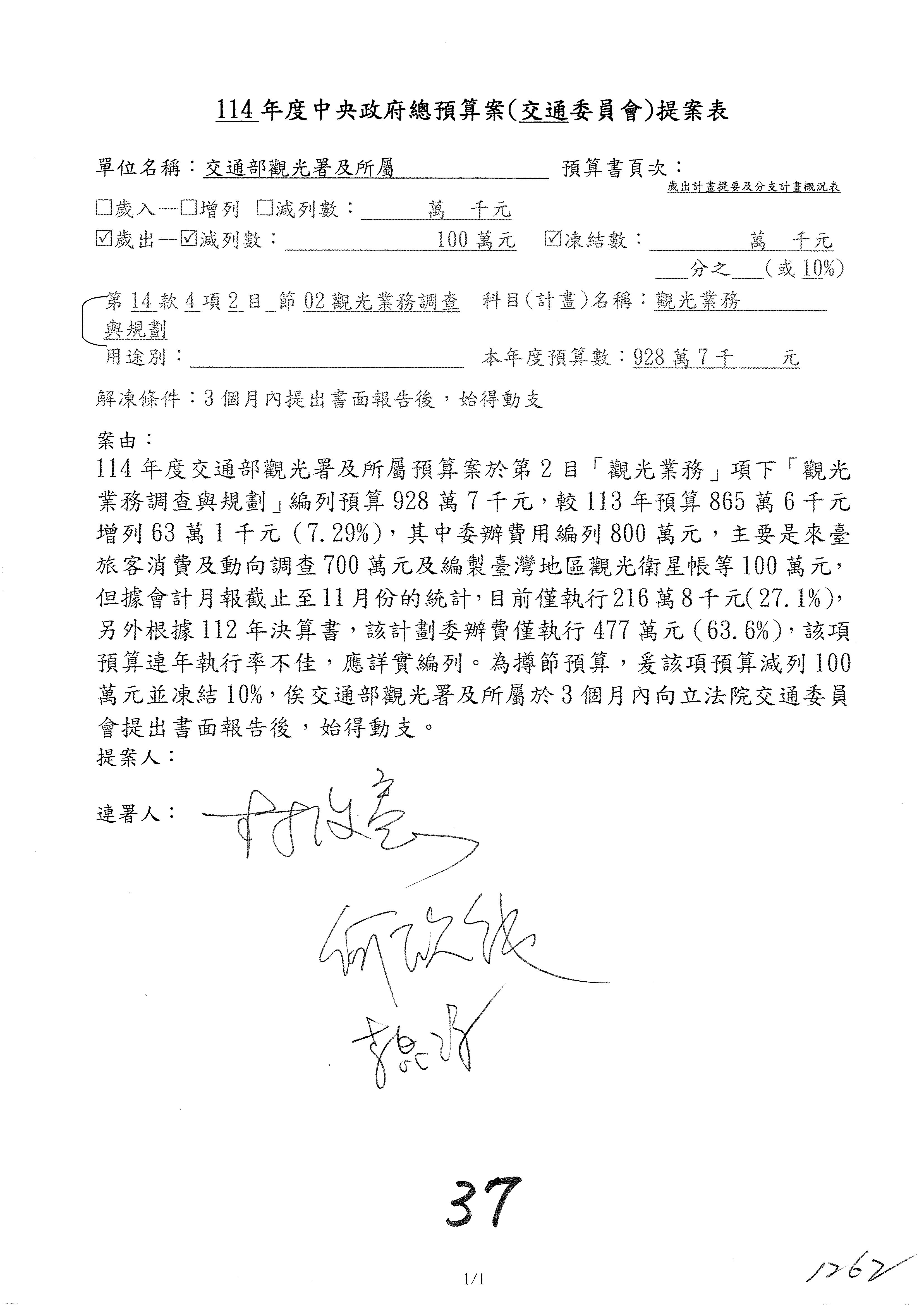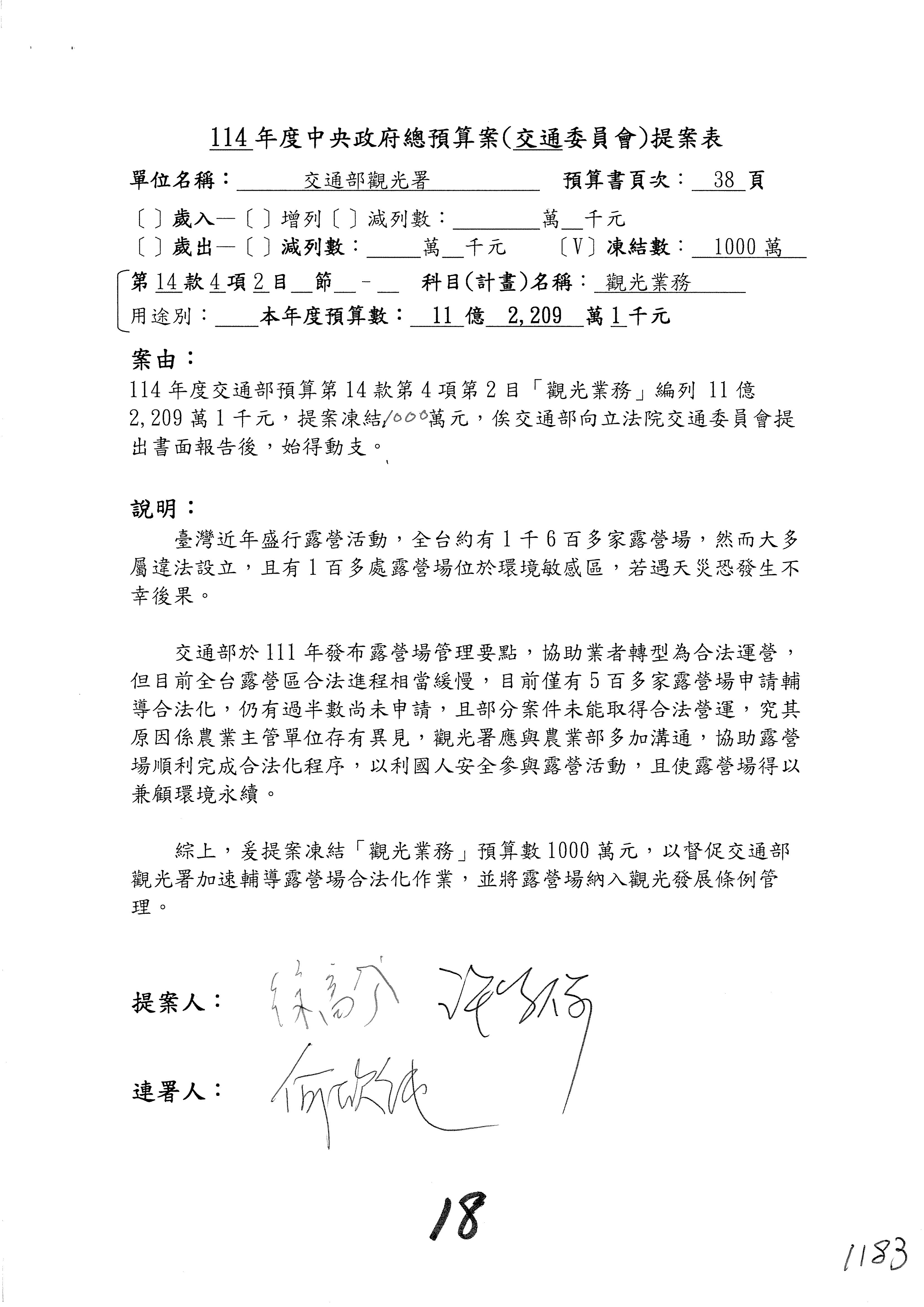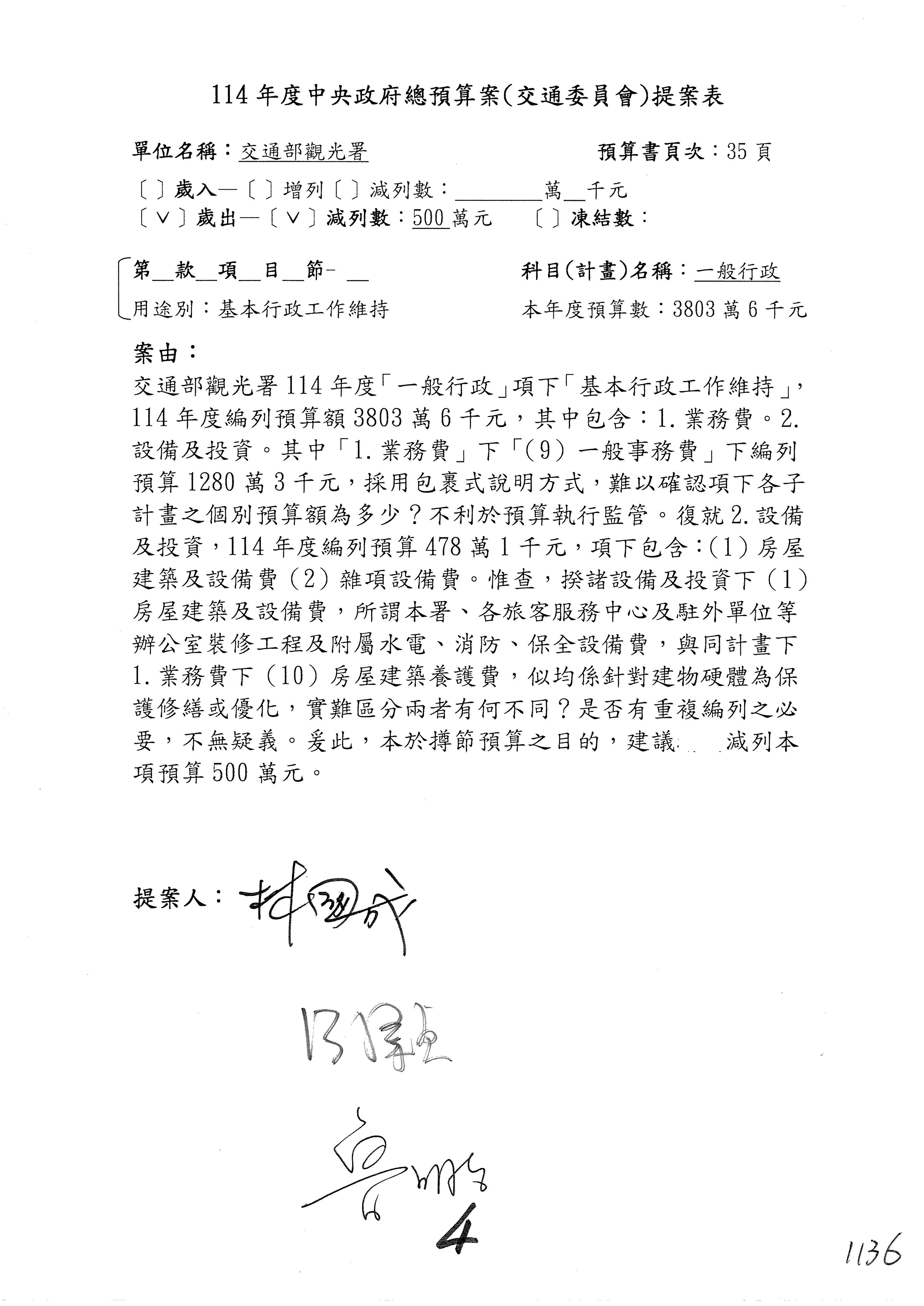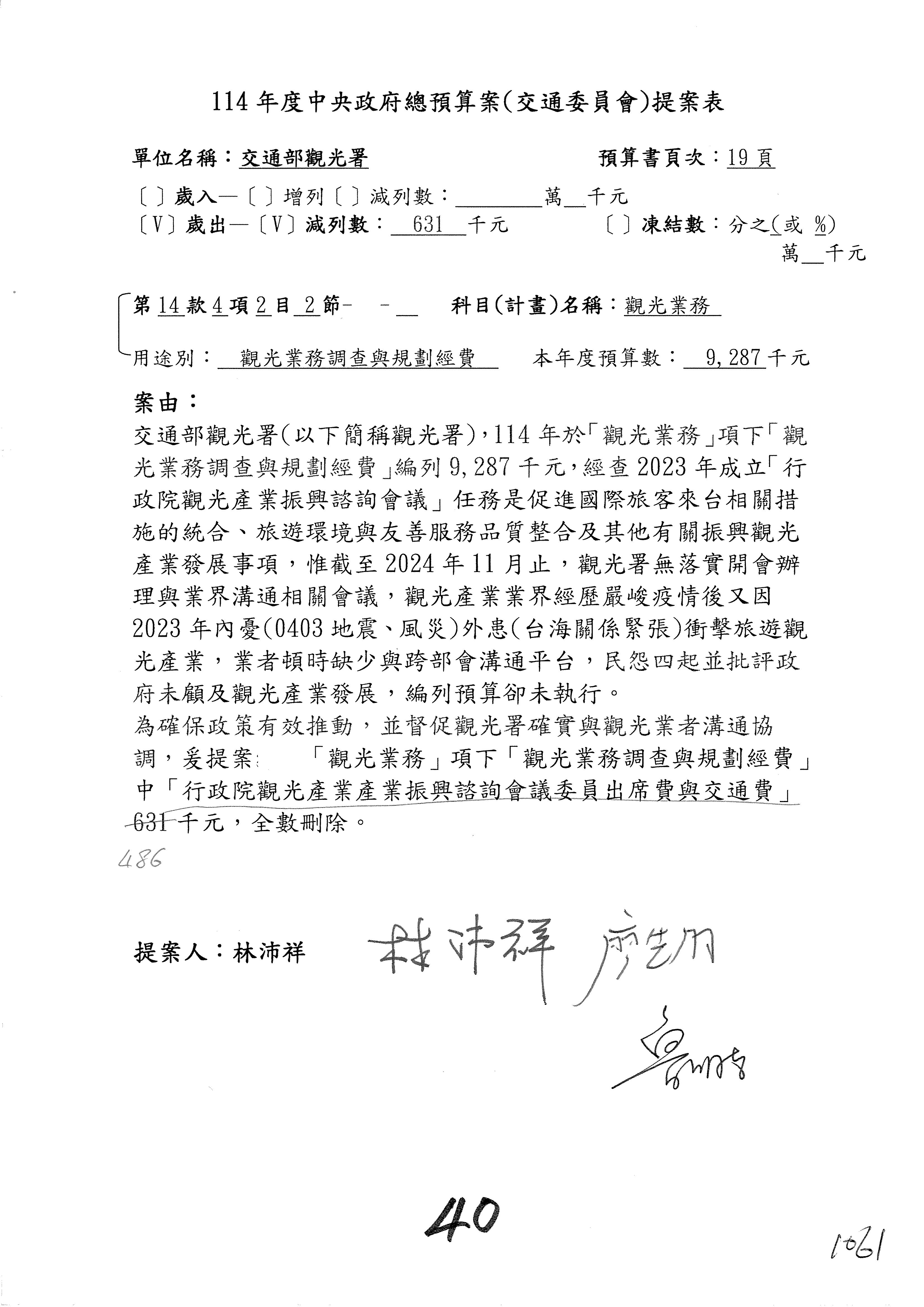接下來處理交通部觀光發展基金114年度附屬單位預算,請各位參照建議併案及預算表。開始處理第1案。第1案林國成委員已經改主決議,沒問題吧?