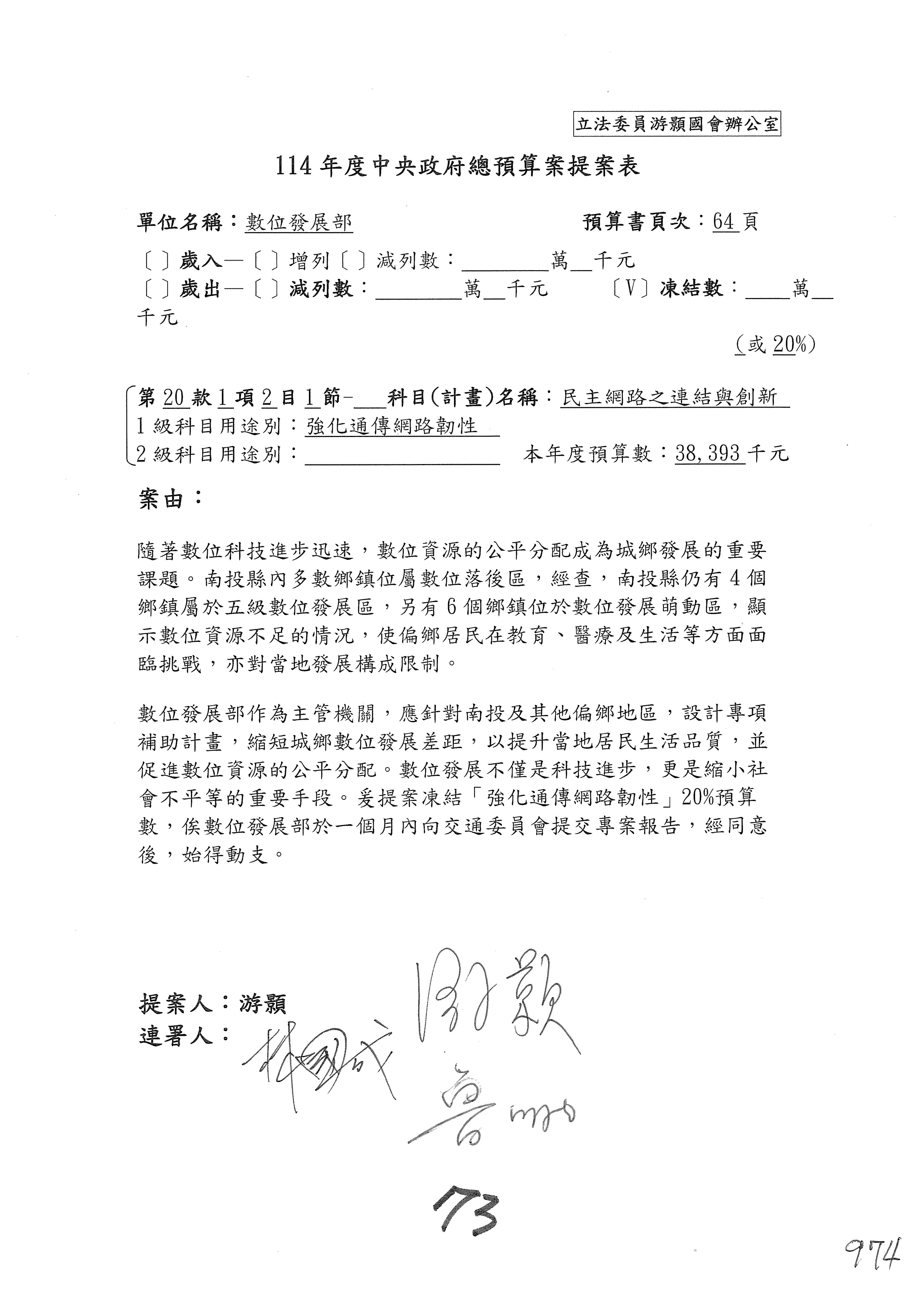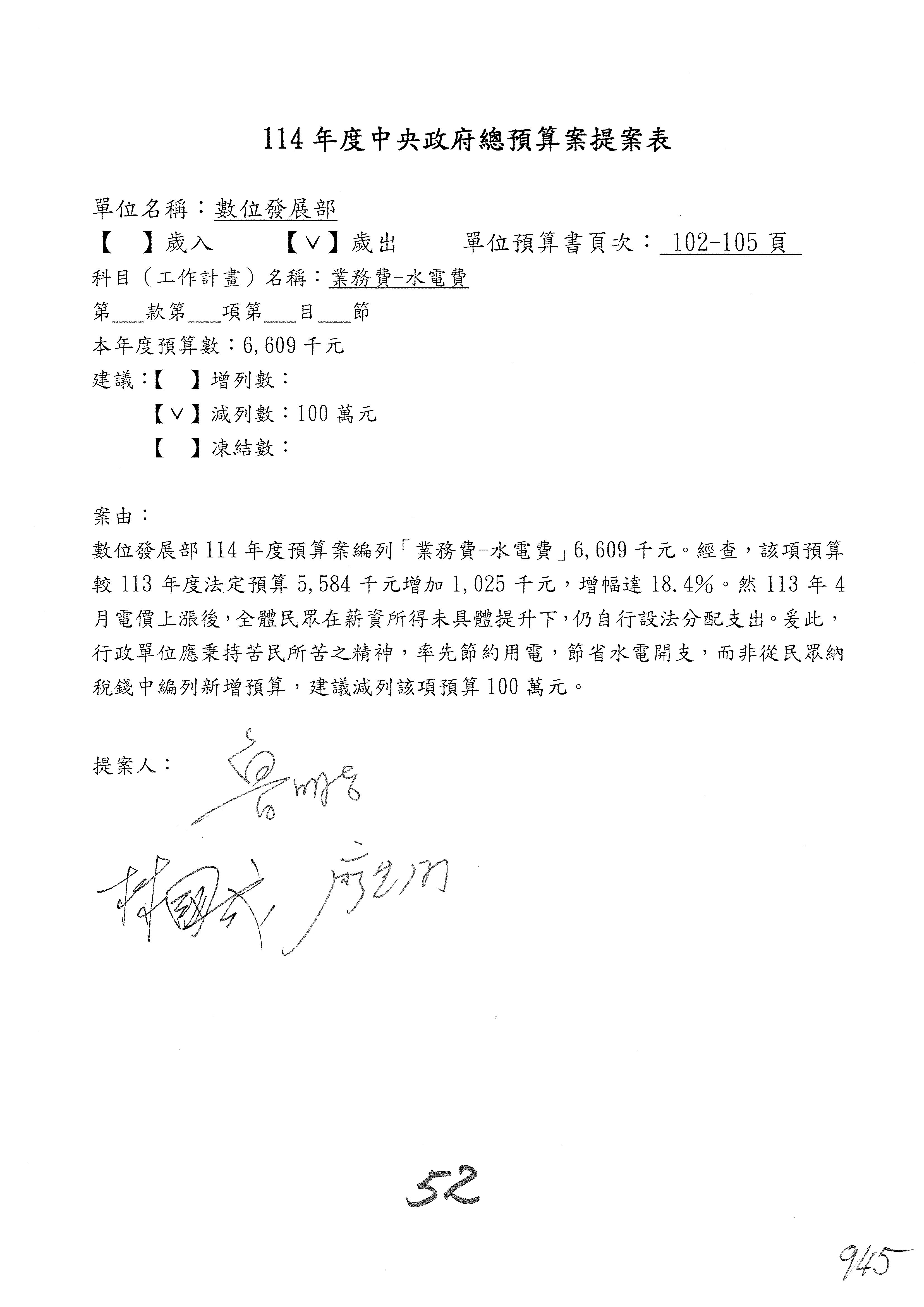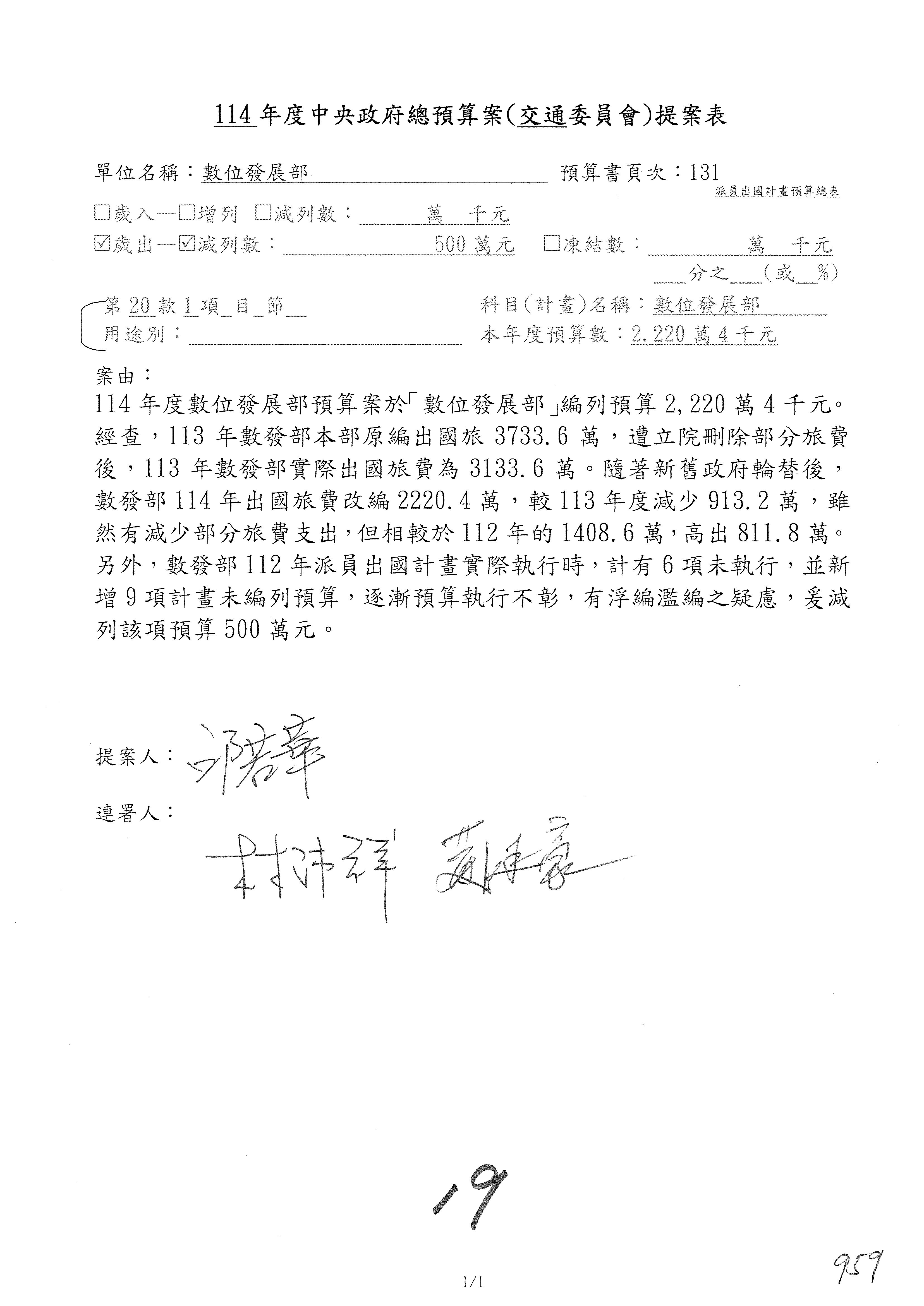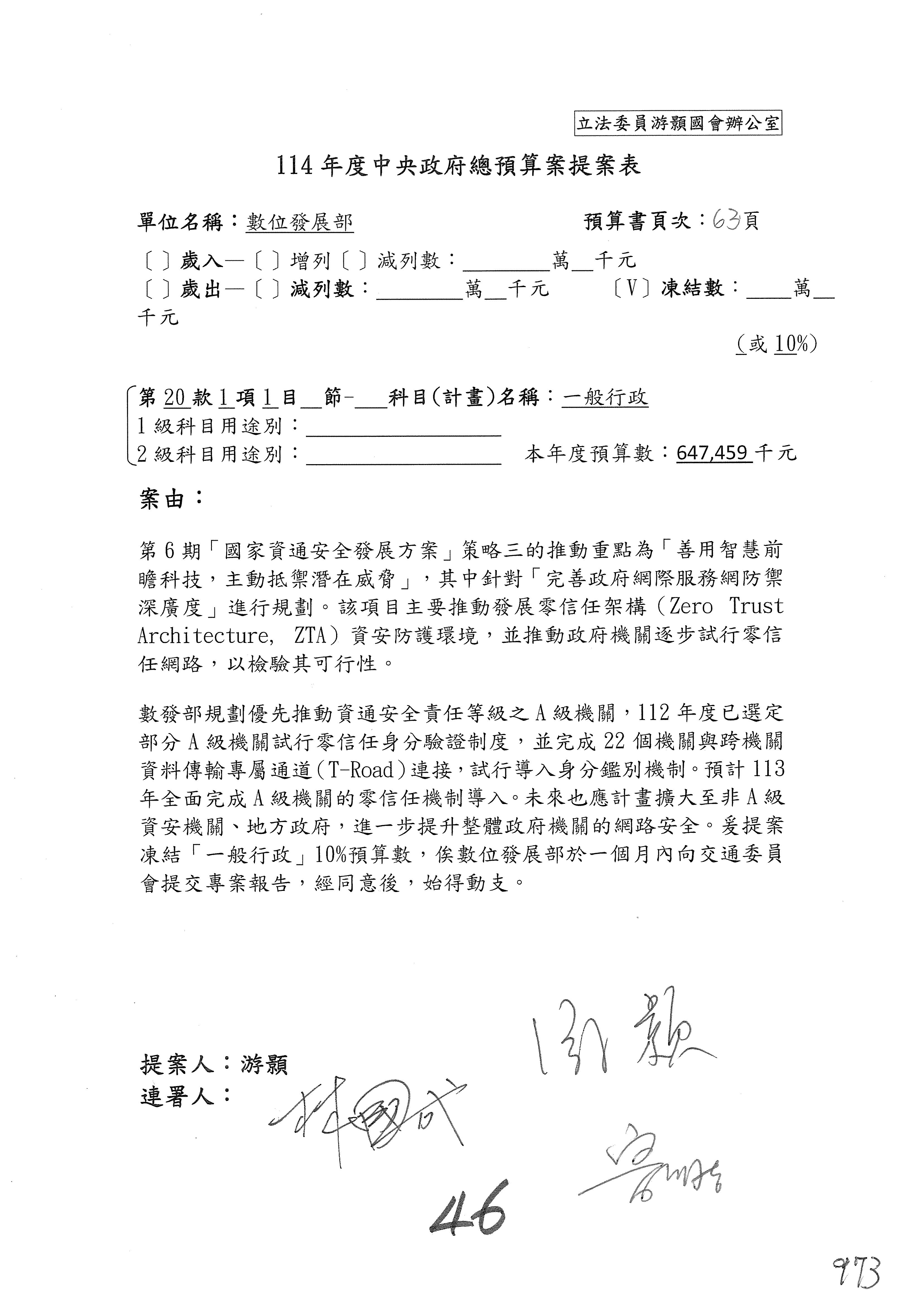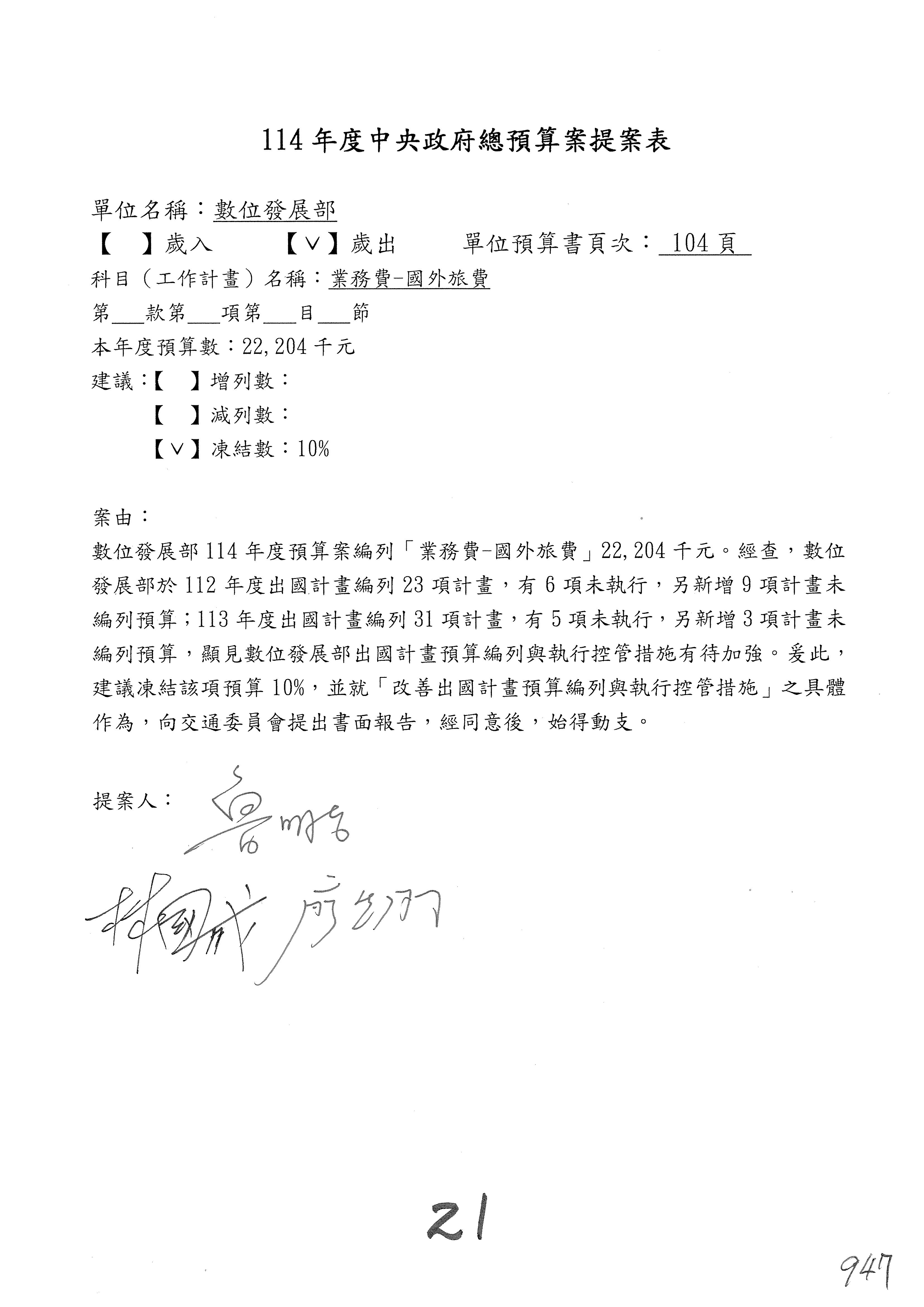 謝謝各位委員,現在請拿出最大本的,這應該算是今天最厚的,也請各位翻開數位發展部114年度單位預算─建議併案及預算表,待會審理預算按照這個併案審理的順序來審理。