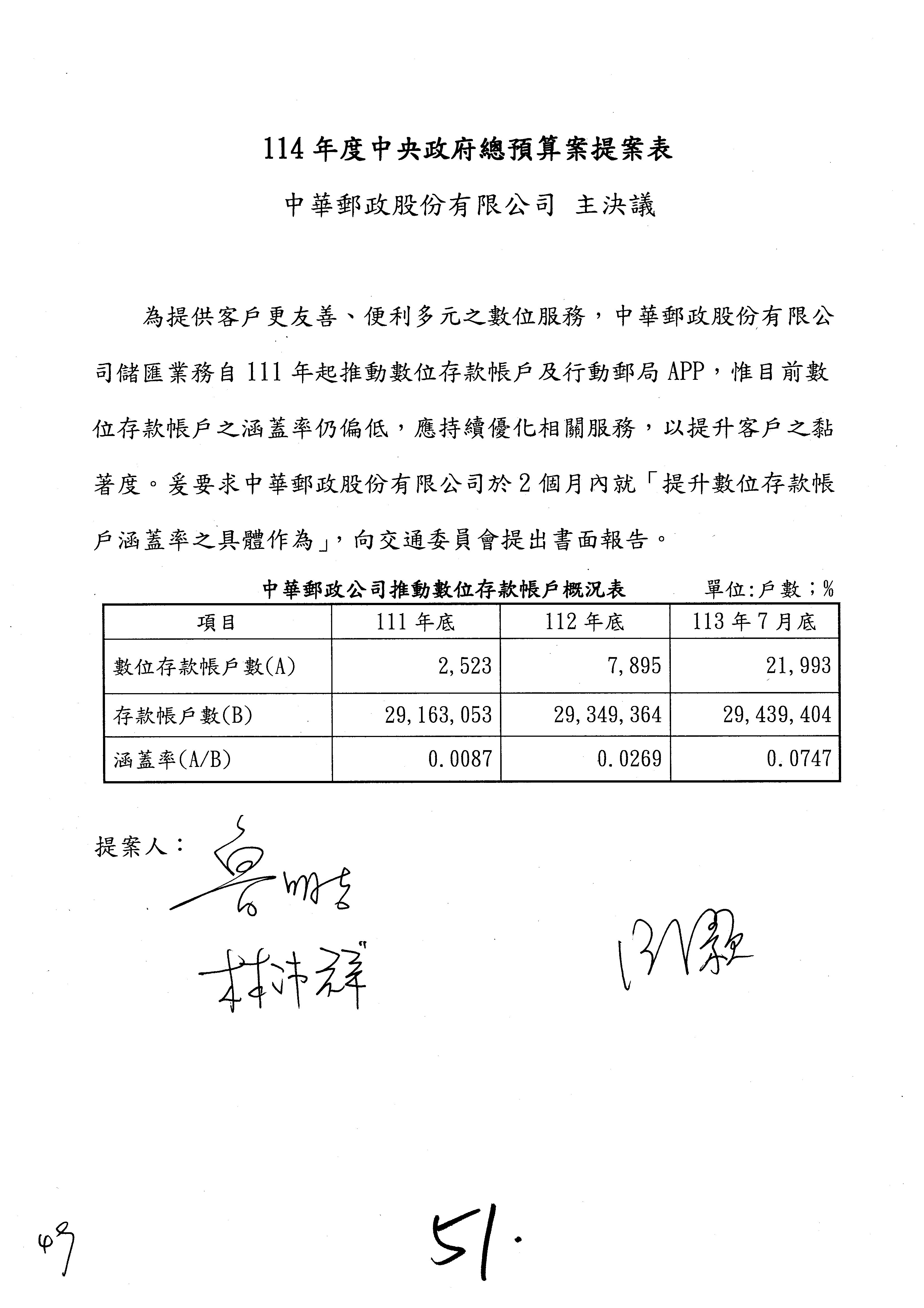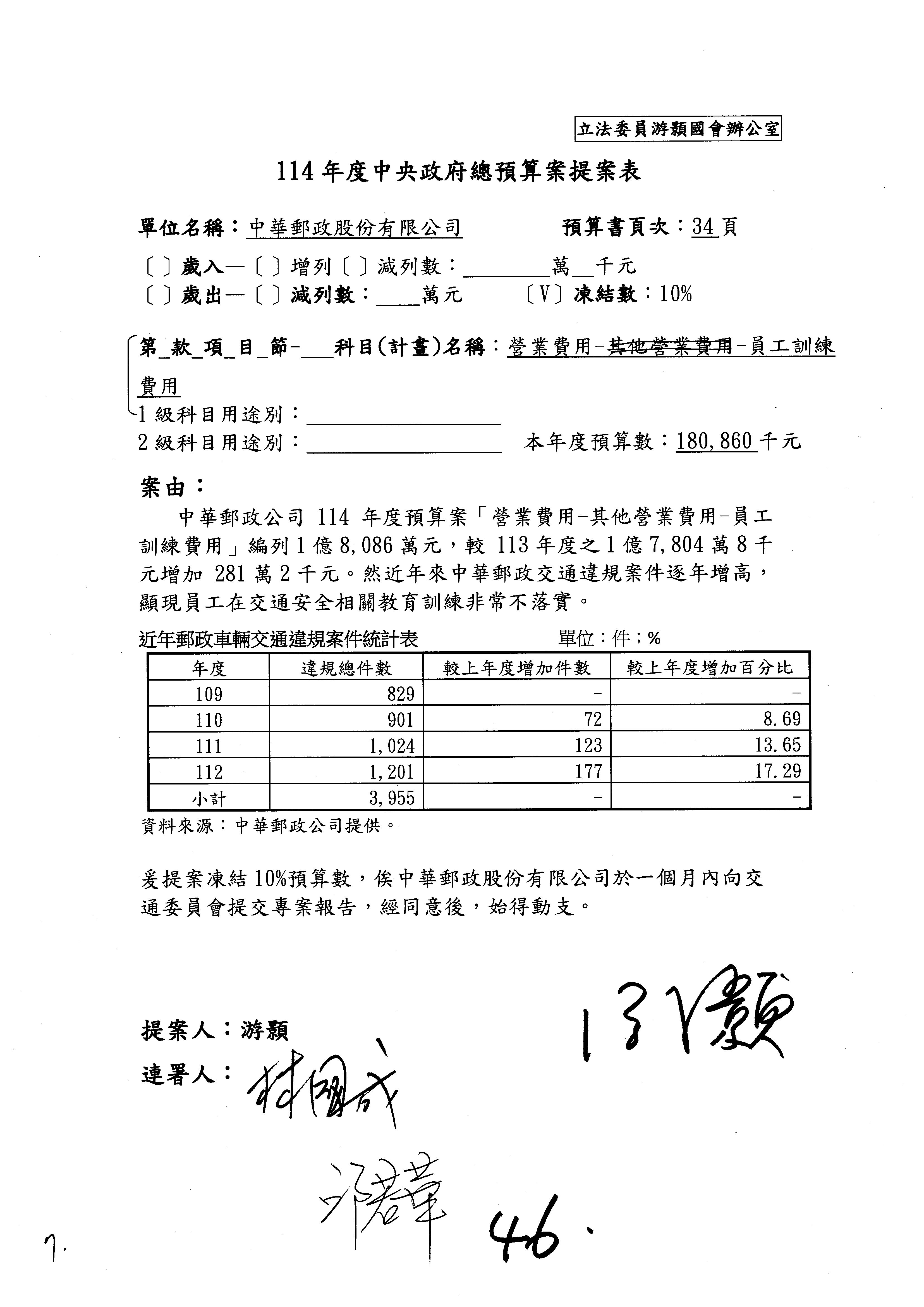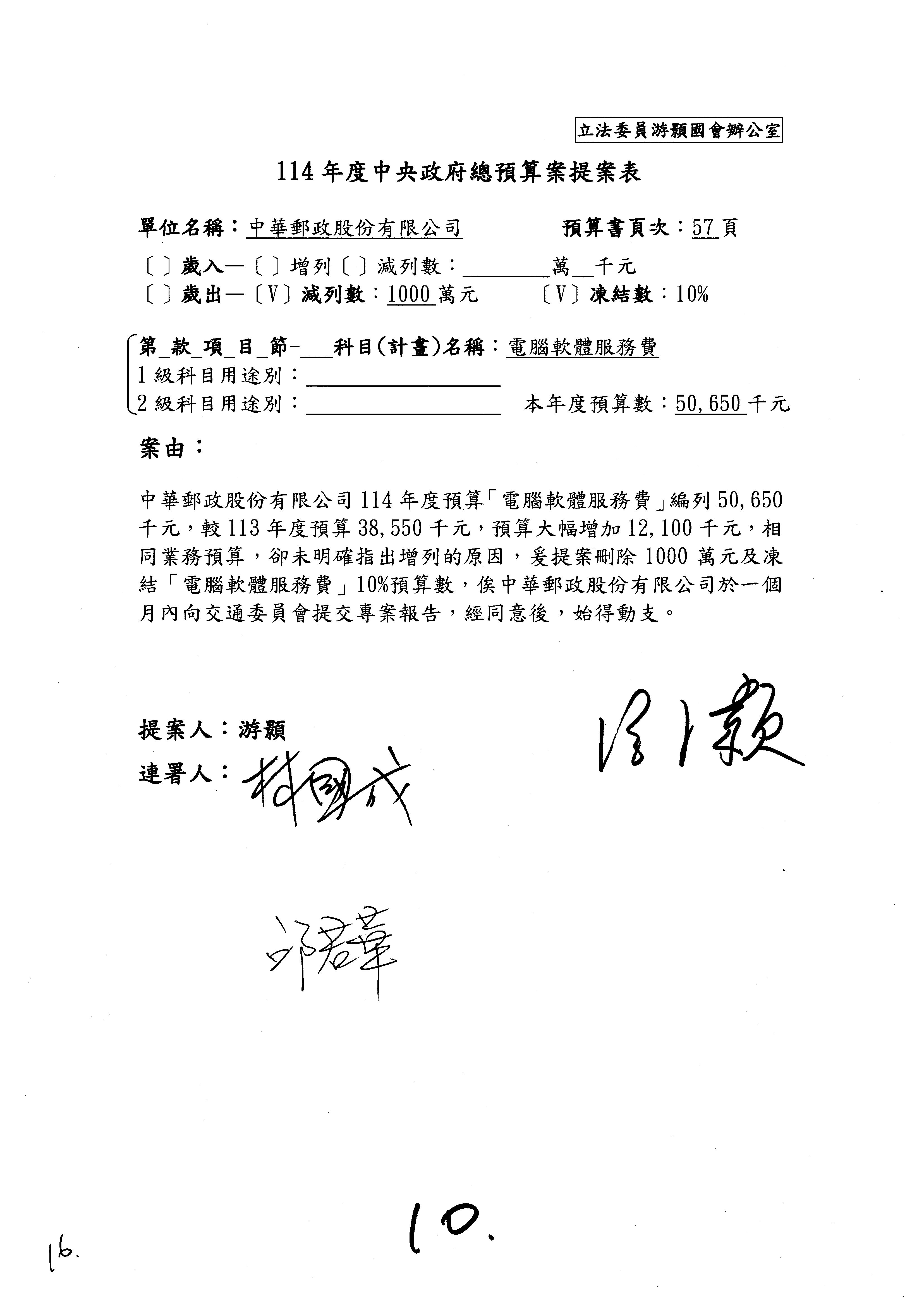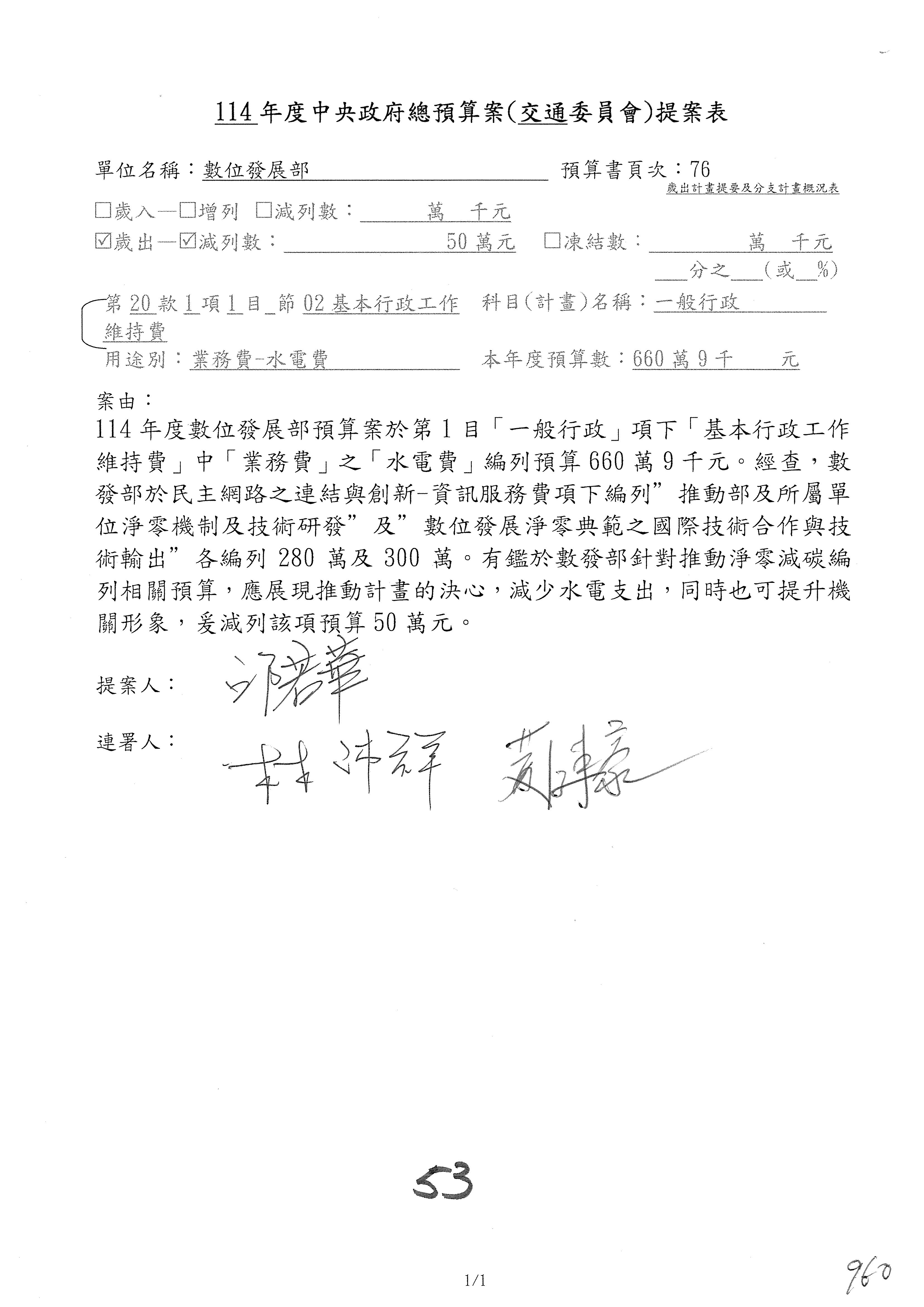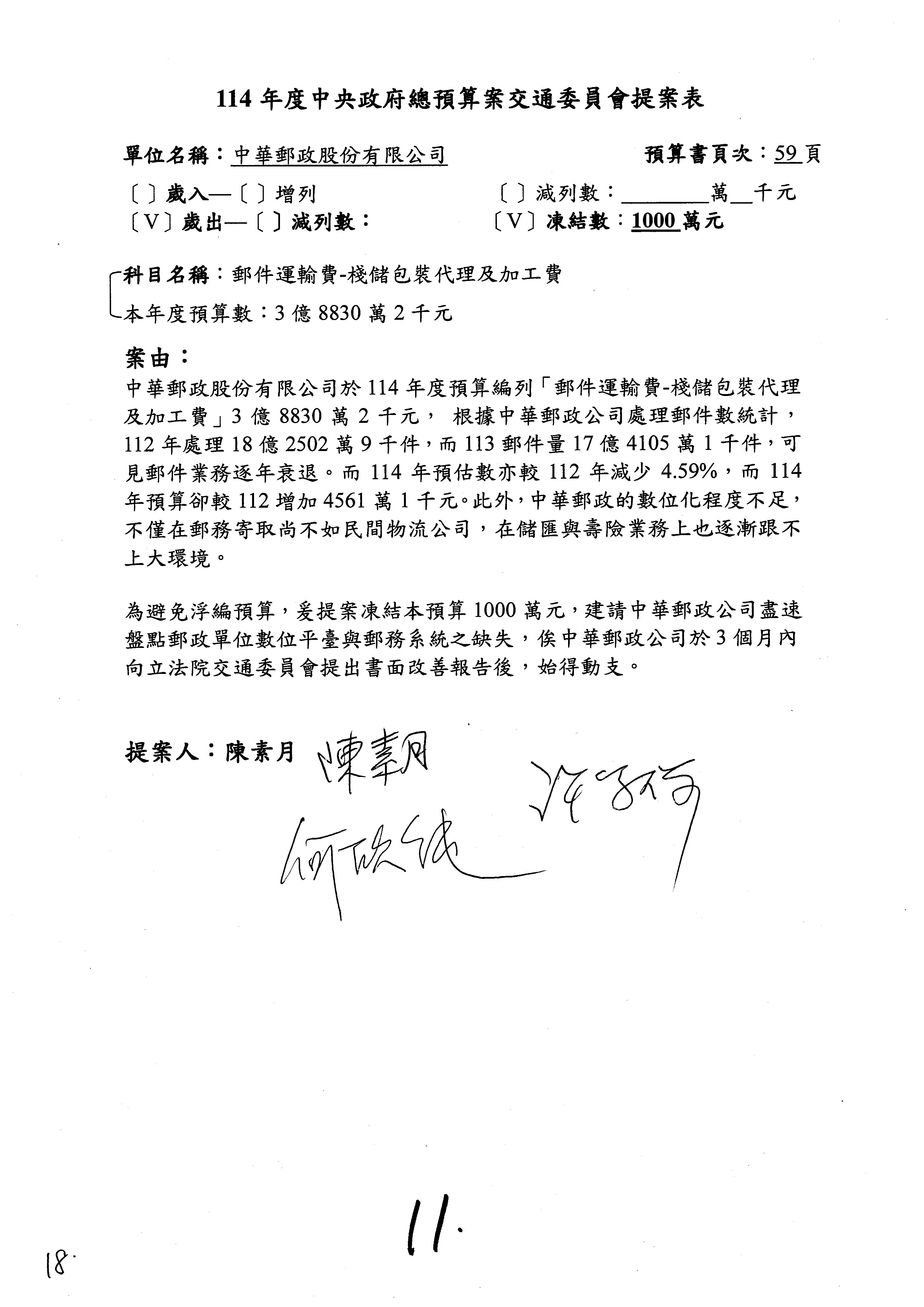 林委員國成:這個部分原本我想說增列1億,經過溝通他們所有的作法,我在這裡是有要求,數位部也原則性同意,三個月以內向立法院交通委員會提出書面報告,我也同意不增列,這點特別跟召集人說明跟報告。