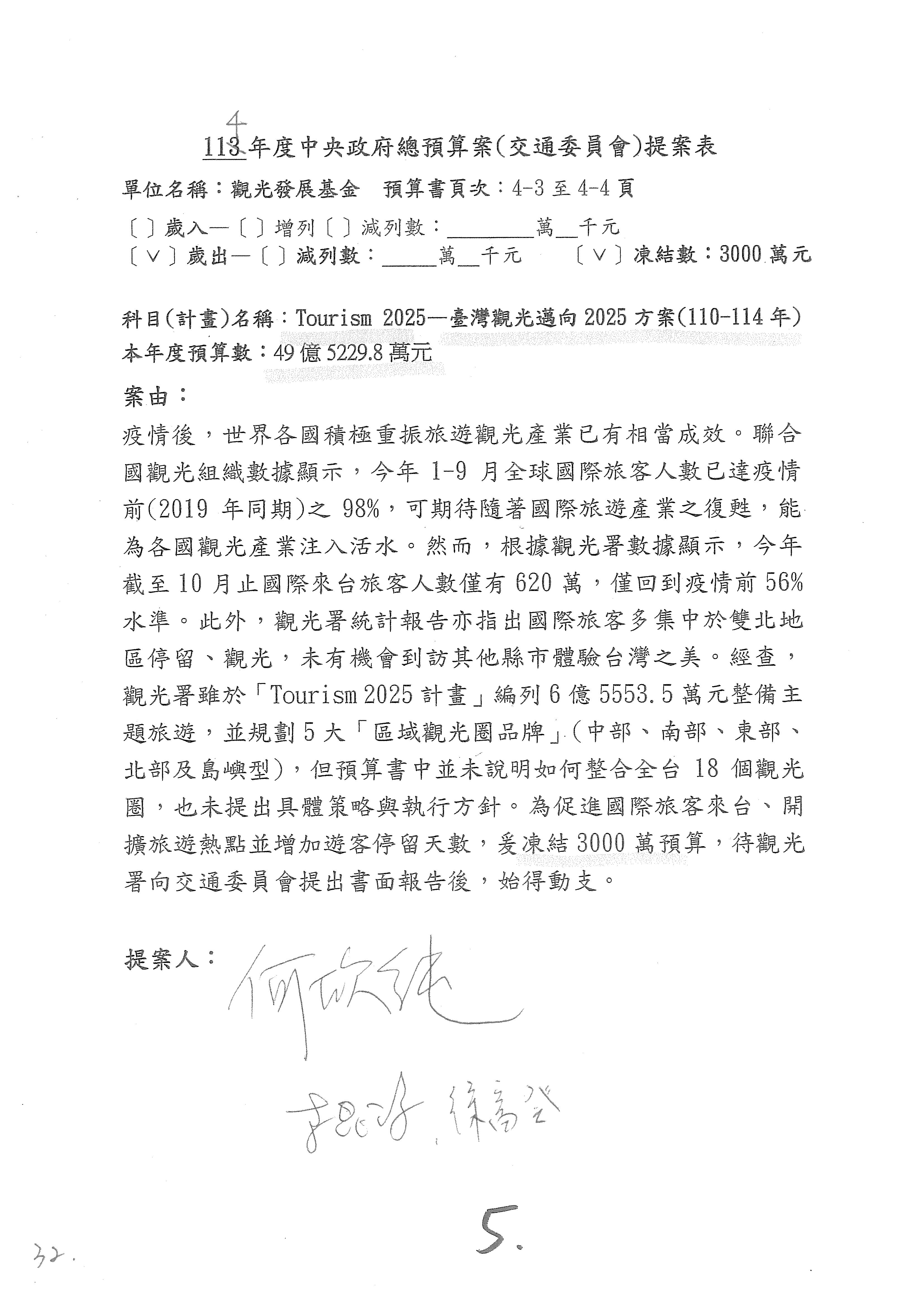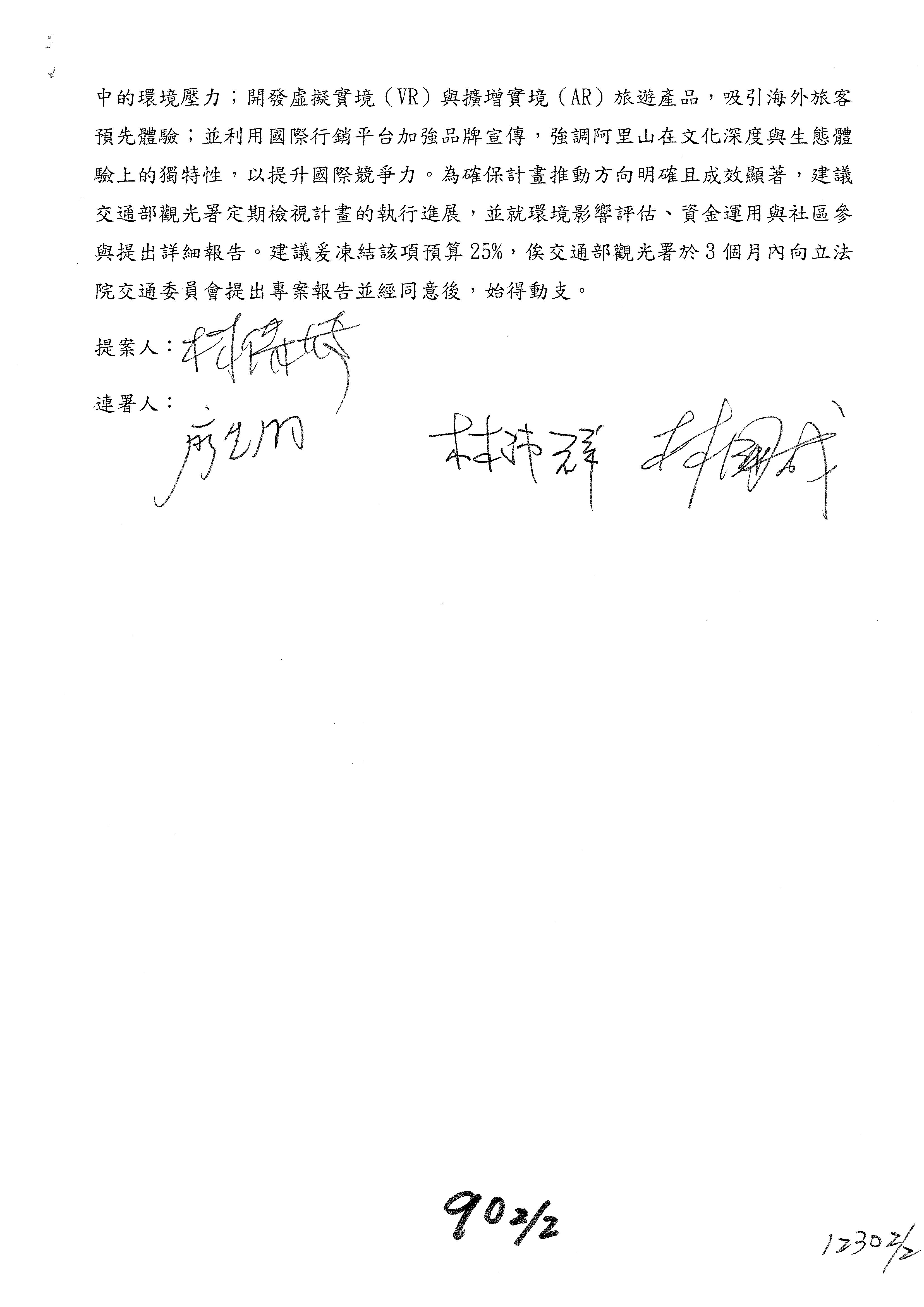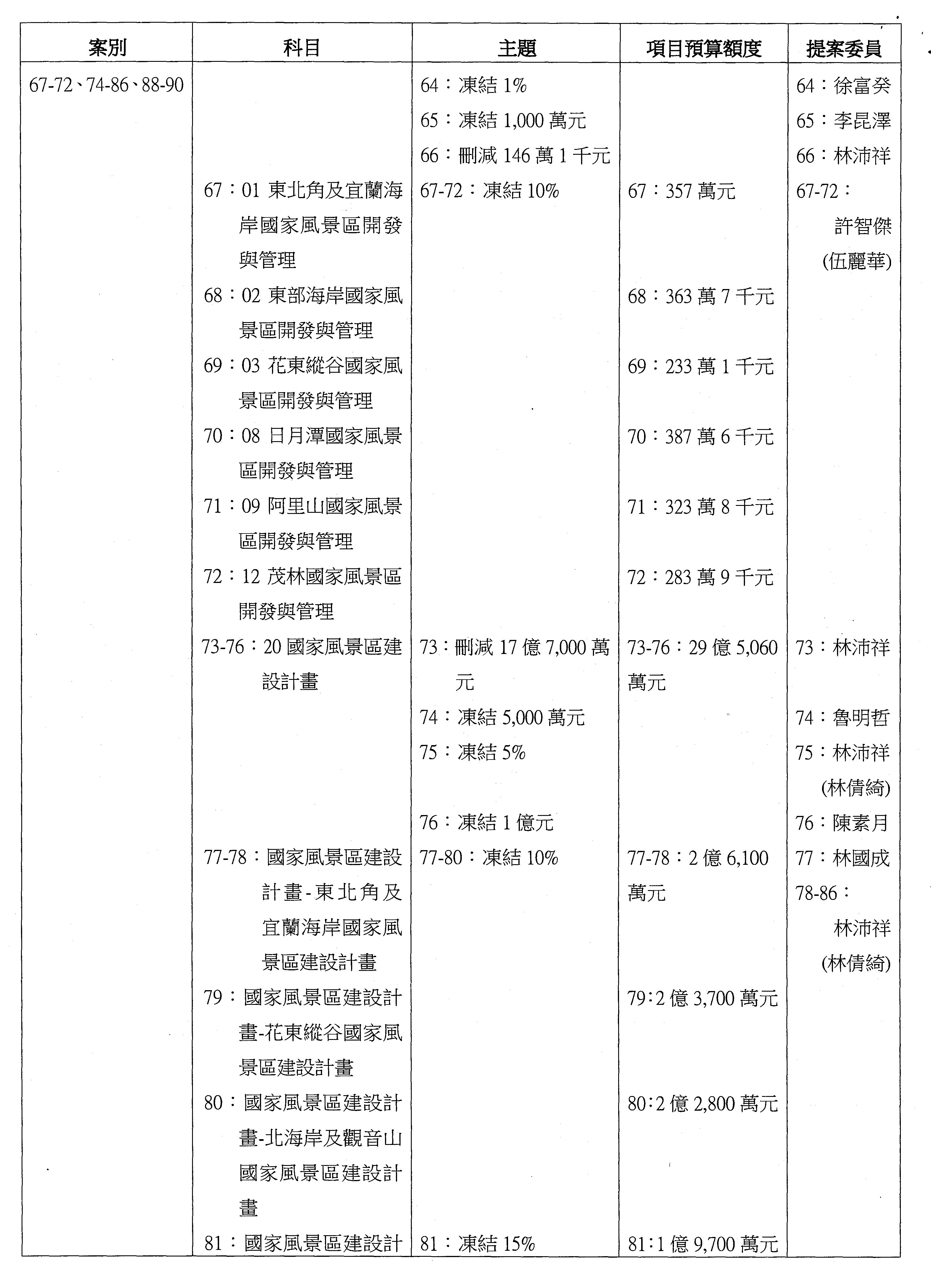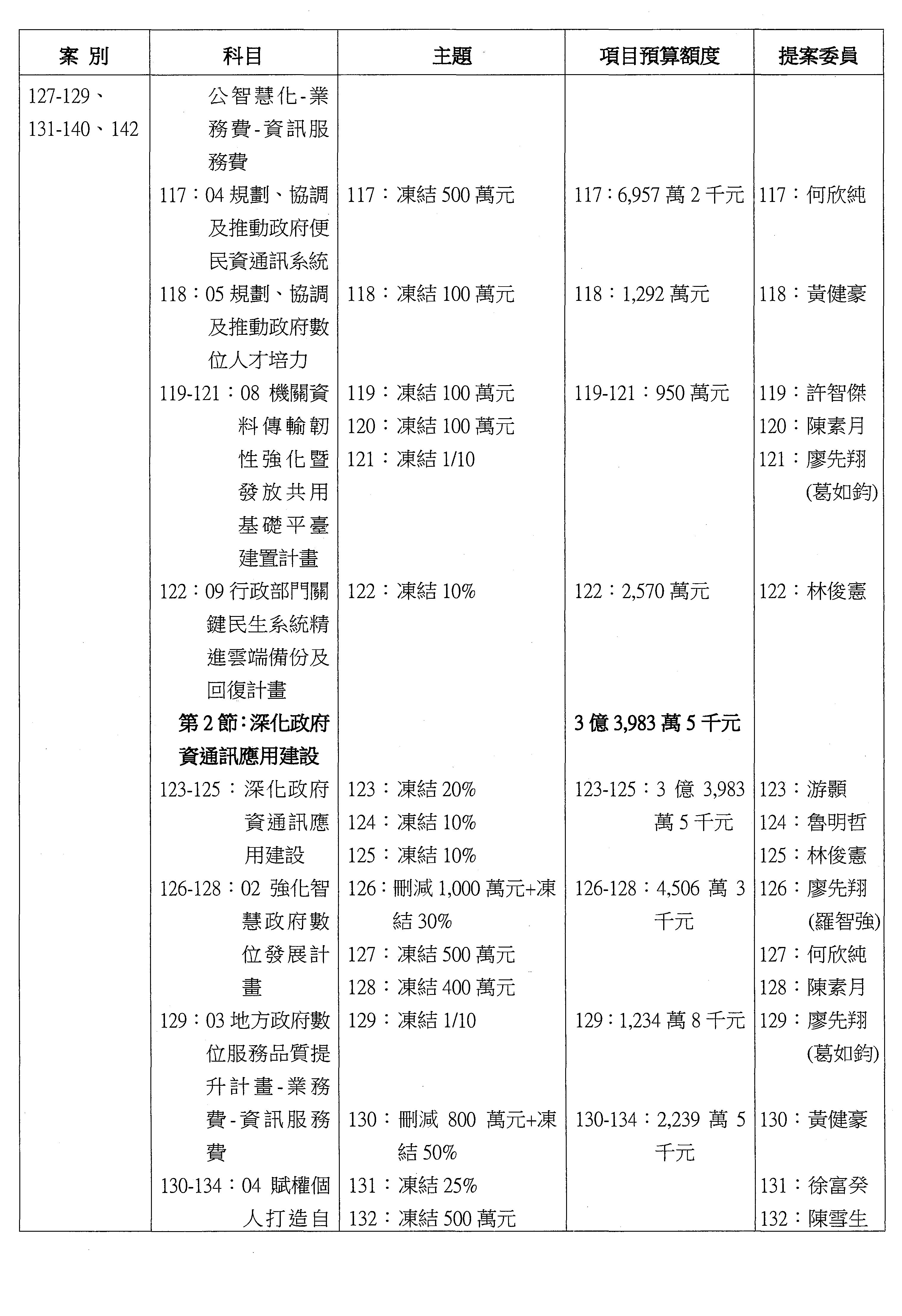 主席:凍結5%,提書面報告始得動支。