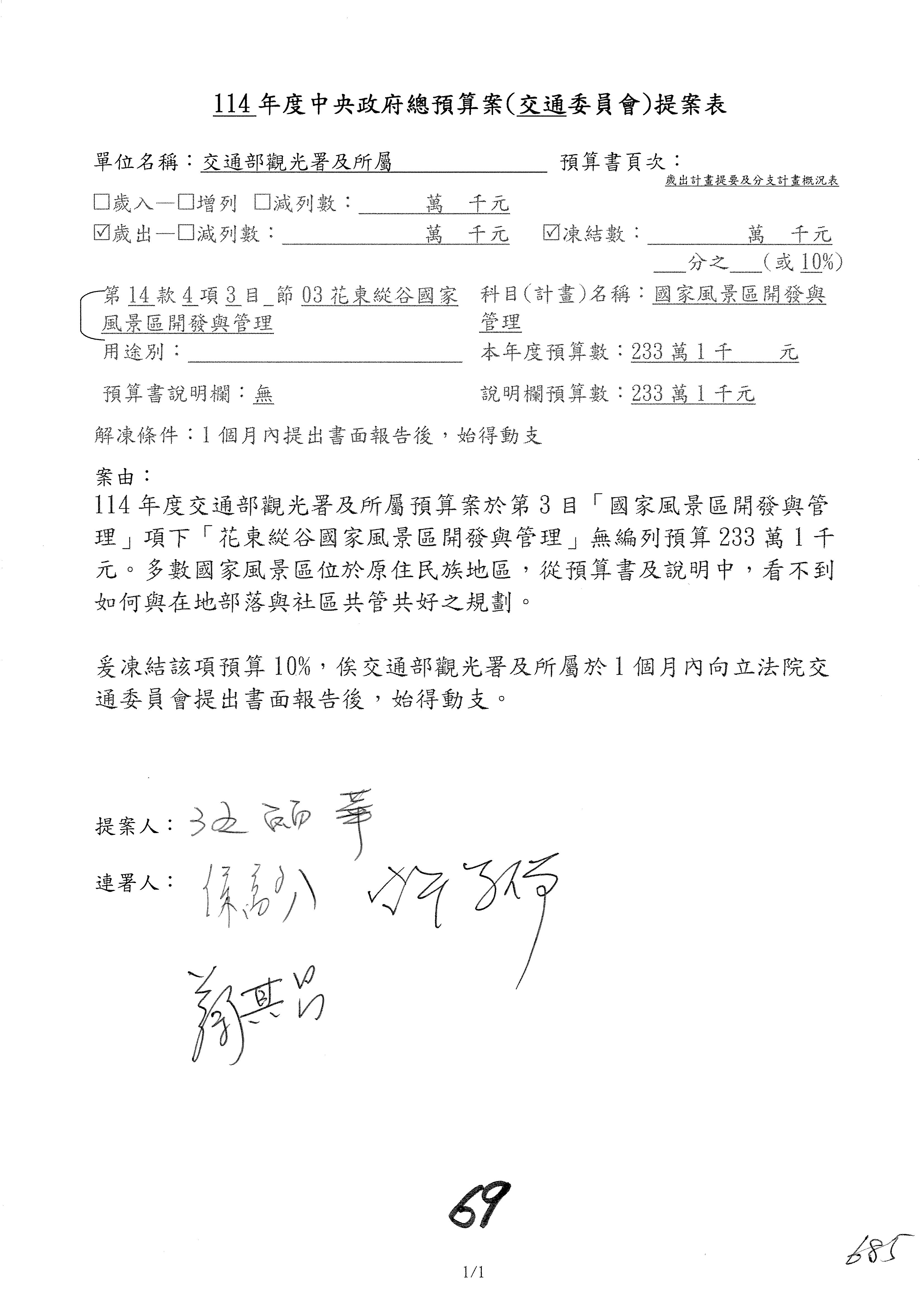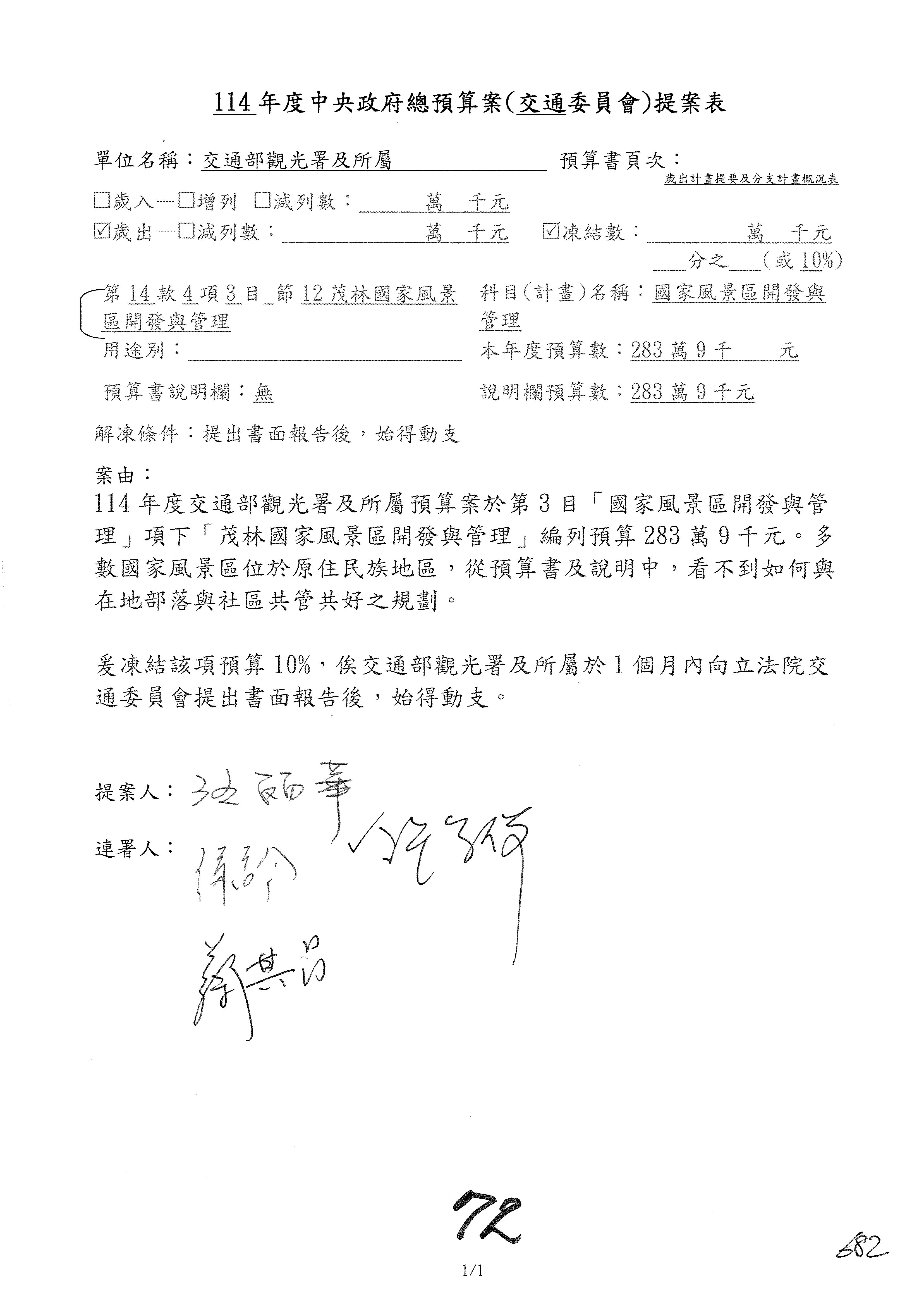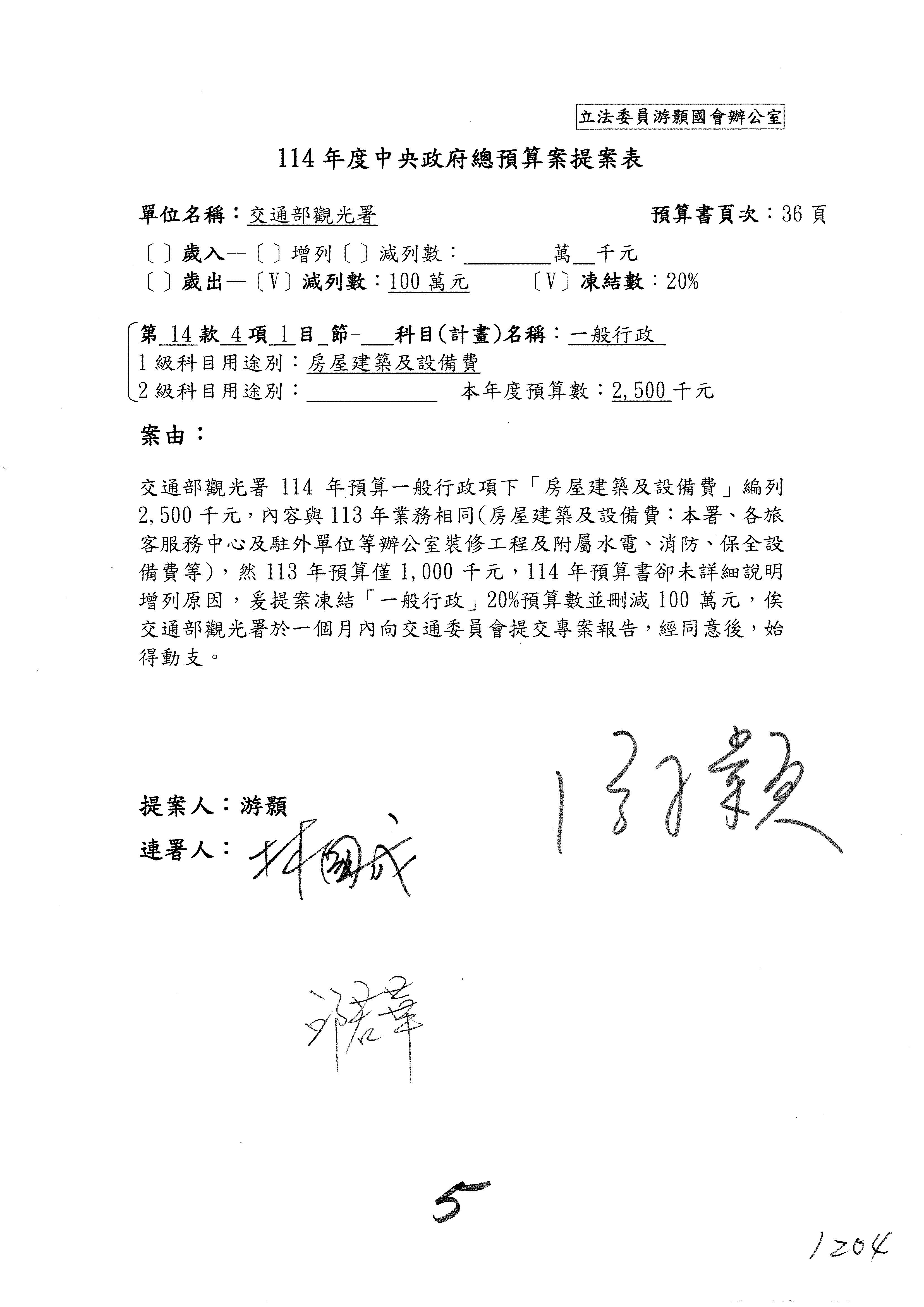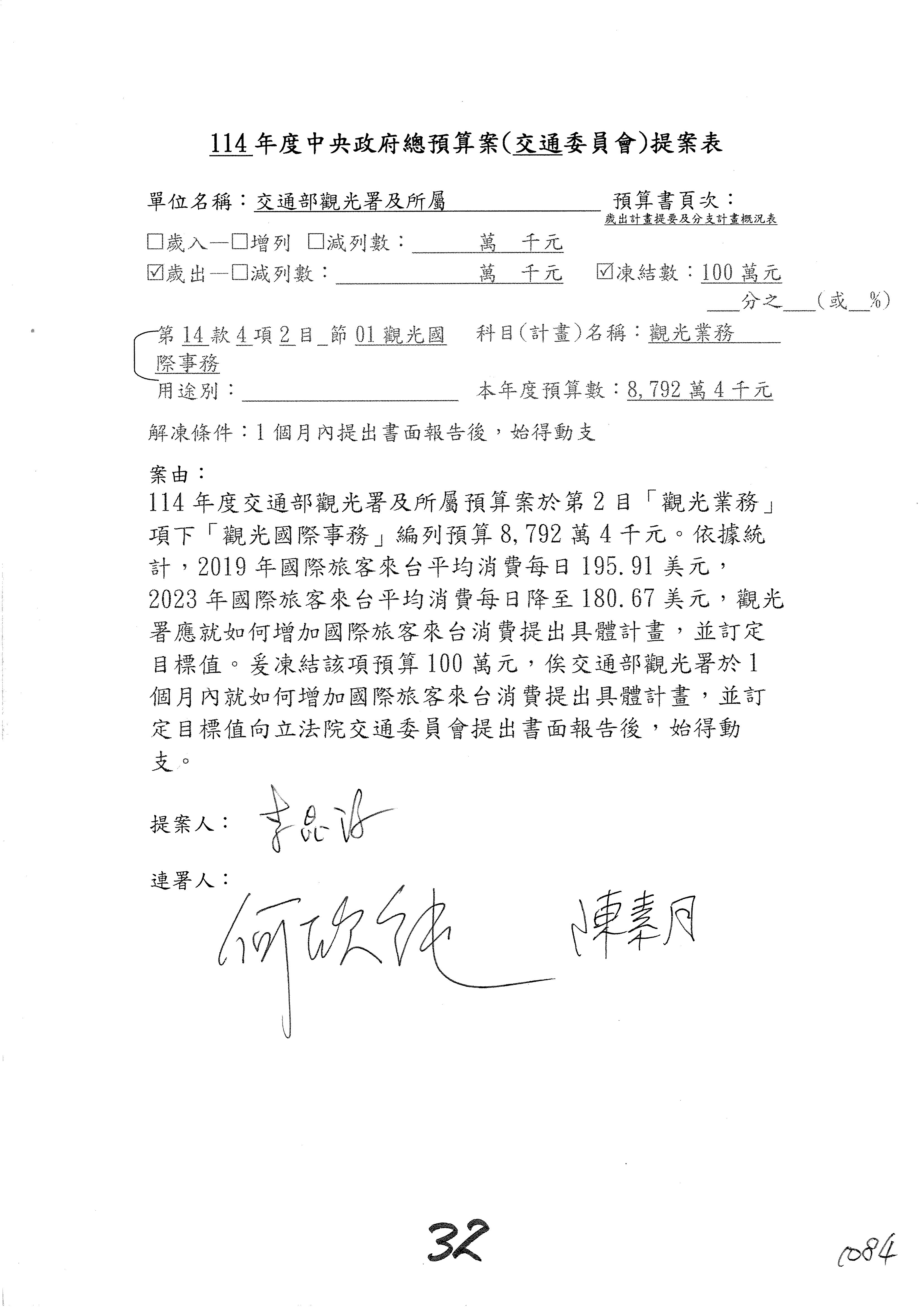 主席:凍結5%,提書面報告始得動支。