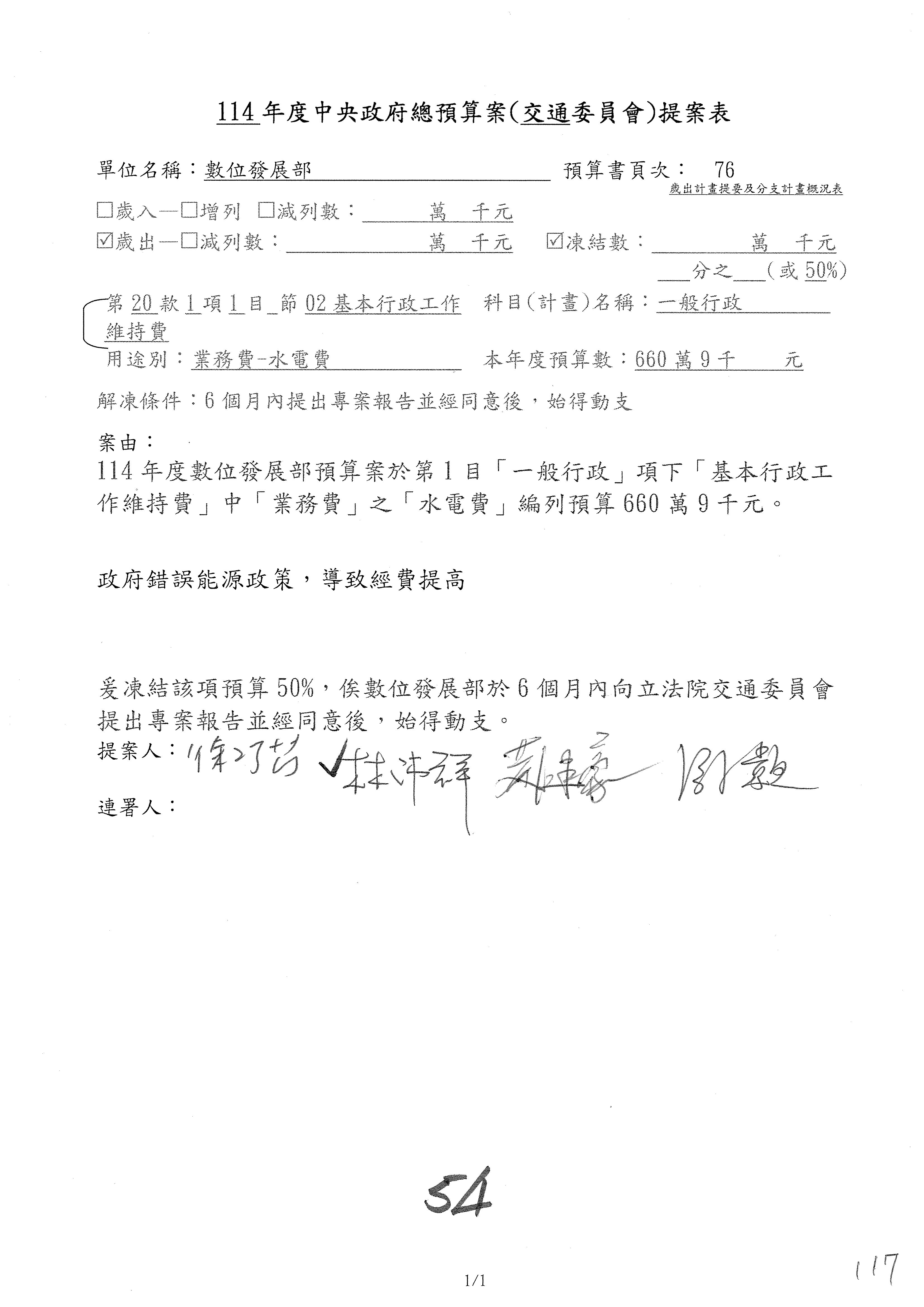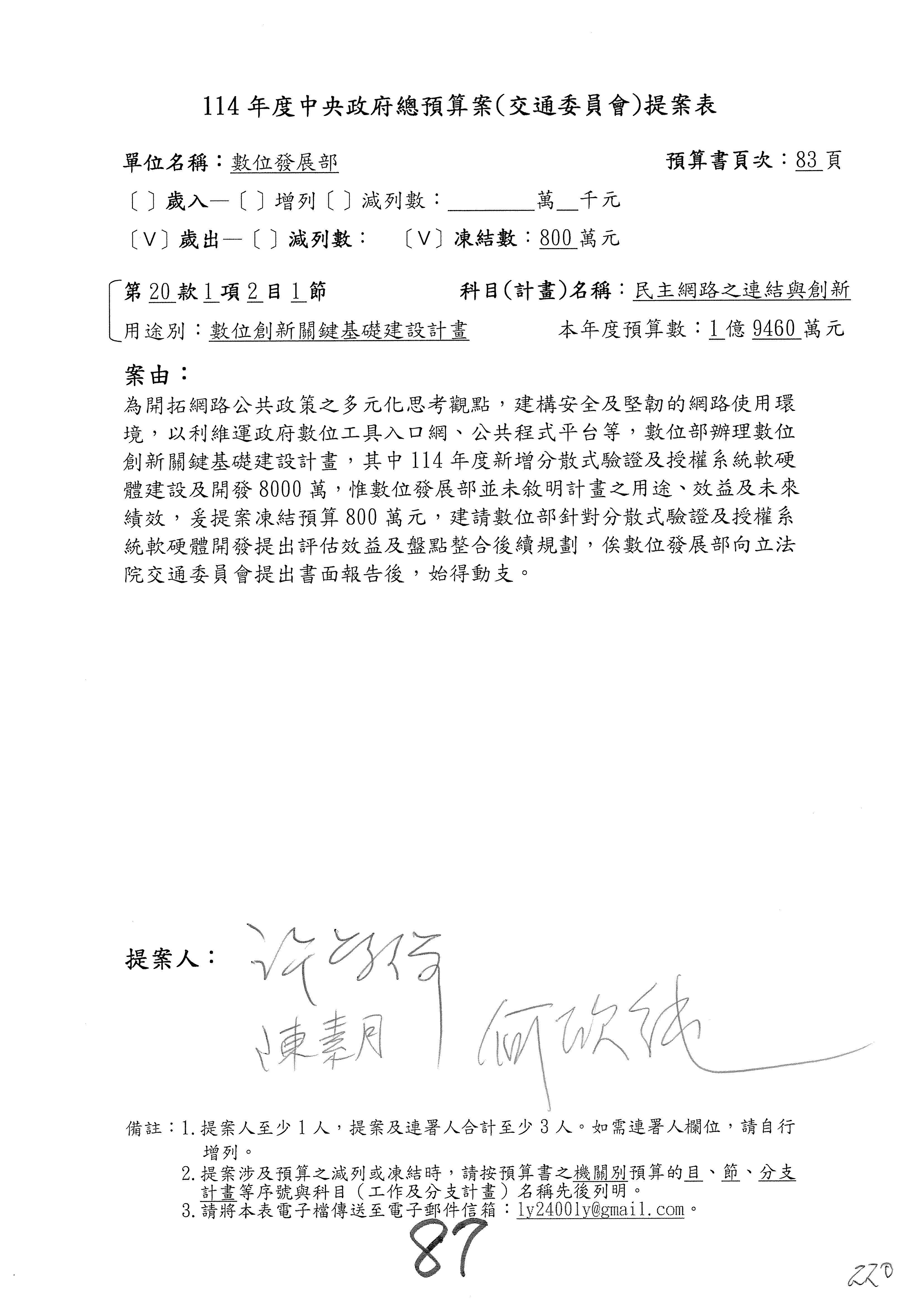 主席:好的,謝謝幾位委員的發言。黃委員的建議是數位發展部整本預算就保留送院會。我們委員還有沒有要發言的?