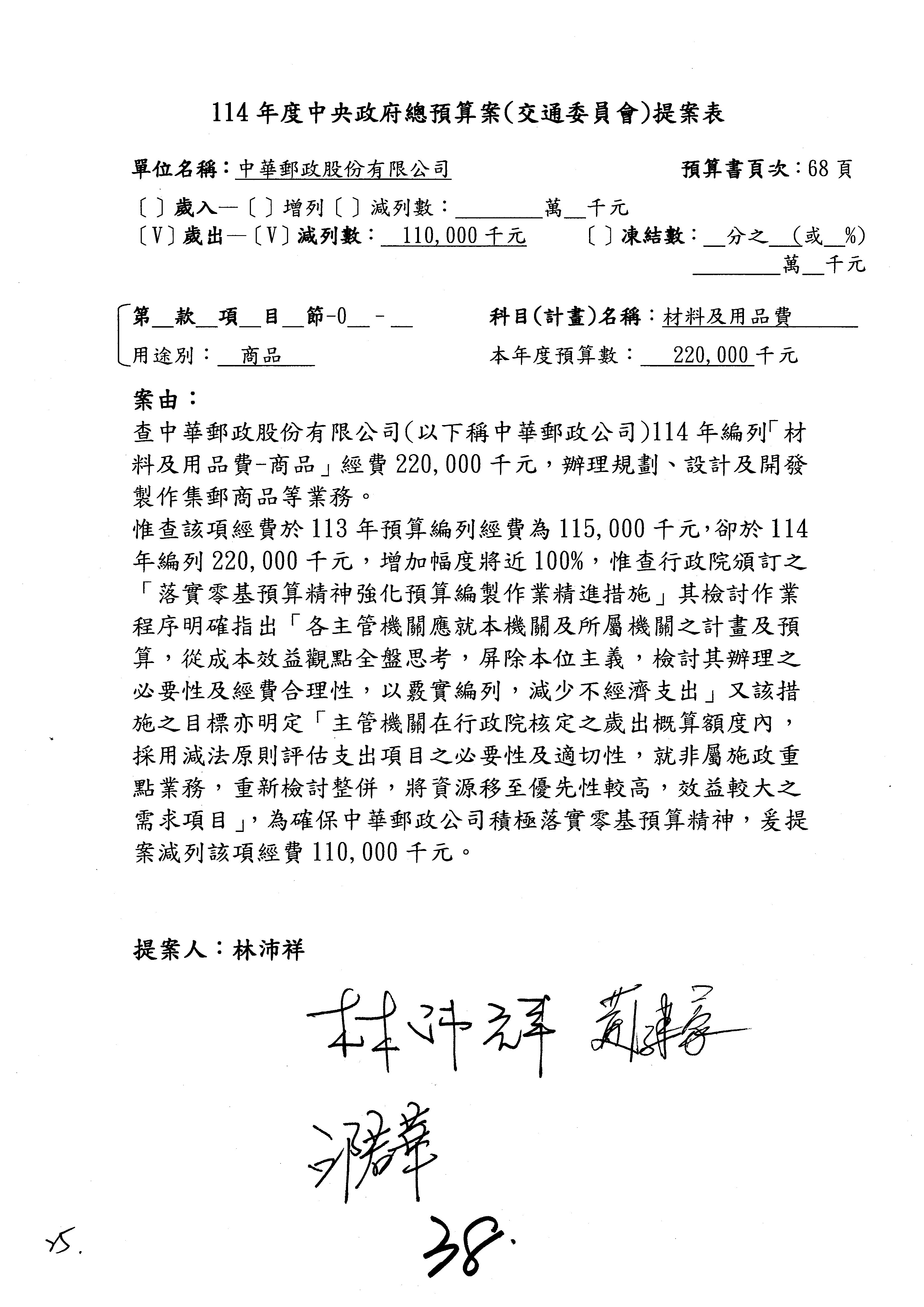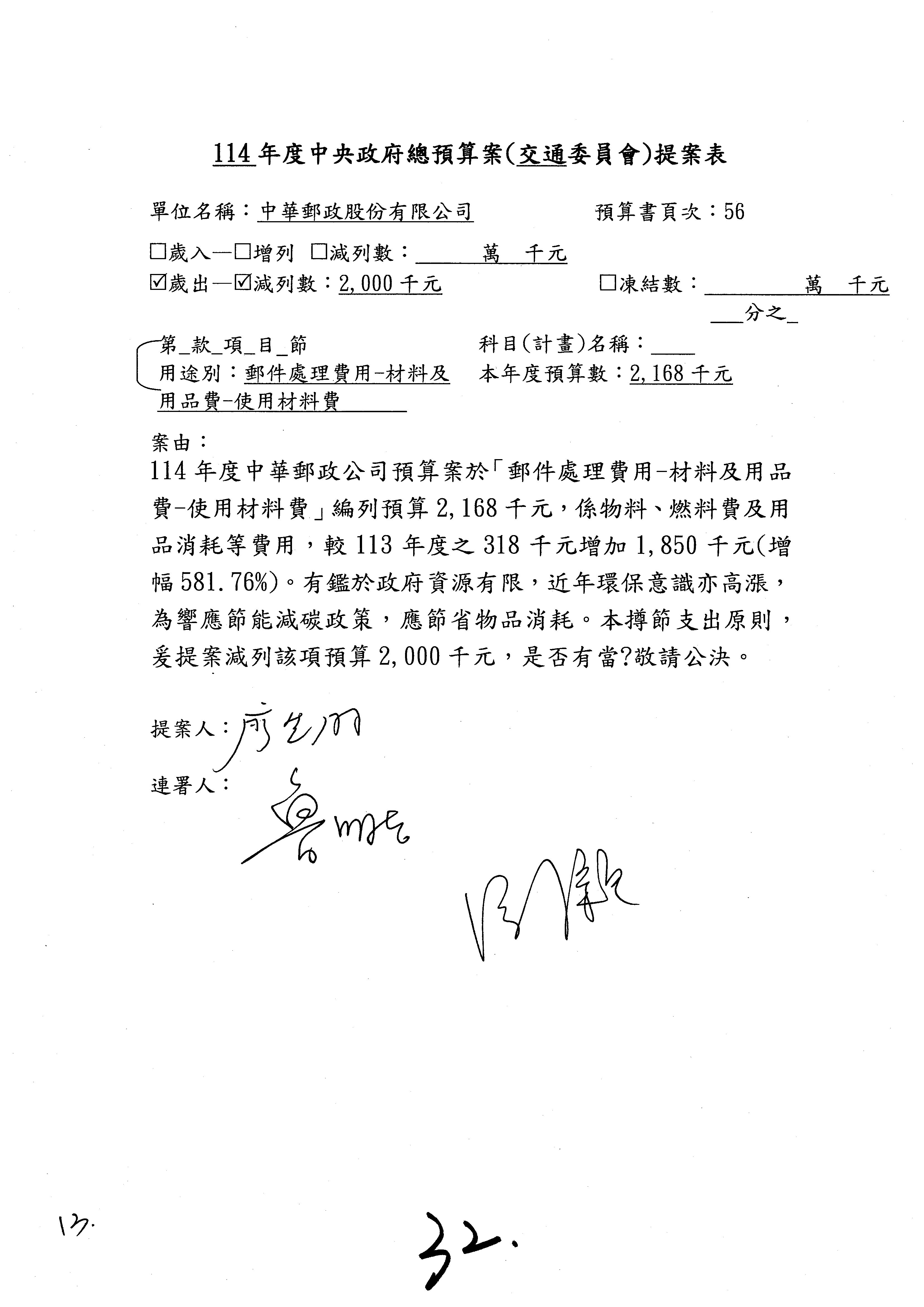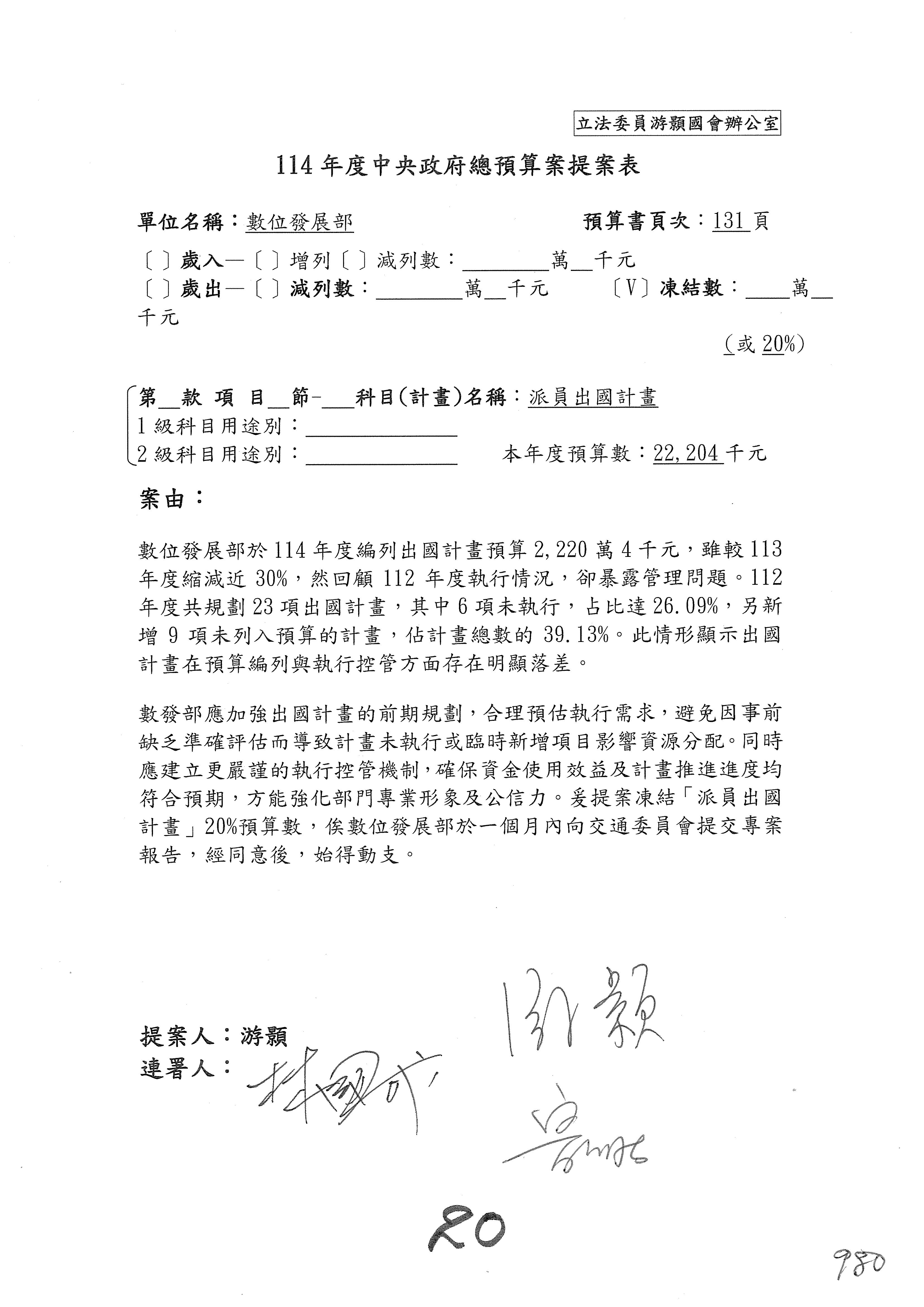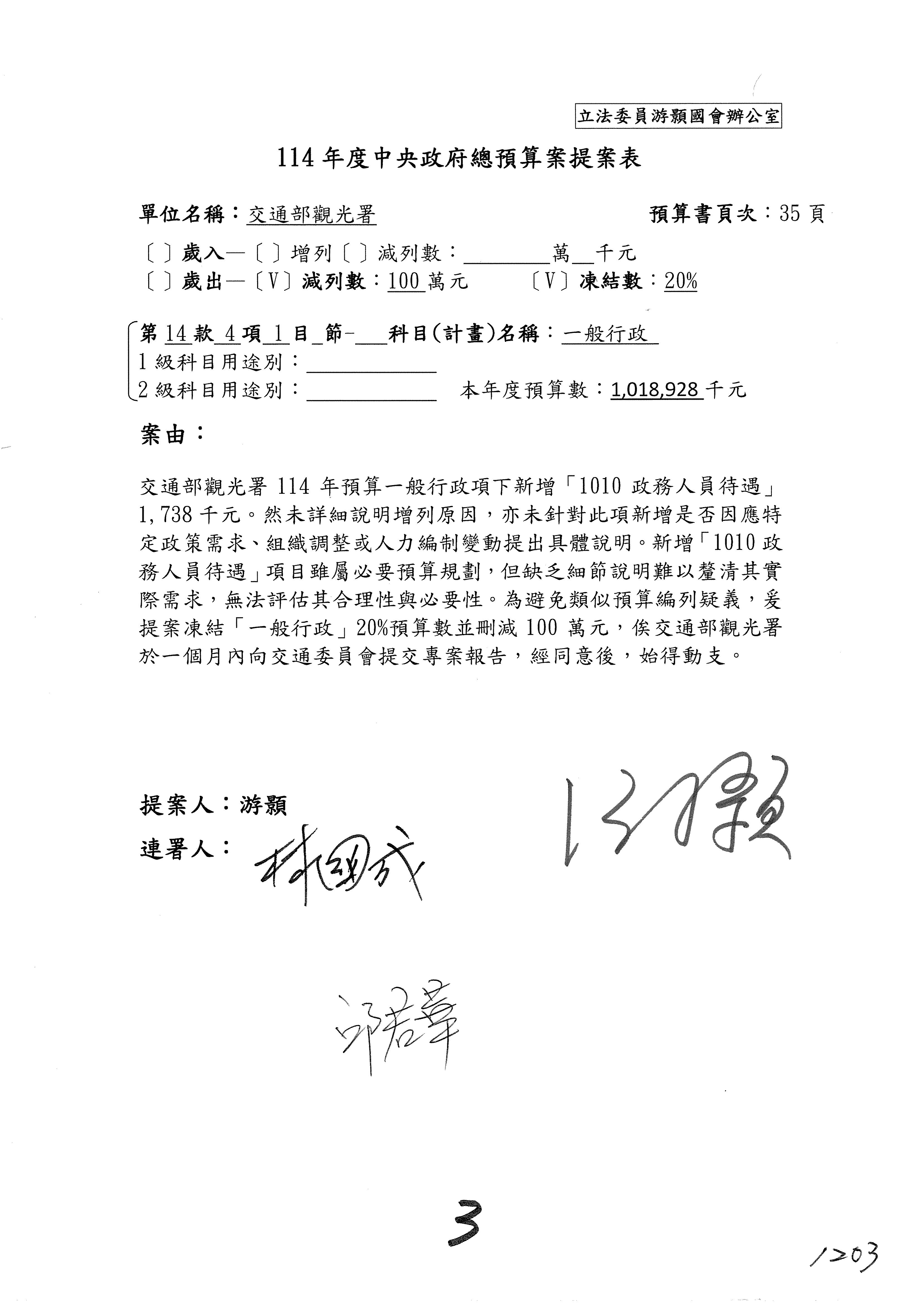 接下來第2案至第3案開始審查歲出,這是整體的通案,有2位委員提案,有游委員以及廖先翔委員、葛如鈞委員,提案委員有沒有補充說明?葛委員。