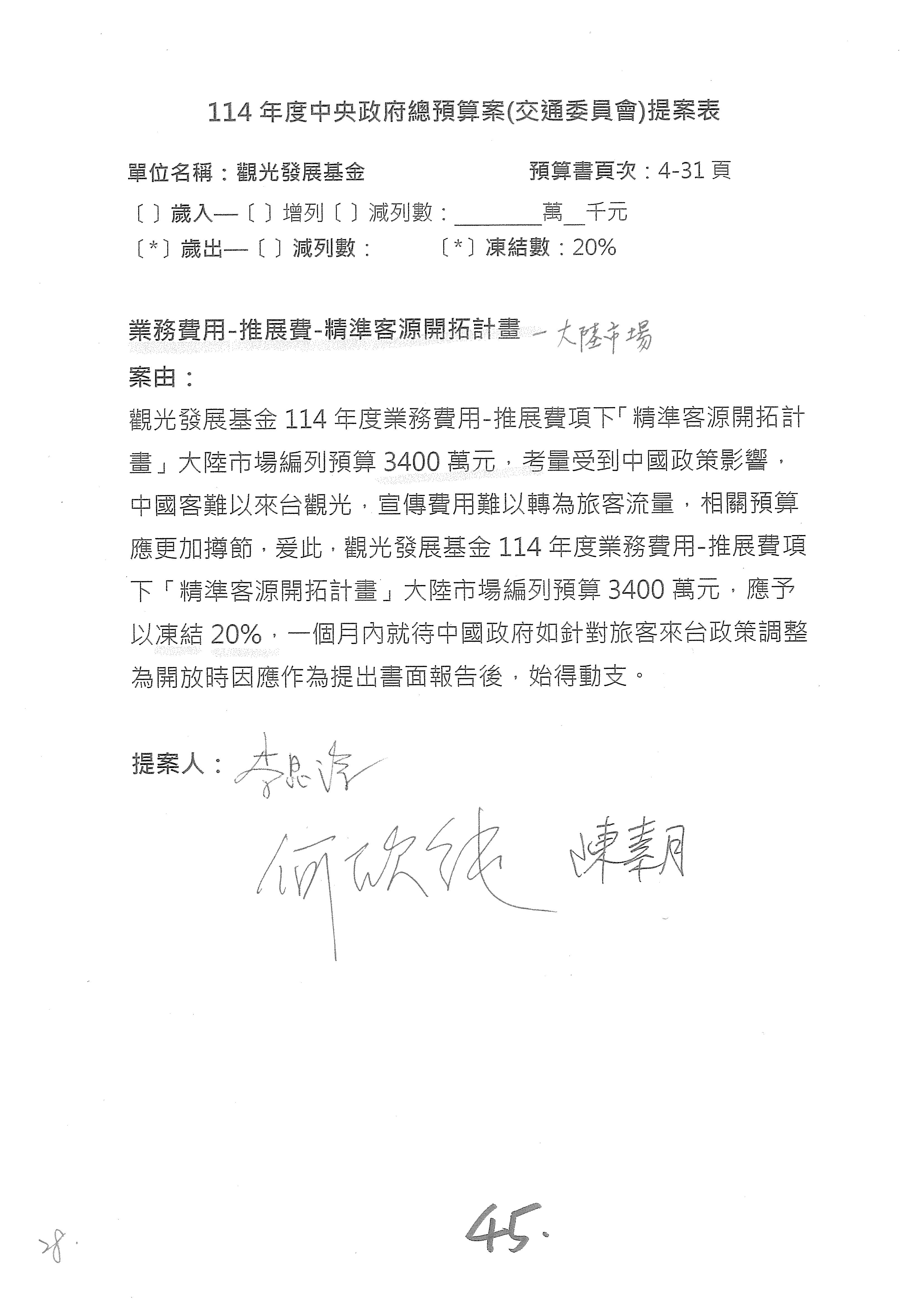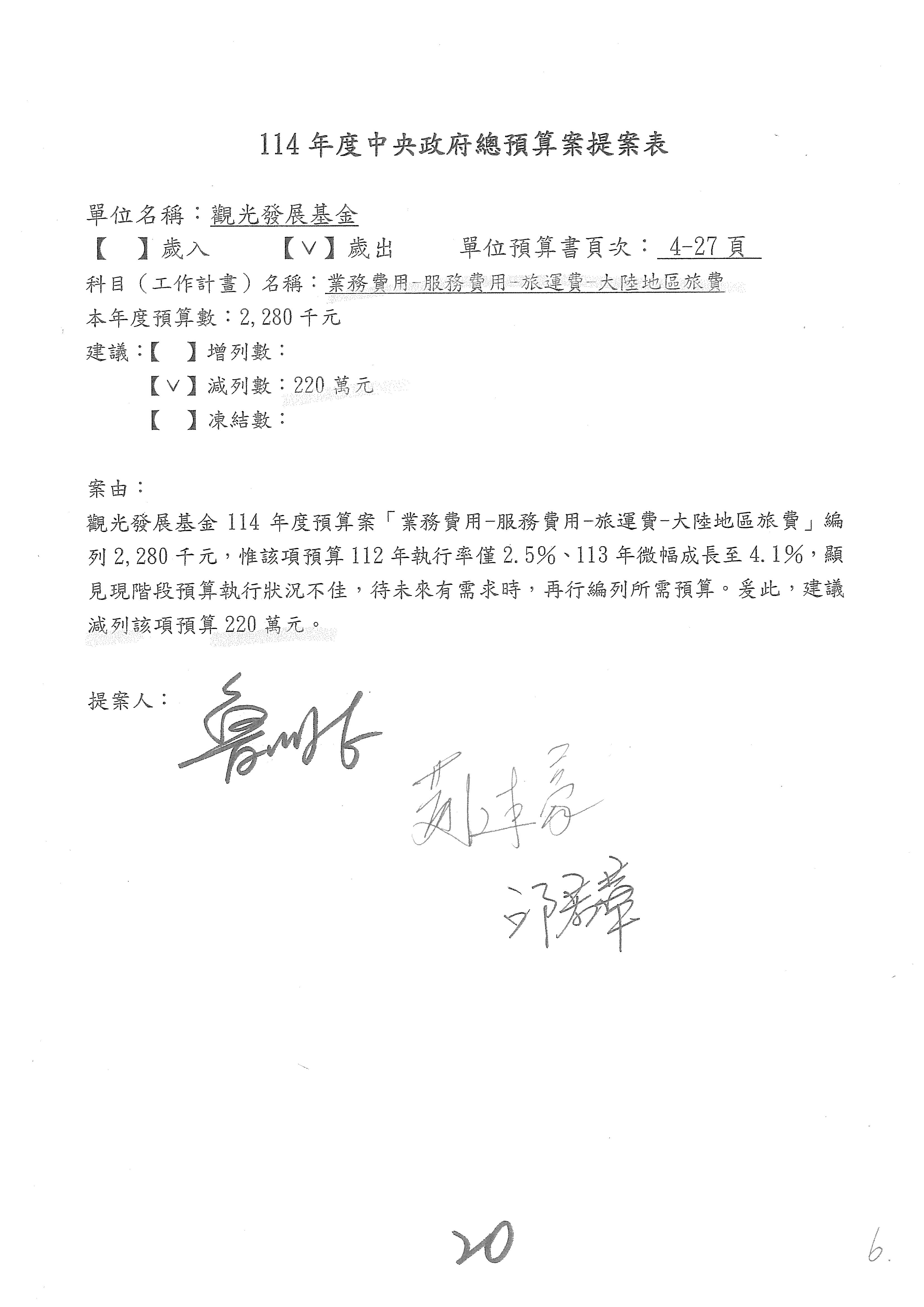 本席有提幾個案子,第20案主要是去大陸地區的旅費,你們這邊也放了嘛!再加上之前的經費,火力要這麼強啊!兩邊加起來也不少。其實剛剛並沒有怎麼刪減,有沒有需要這麼多啦?因為現在兩岸並不怎麼聯絡。