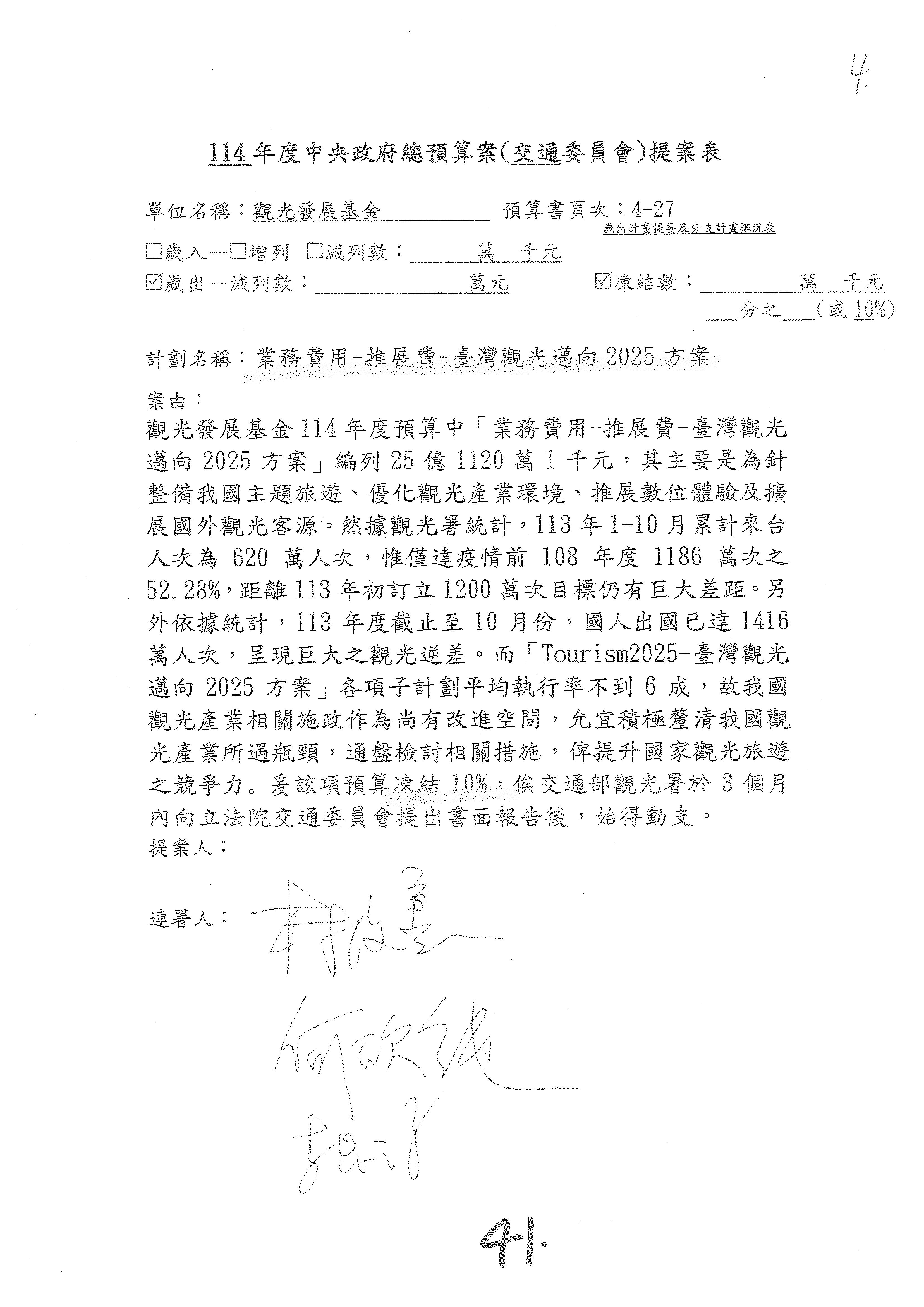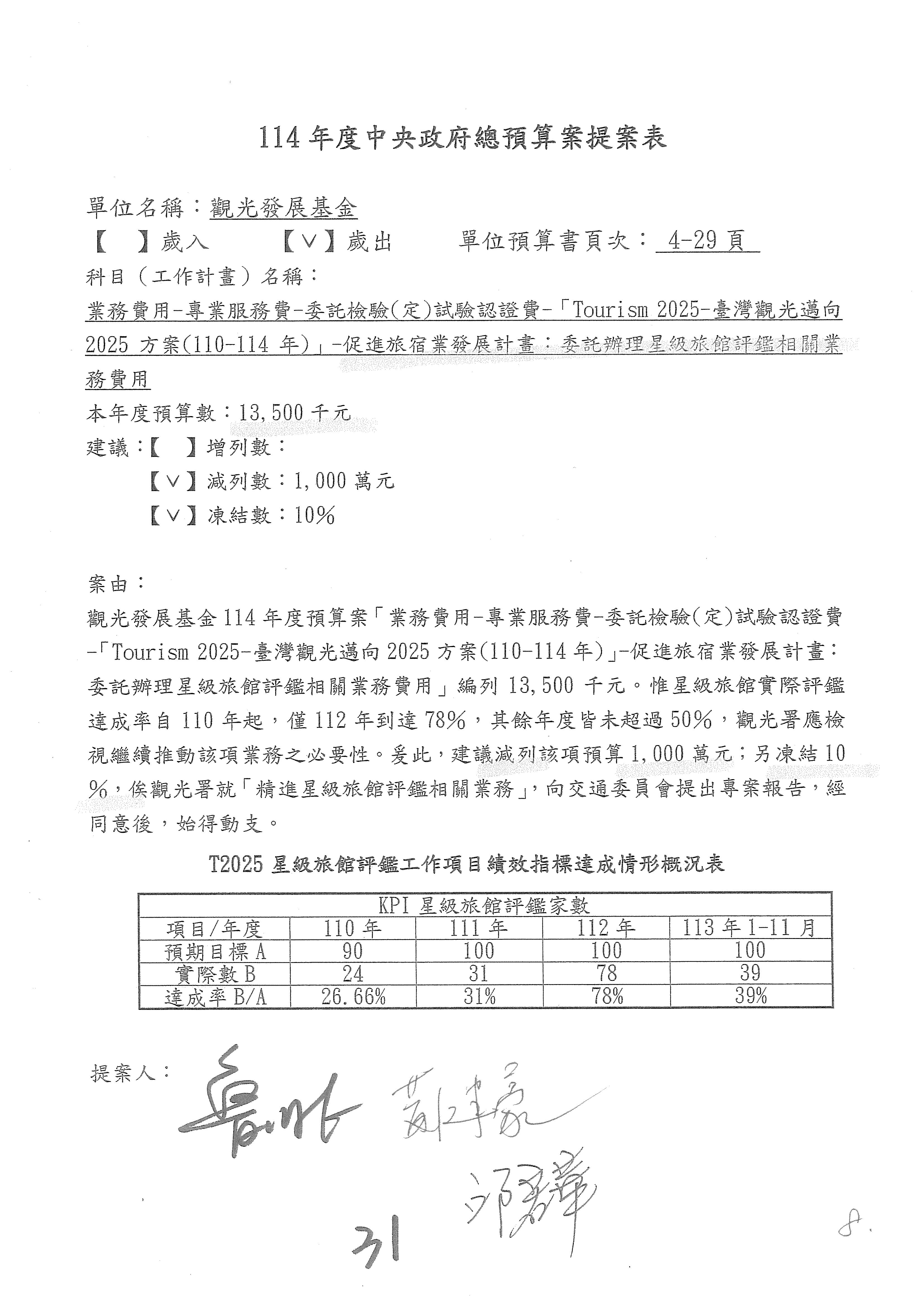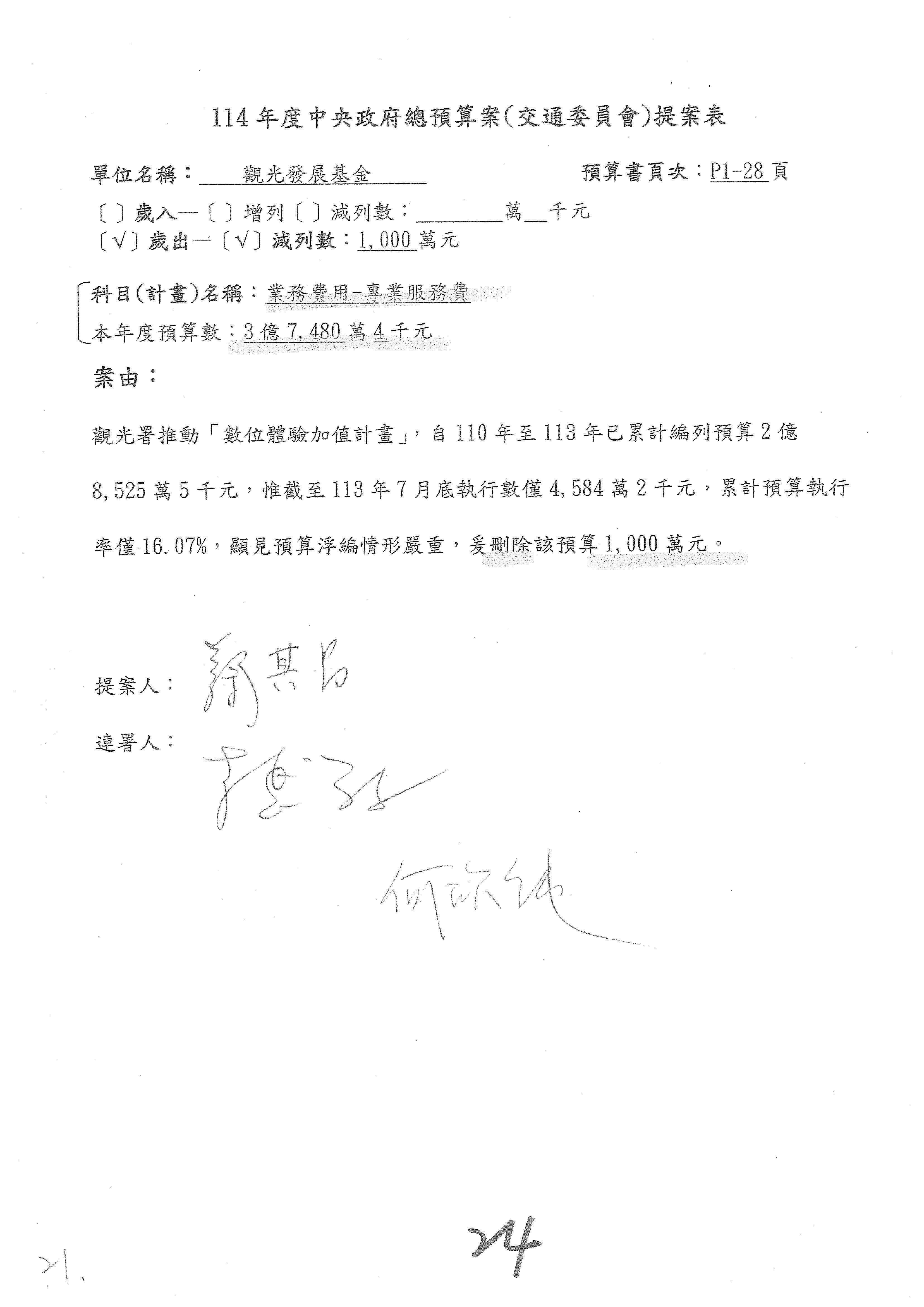 不要讓支持你們的委員失望啦!因為剛剛審的那筆預算跟這筆預算,其實你們的執行率都沒有很高啦!你們應該要說明。本席後面還有兩案,請參閱本席的書面說明。還有沒有補充意見?觀光署要不要補充說明?針對要刪除的部分,要不要說明一下?