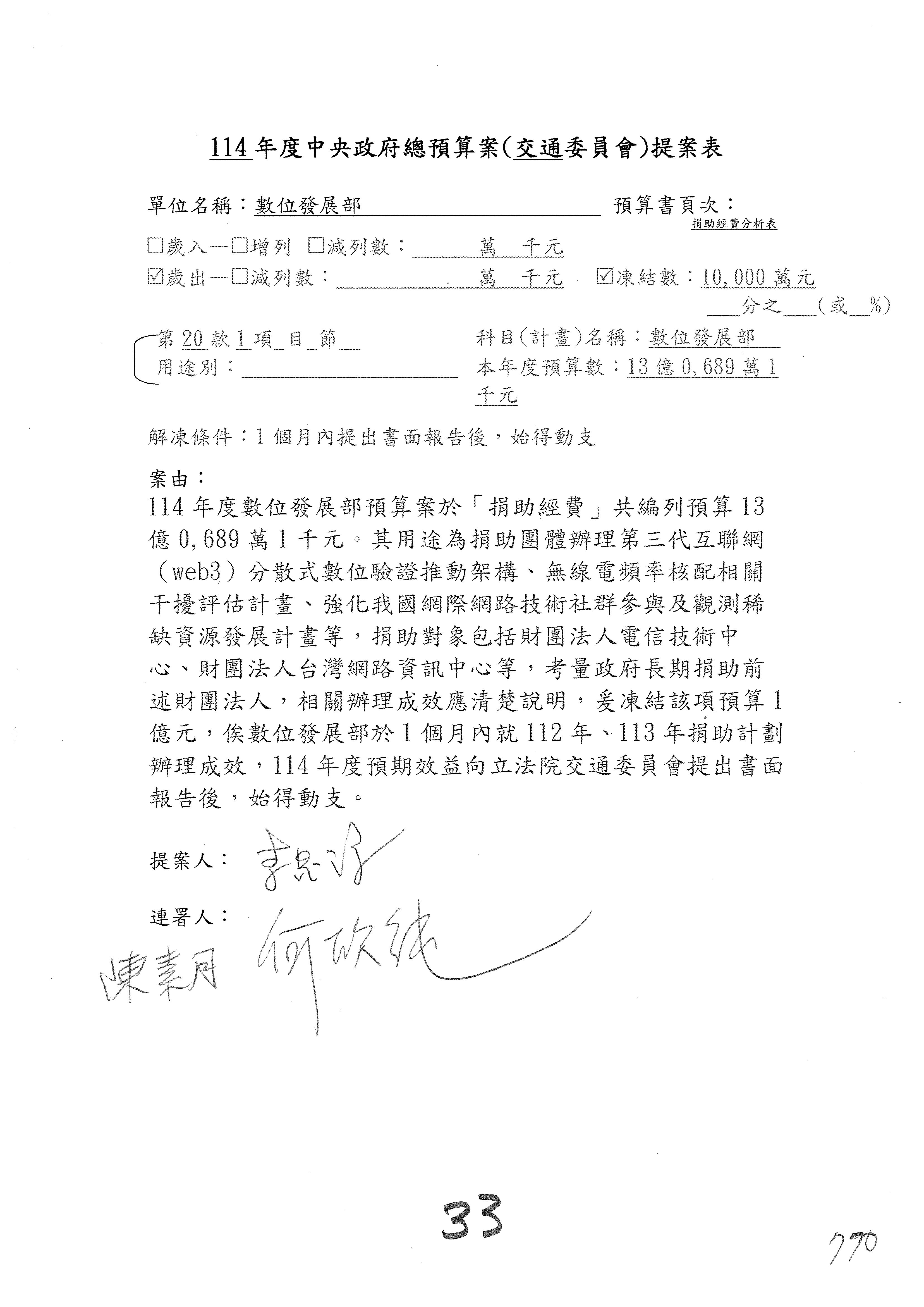 第1項 數位發展部33億3,254萬9千元。