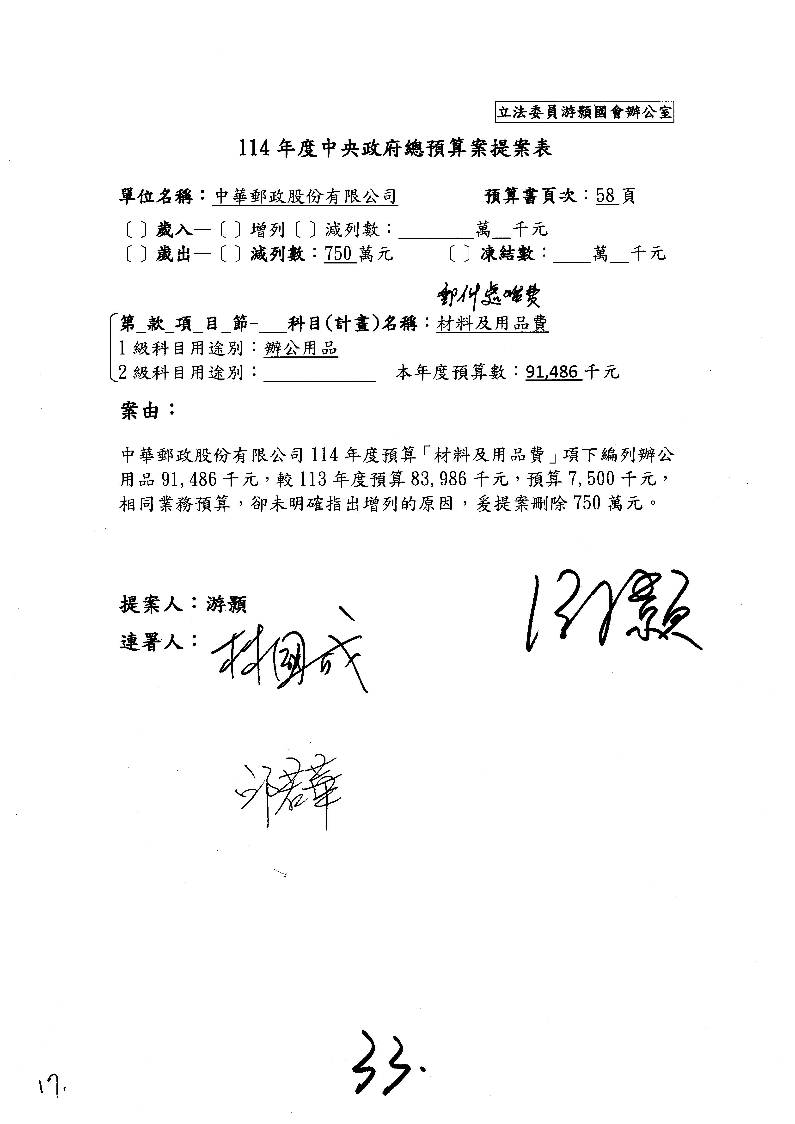 七、補辦預算:增加「臺北郵局公辦都市更新案」937萬元,第21頁補辦預算事項(詳見第132頁補辦預算明細表)。