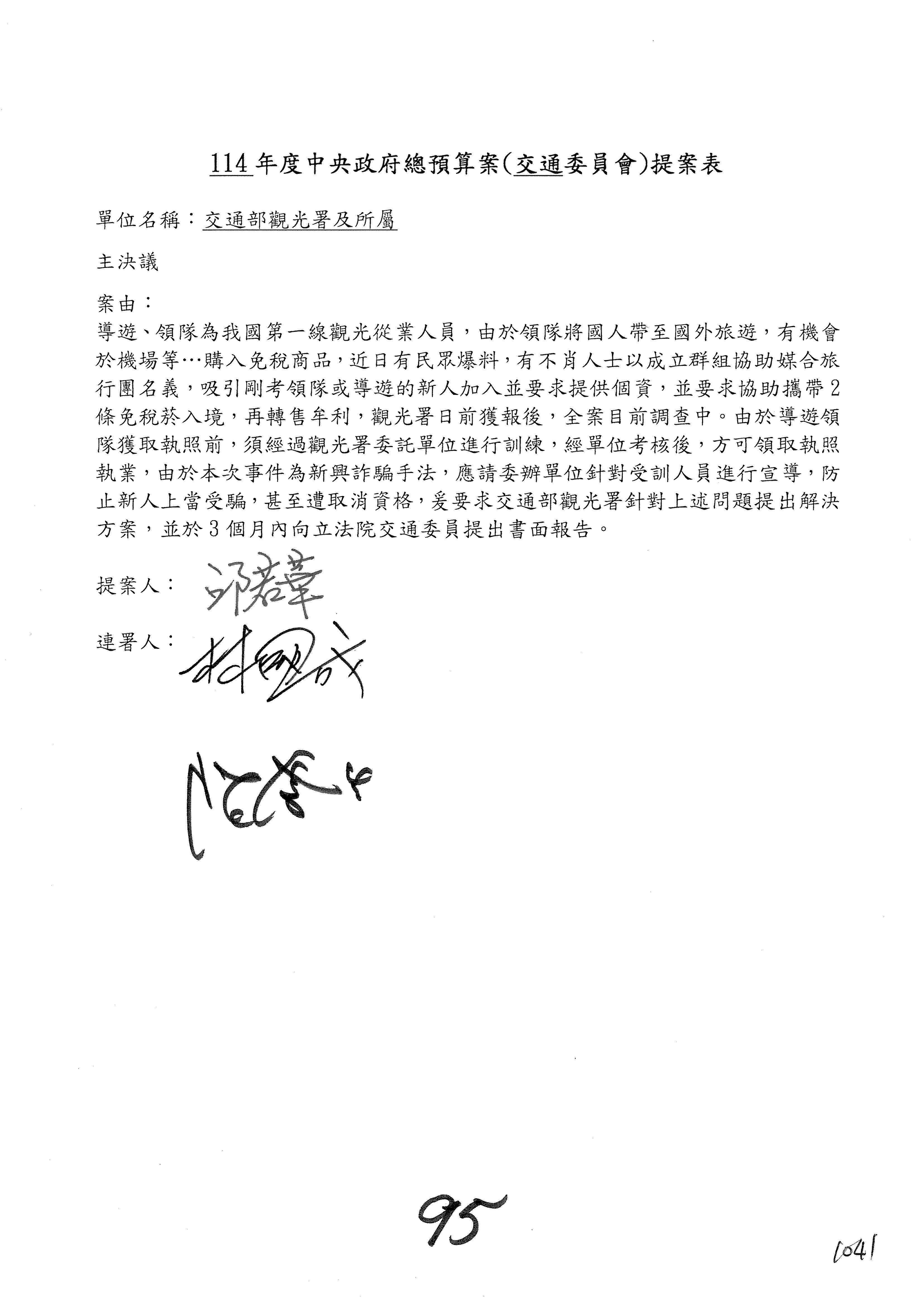主席:好,委員有同意,修正文字通過。第95案。