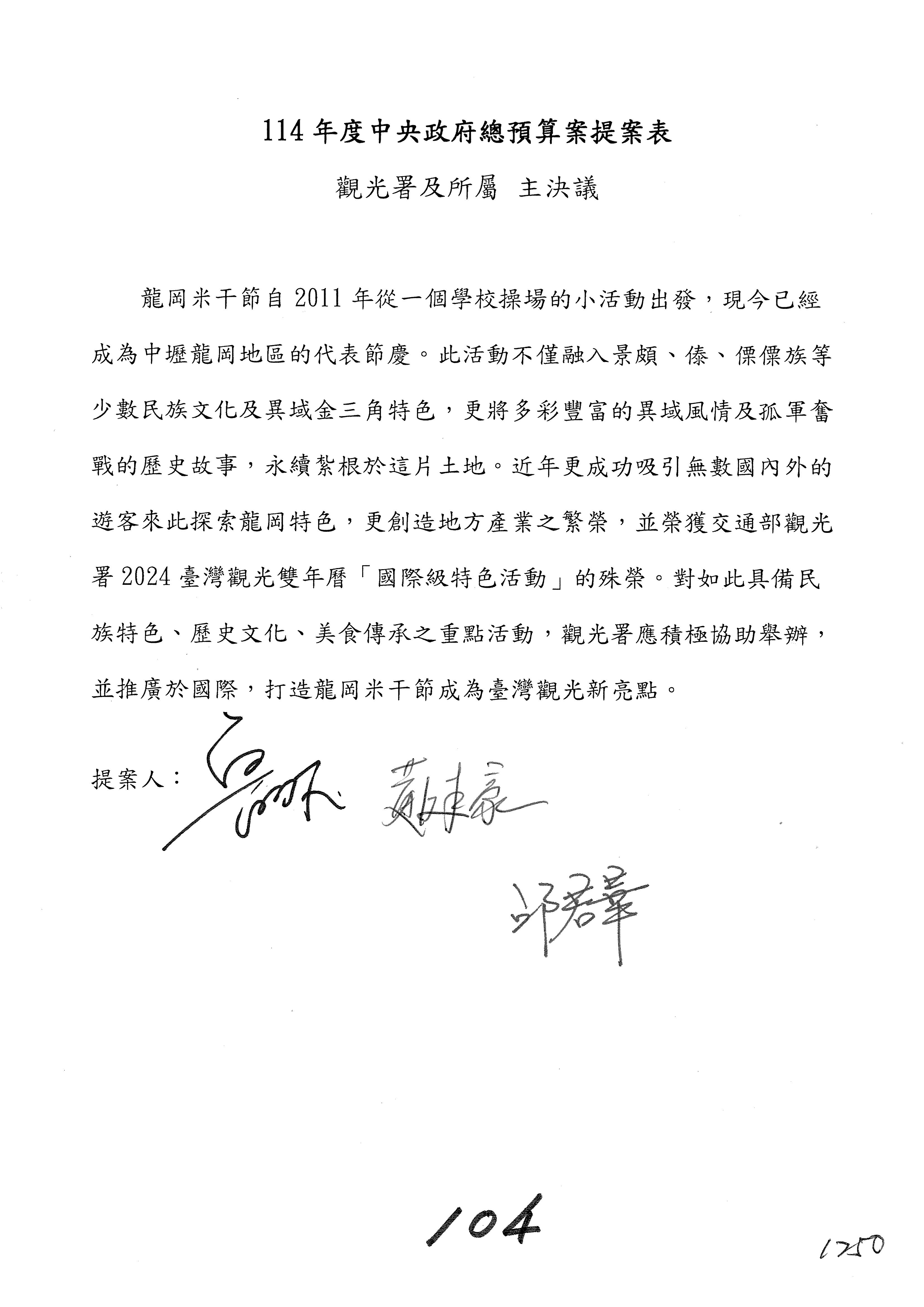 主席:第103案照案通過。第104案。