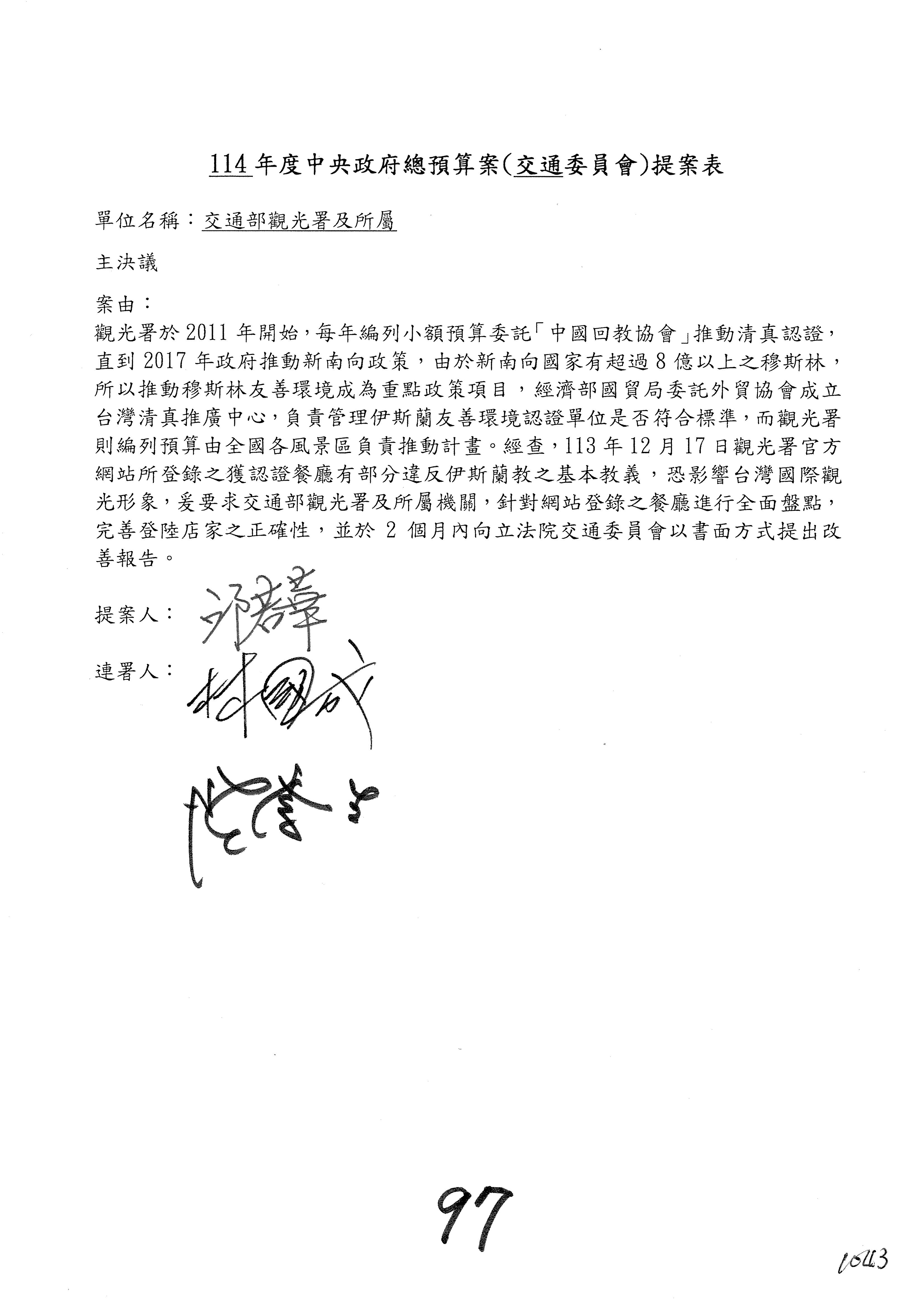 主席:好,修正文字後通過。第97案。