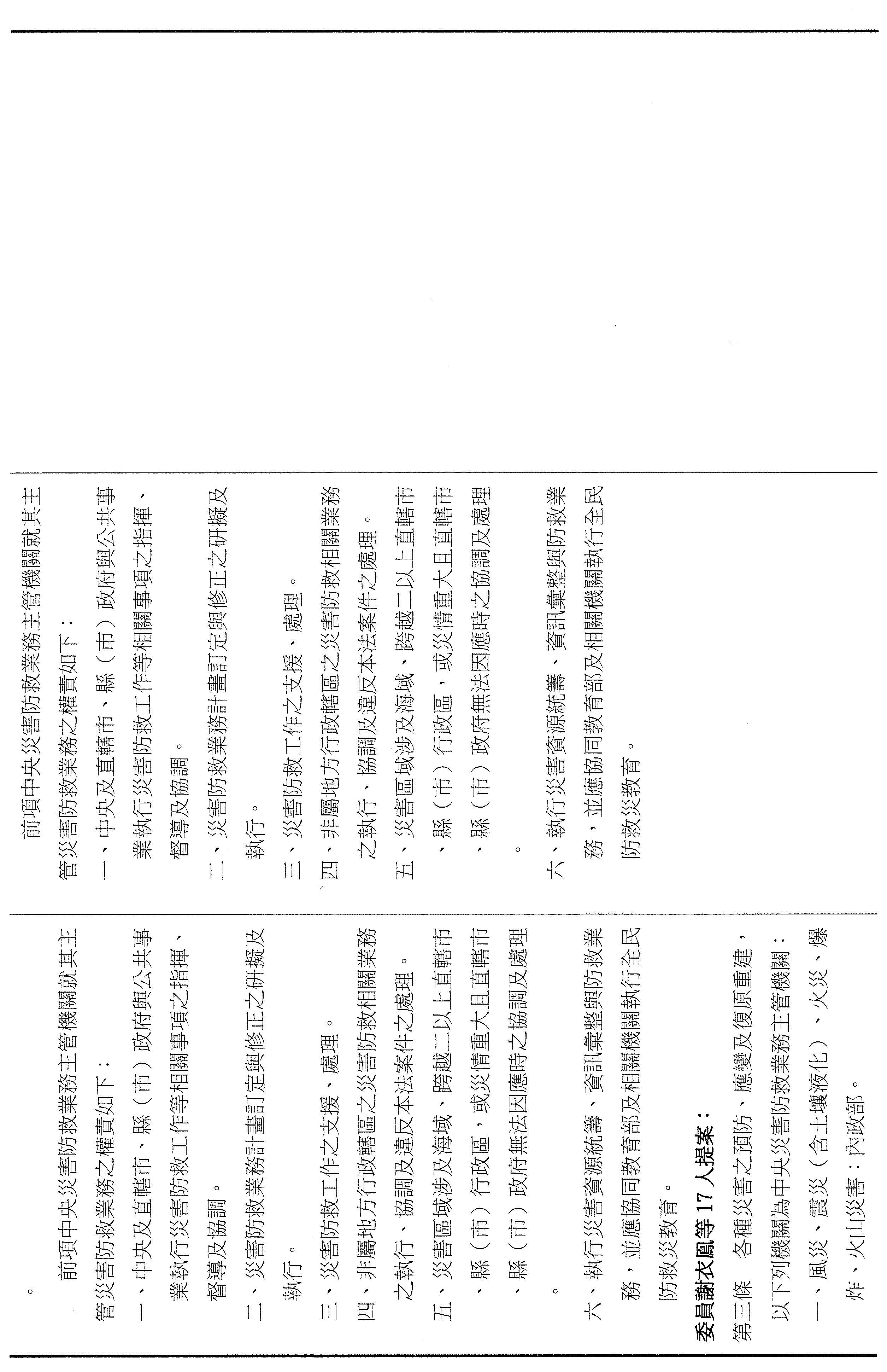 二、審查委員謝衣鳯等17人擬具「災害防救法第三條條文修正草案」案。