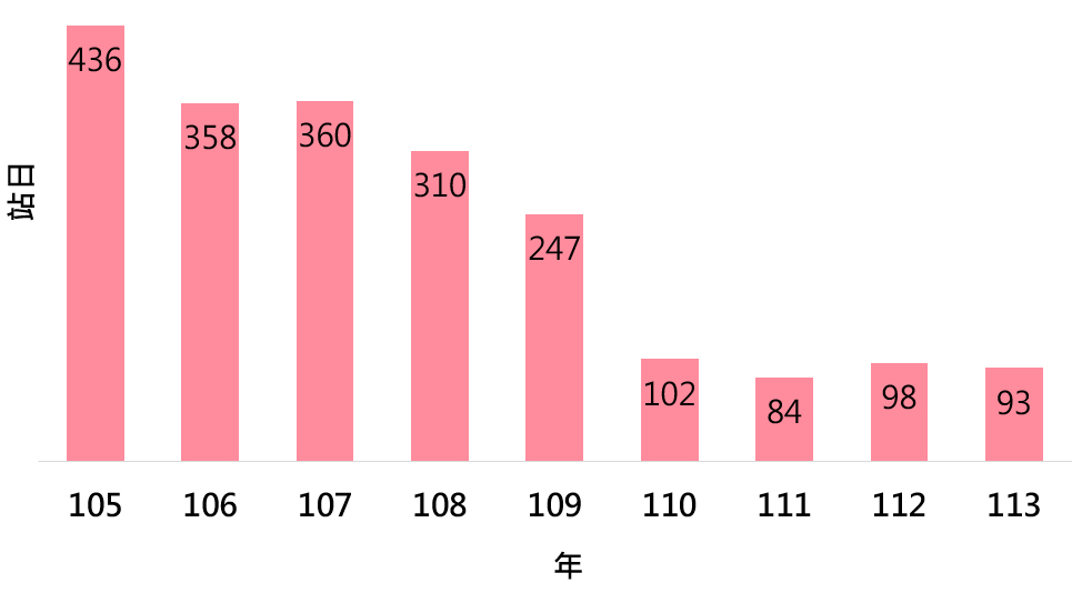 在中央與地方政府協力推動空氣污染防制方案下,全國細懸浮微粒(PM2.5)年平均濃度由105年的20毫克/立方公尺(μg/m3)下降至113年的12.8μg/m3,改善率達36%;113年臭氧(O3)紅色警示站日數共計93站日,相較於105年的436站日,整體改善率達78%,顯示空氣品質確實改善中。