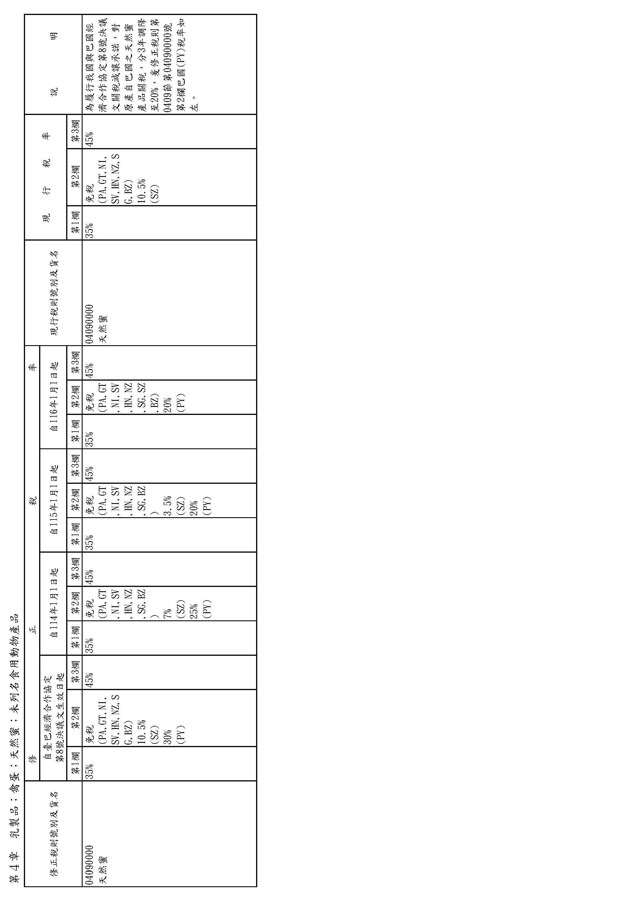 修正 第04090000號之第2欄稅率,修正巴拉圭(PY)適用之稅率。