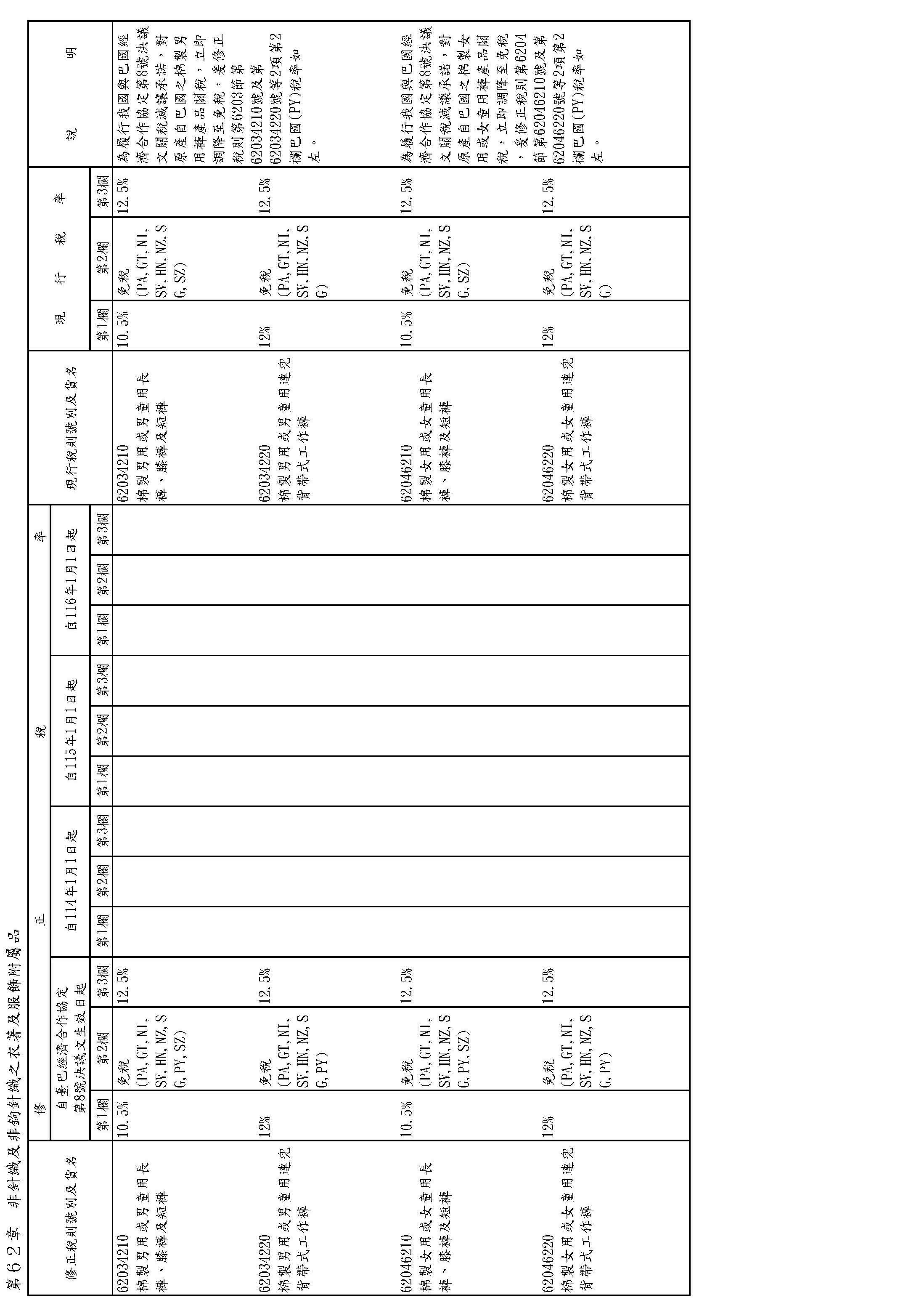 修正 第62034210號、第62034220號、第62046210號及第62046220號等4項之第2欄稅率,修正巴拉圭(PY)適用之稅率。