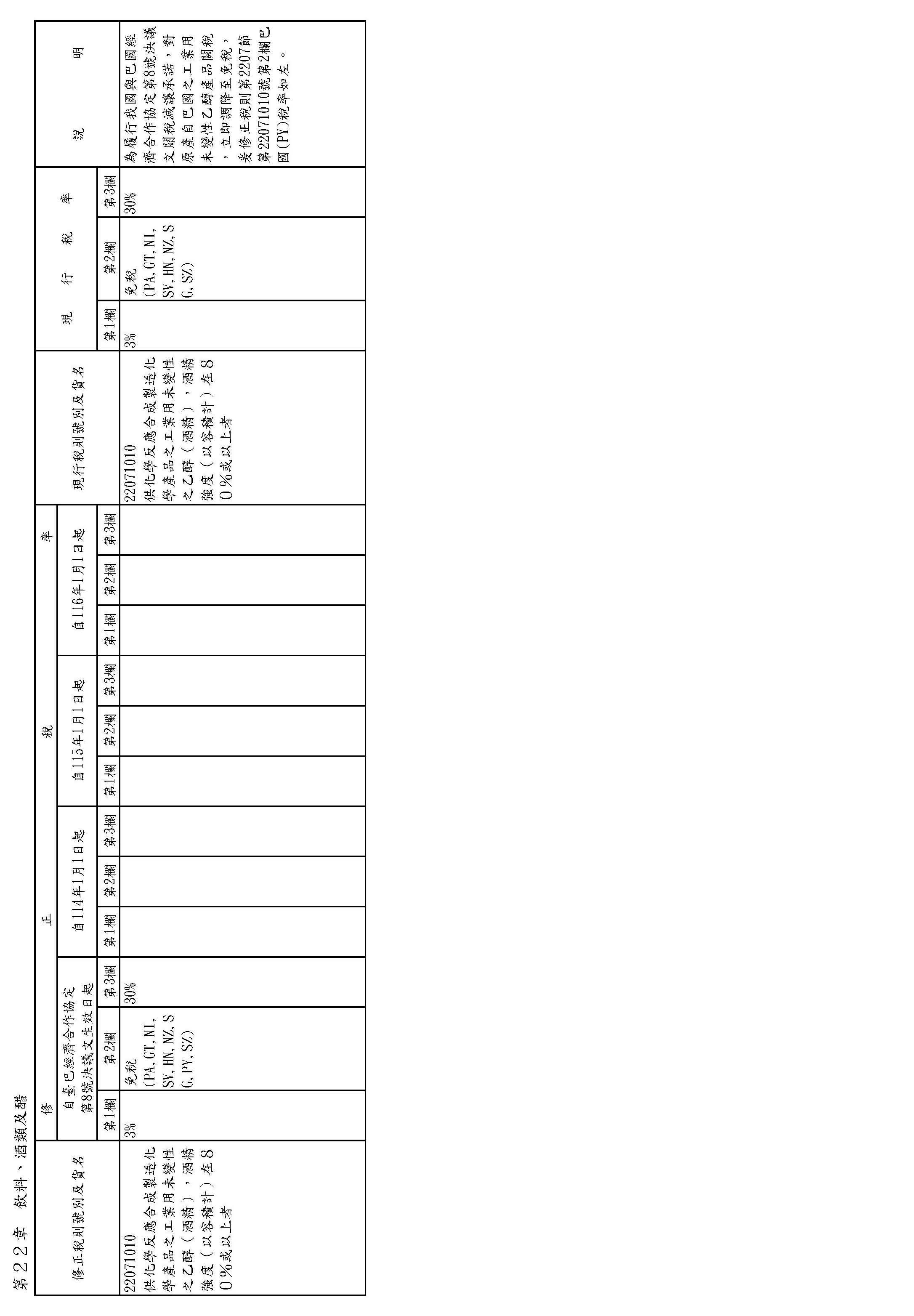 修正 第22071010號之第2欄稅率,修正巴拉圭(PY)適用之稅率。