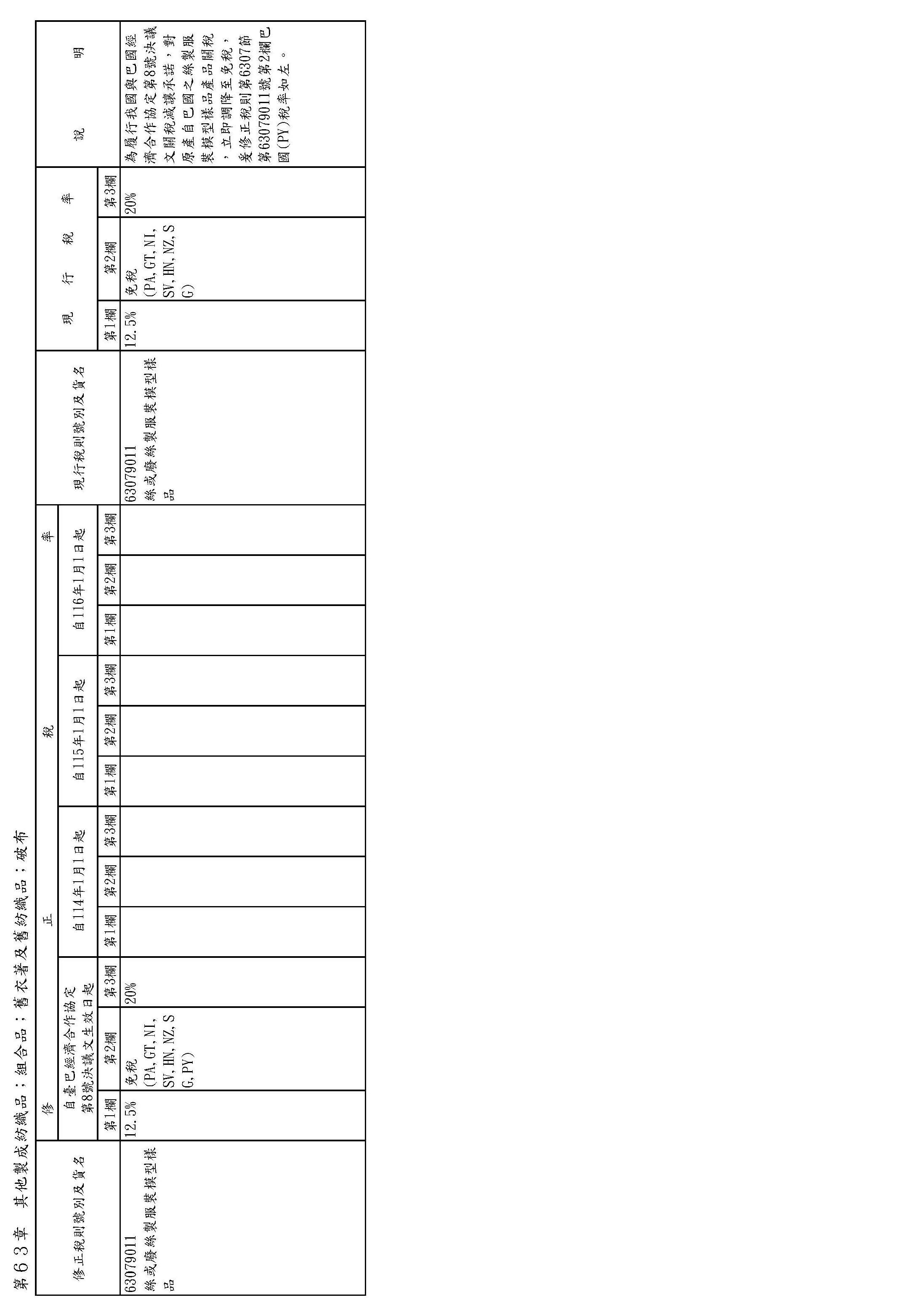 修正 第63079011號之第2欄稅率,修正巴拉圭(PY)適用之稅率。