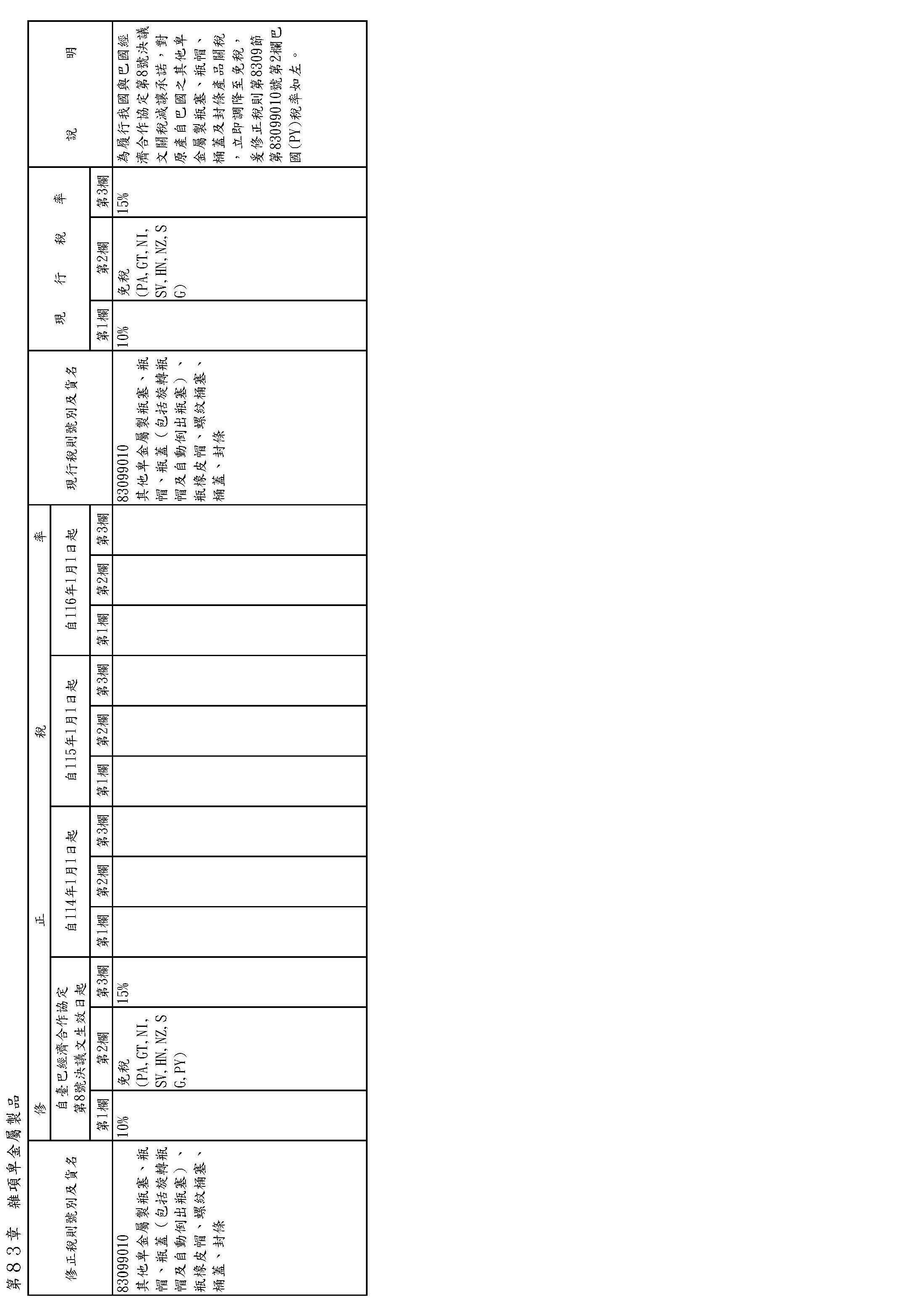 修正 第83099010號之第2欄稅率,修正巴拉圭(PY)適用之稅率。