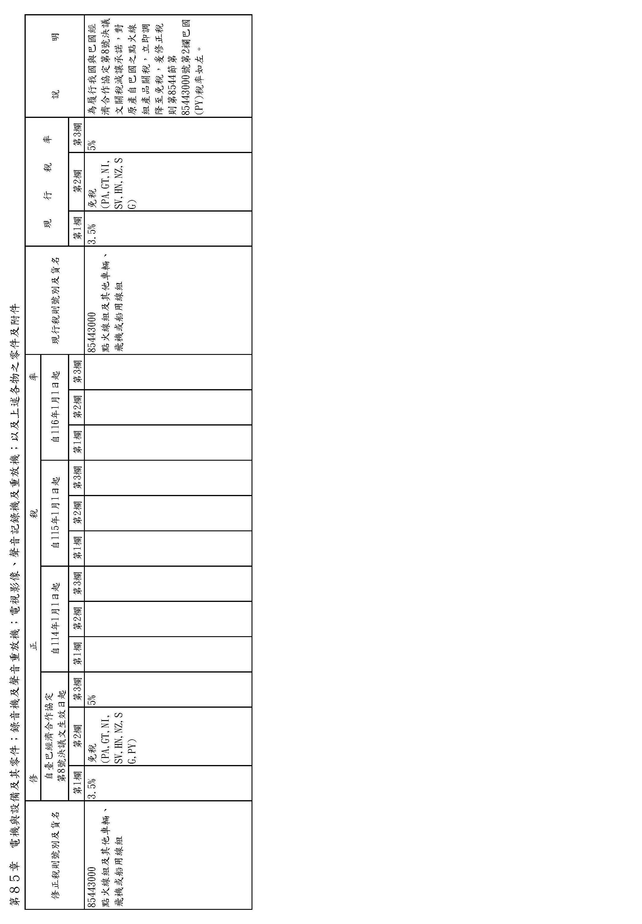 修正 第85443000號之第2欄稅率,修正巴拉圭(PY)適用之稅率。