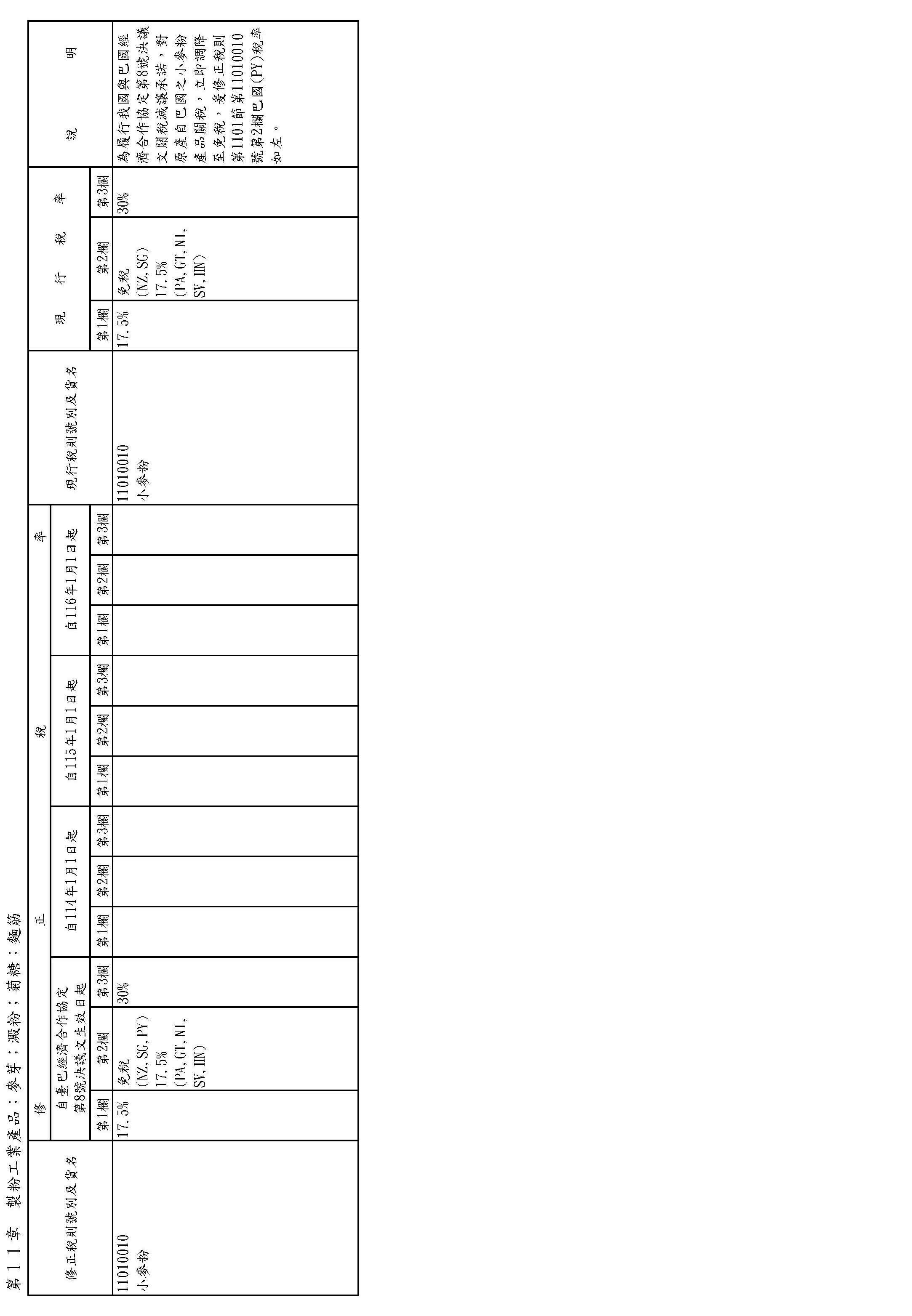 修正 第11010010號之第2欄稅率,修正巴拉圭(PY)適用之稅率。