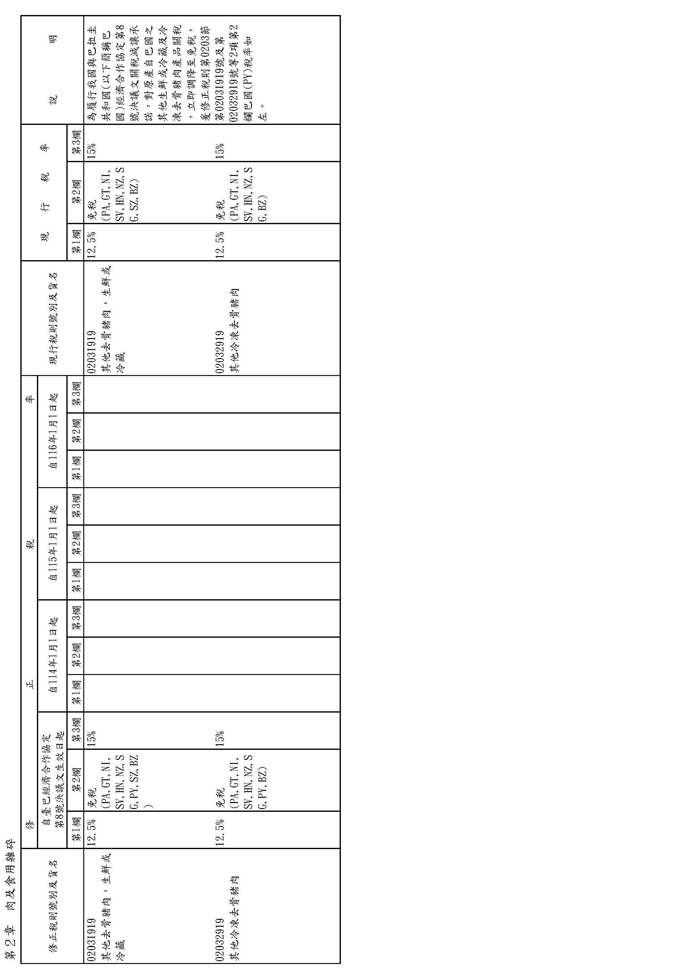 修正 第02031919號及第02032919號等2項之第2欄稅率,修正巴拉圭(PY)適用之稅率。