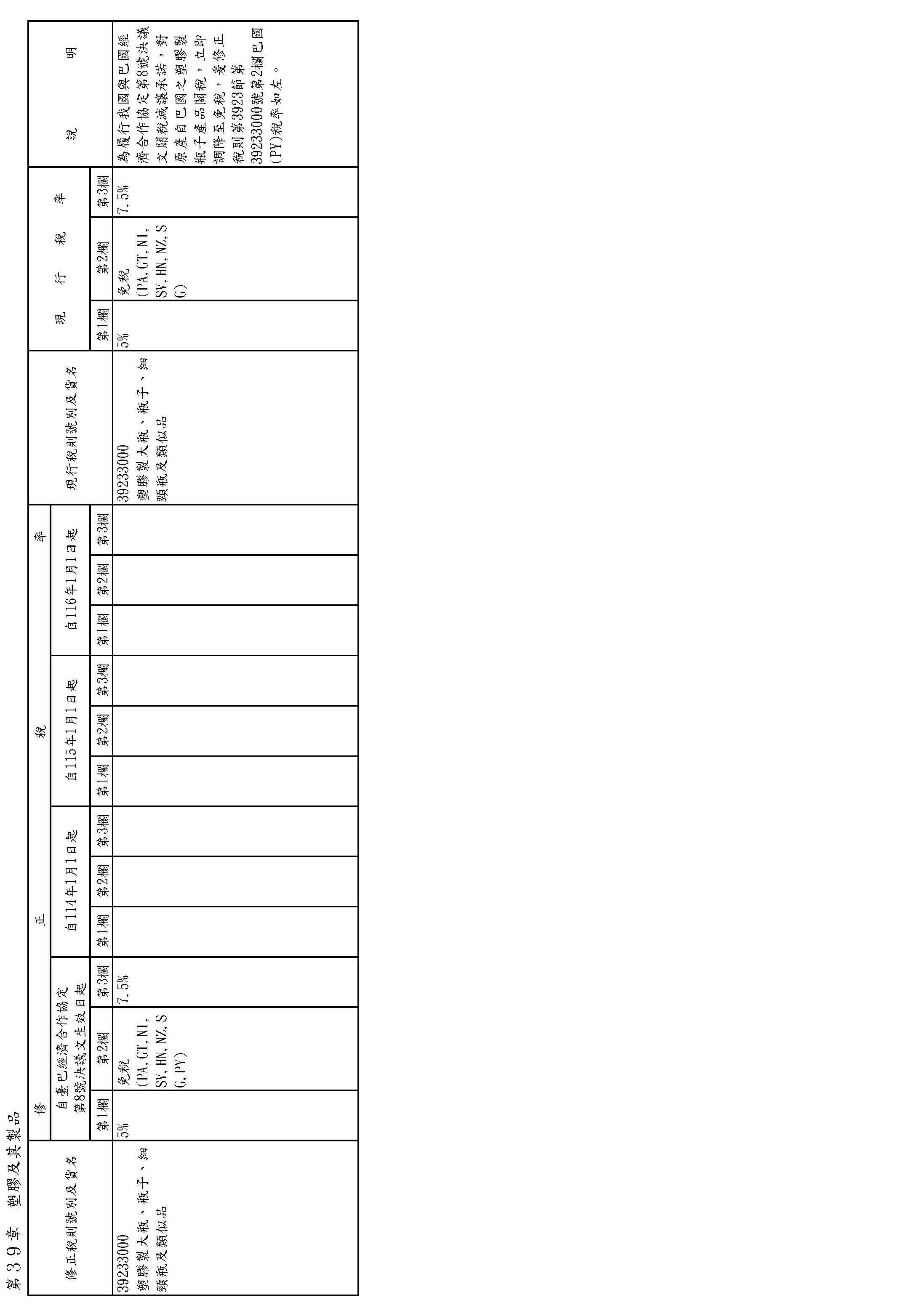 修正 第39233000號之第2欄稅率,修正巴拉圭(PY)適用之稅率。