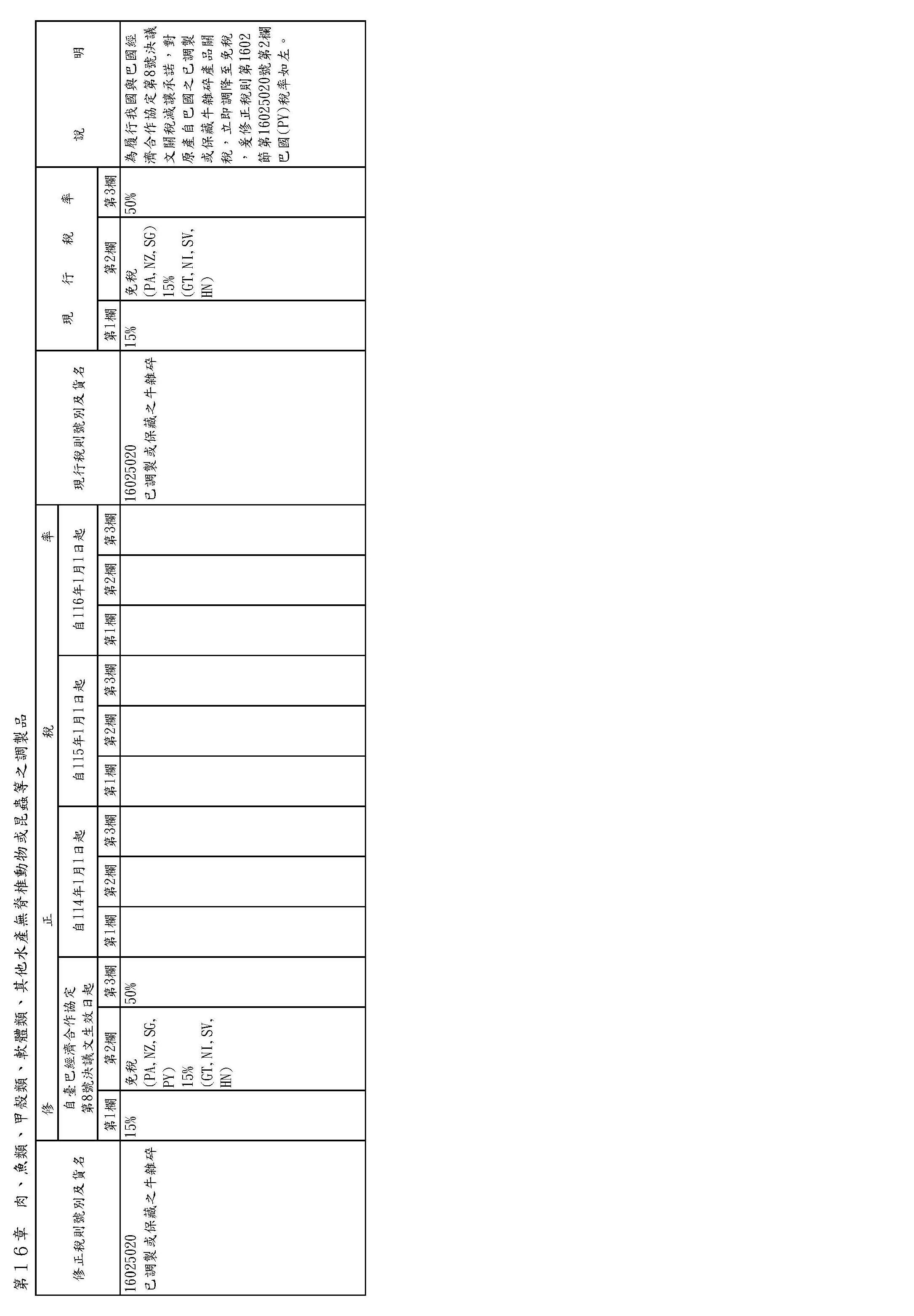 修正 第16025020號之第2欄稅率,修正巴拉圭(PY)適用之稅率。