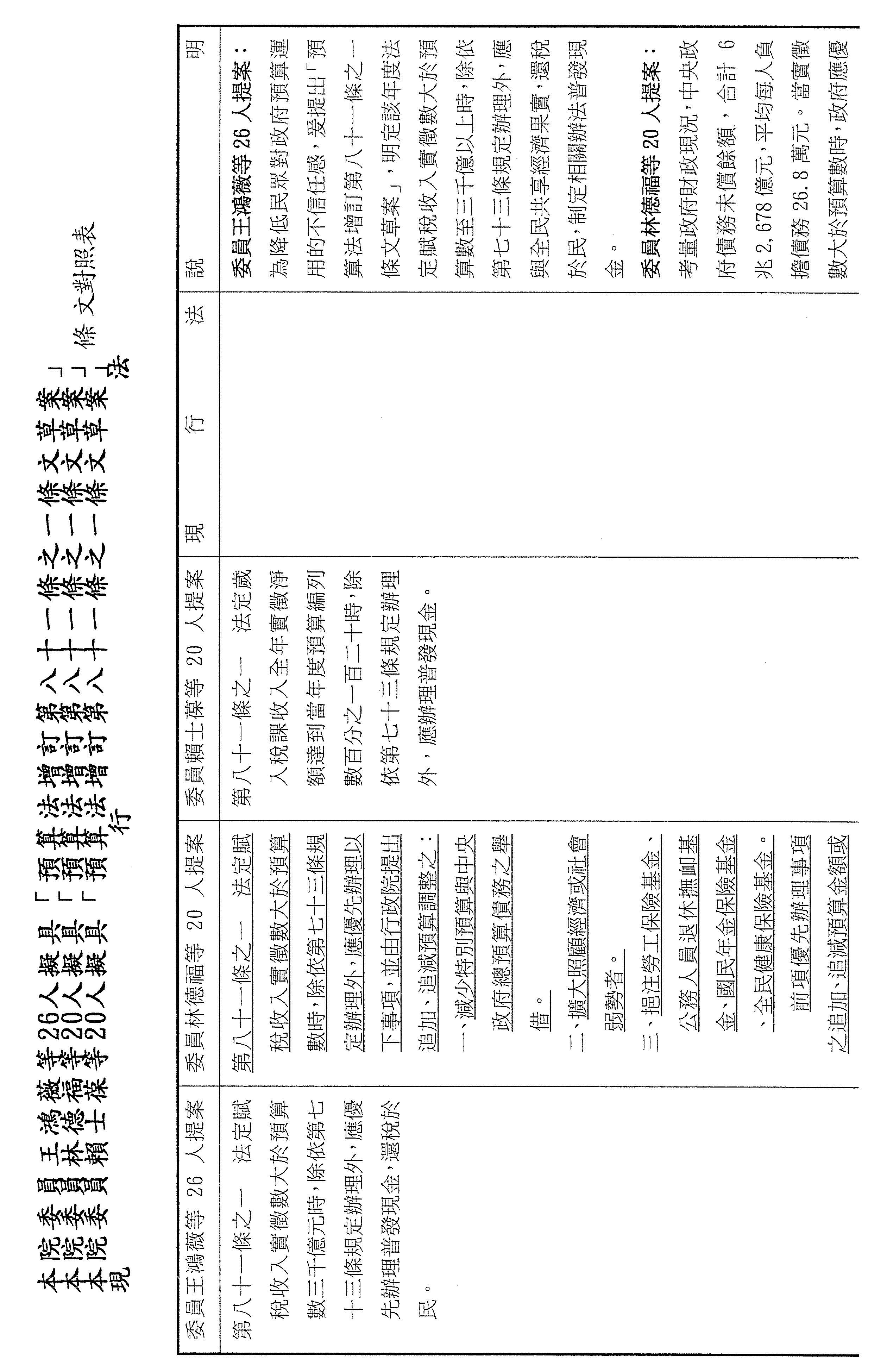 審查本院委員王鴻薇等26人、委員林德福等20人、委員賴士葆等20人分別擬具「預算法增訂第八十一條之一條文草案」等3案。