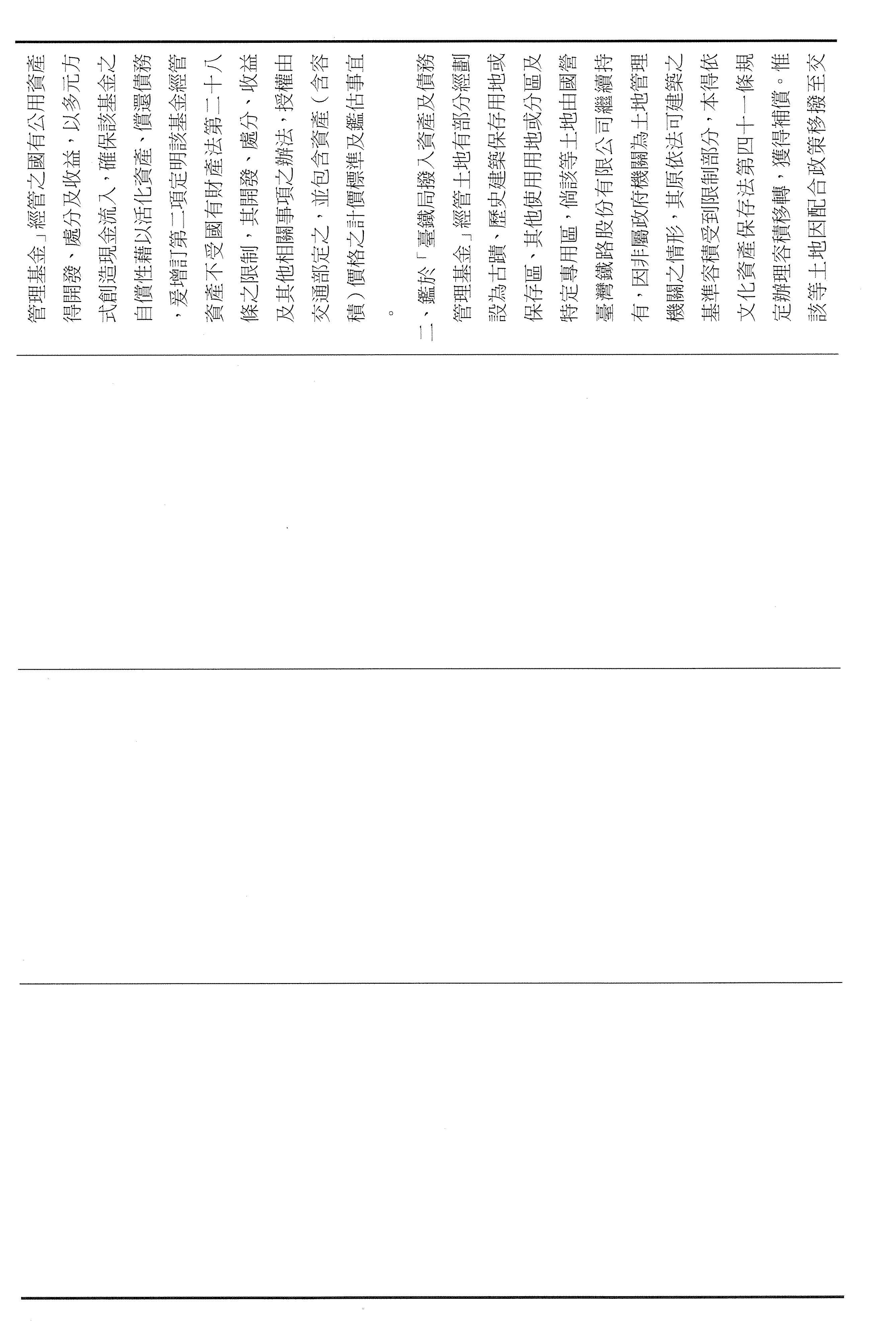 楊局長正君:謝謝委員的提問,我們償債基金所接收的4大資產,其中有3塊都有被指定為古蹟或是歷史建物,這部分我們會充分尊重文資法相關的保存、未來的維護跟使用,但是有關這些土地的容積價值,因為過去在文資法裡面,如果是私有土地的話,可以做容積移轉,但如果是政府所持有的土地,是不需要做容積移轉。所以這次的法案,我想建議,第一個,償債基金的土地不受國有財產法第二十八條的限制,否則按照我們現在的估計,4大資產如果只能夠出租使用的話,30年期間,大概只能夠收益288億,跟我們所承接的將近1,700億的債務,有一千四百七十多億的缺口,會導致政府的利息負擔,還有未來的債務會滾雪球,會變成沒有辦法處理的狀況,交通部非常感謝相關委員的提案,我們也建議就照這2個提案的精神來通過。