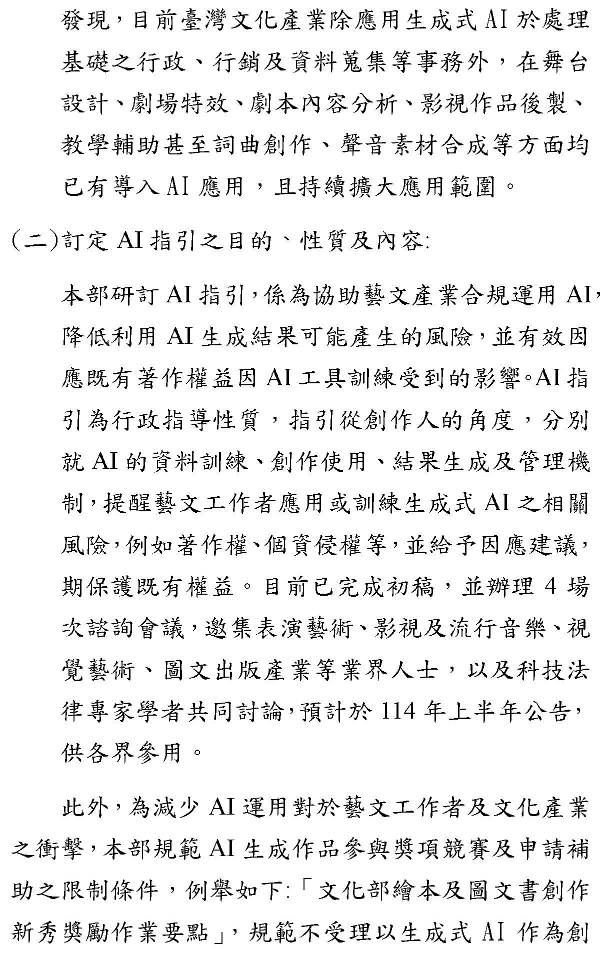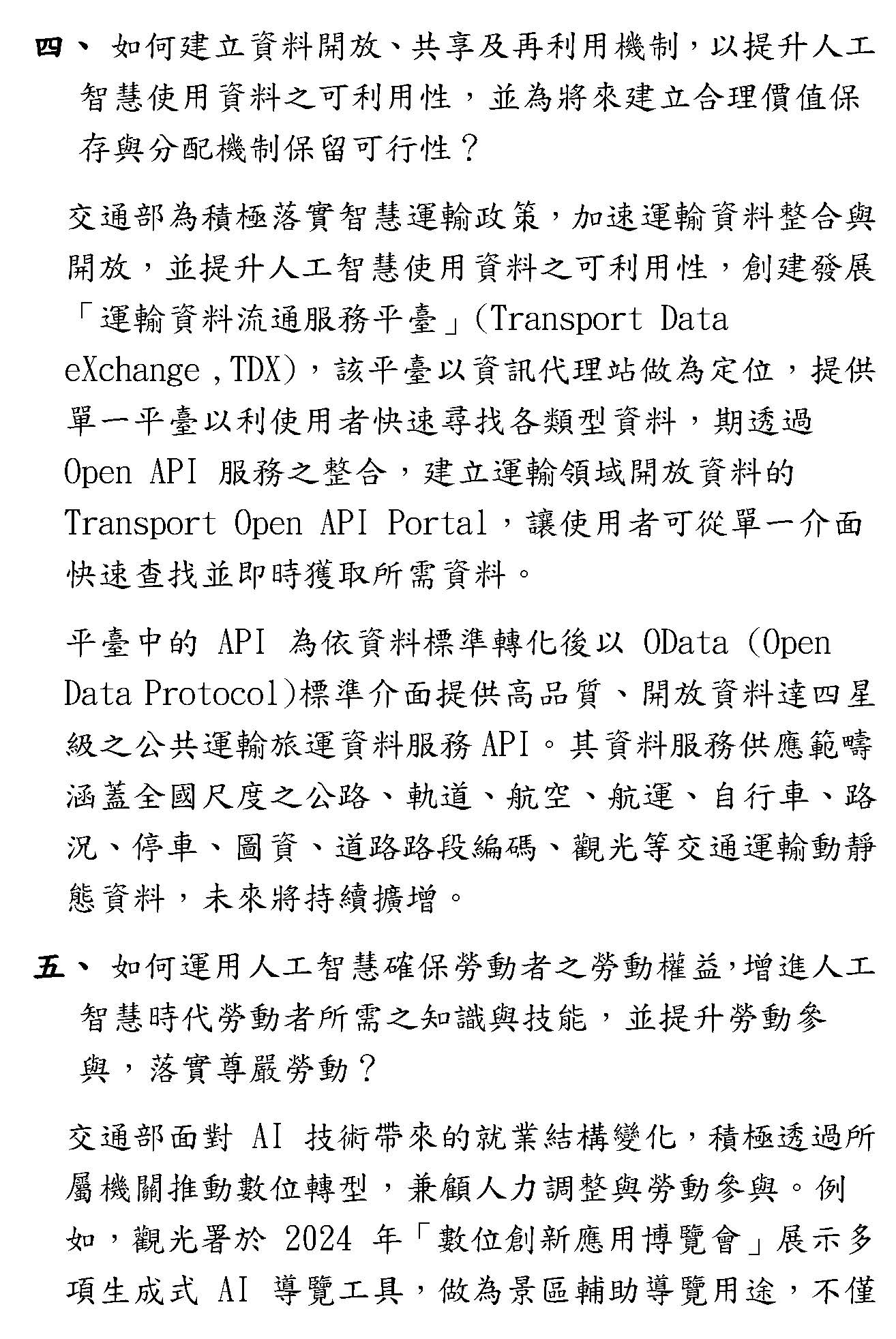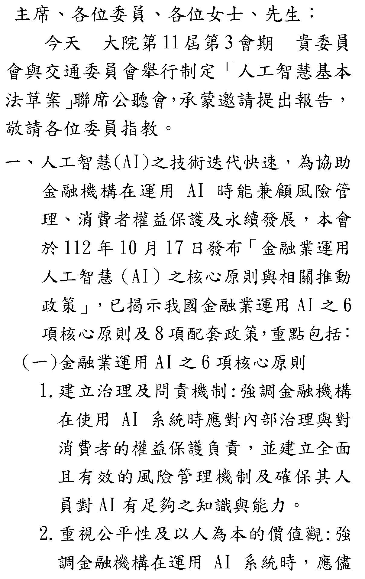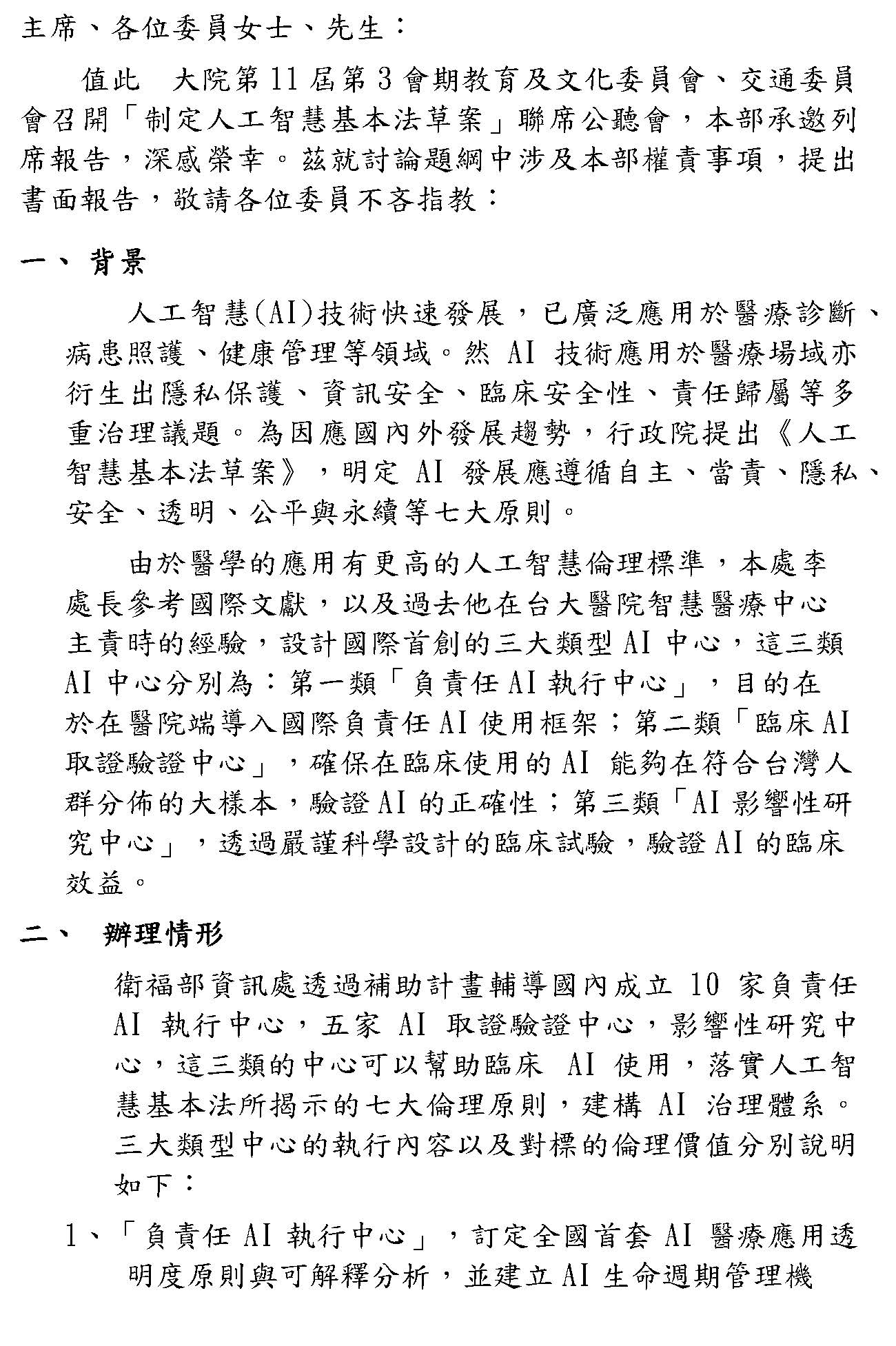 教育及文化委員會、交通委員會舉行制定「人工智慧基本法草案」聯席公聽會書面資料