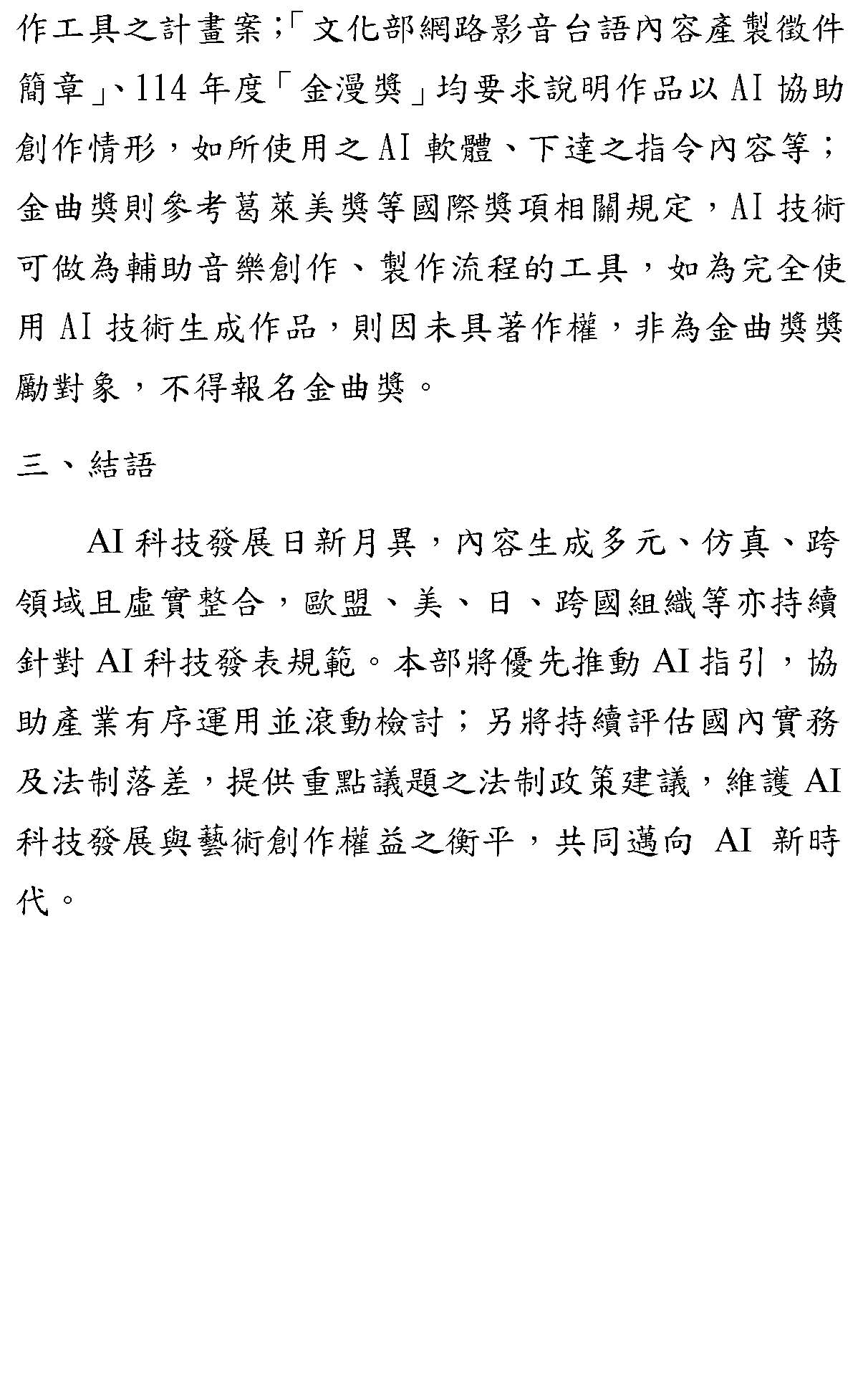 政府會持續傾聽各界建言,適時調整法規跟配套措施,希望通過本法的推動來引領臺灣在全球AI創新浪潮中能夠站穩關鍵地位,同時維護國家主權跟文化價值,創造更有智慧、安全且永續的數位社會。
