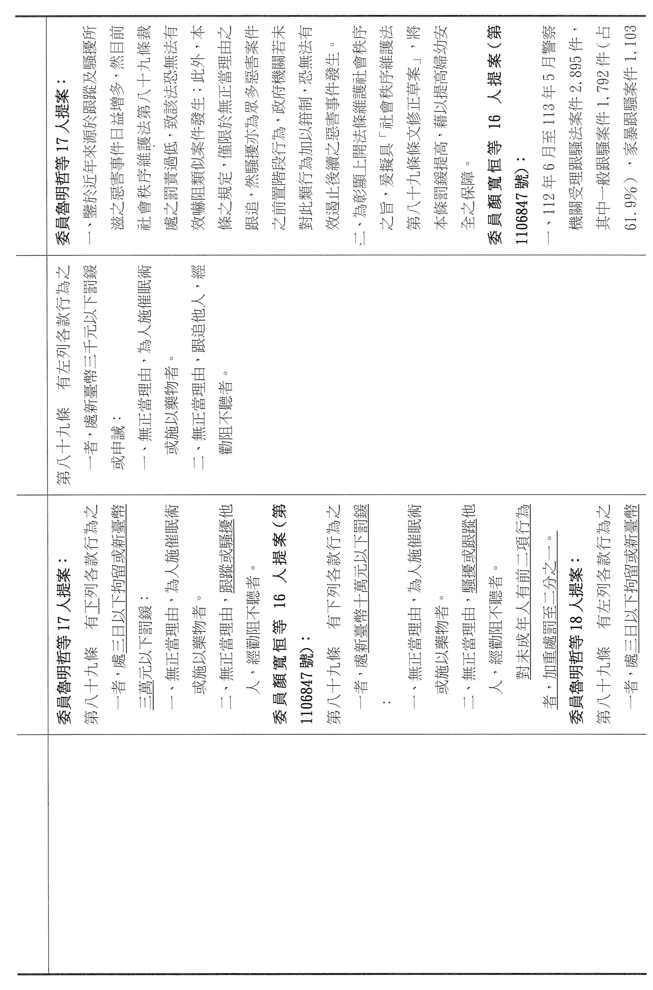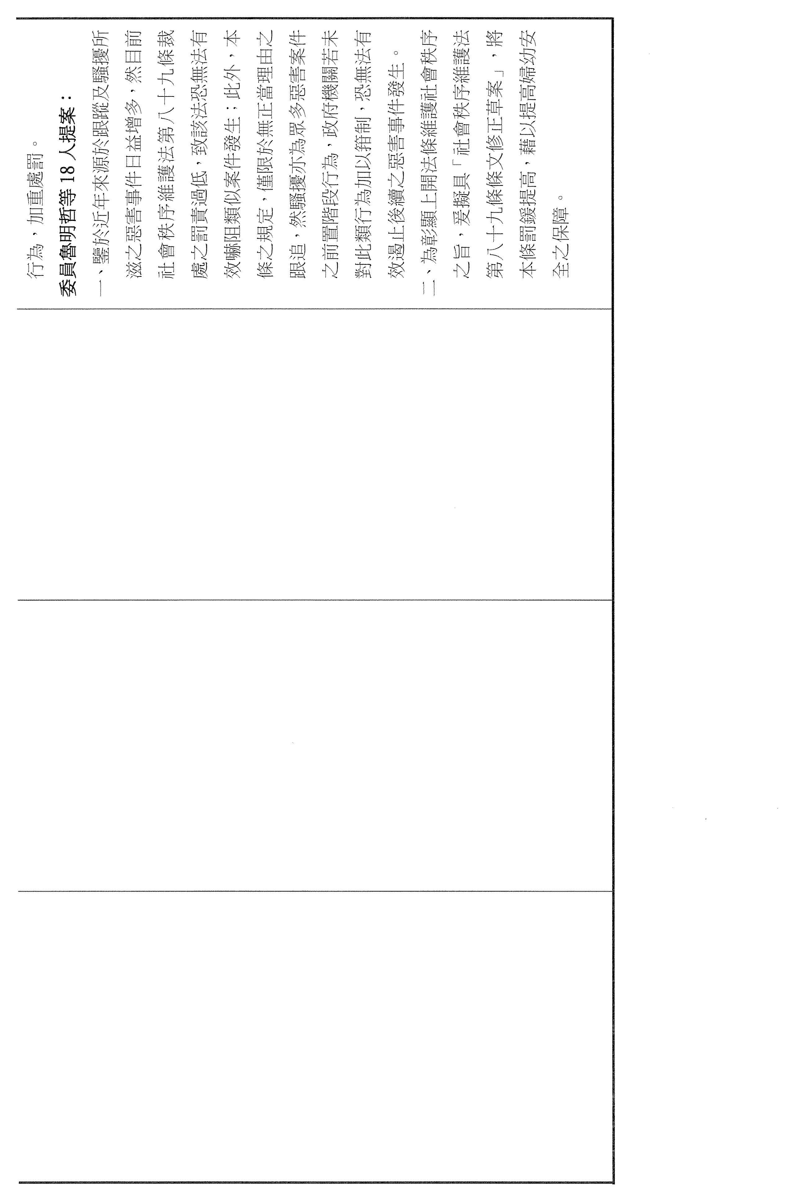 十一、審查委員魯明哲等18人擬具「社會秩序維護法第八十九條條文修正草案」案。