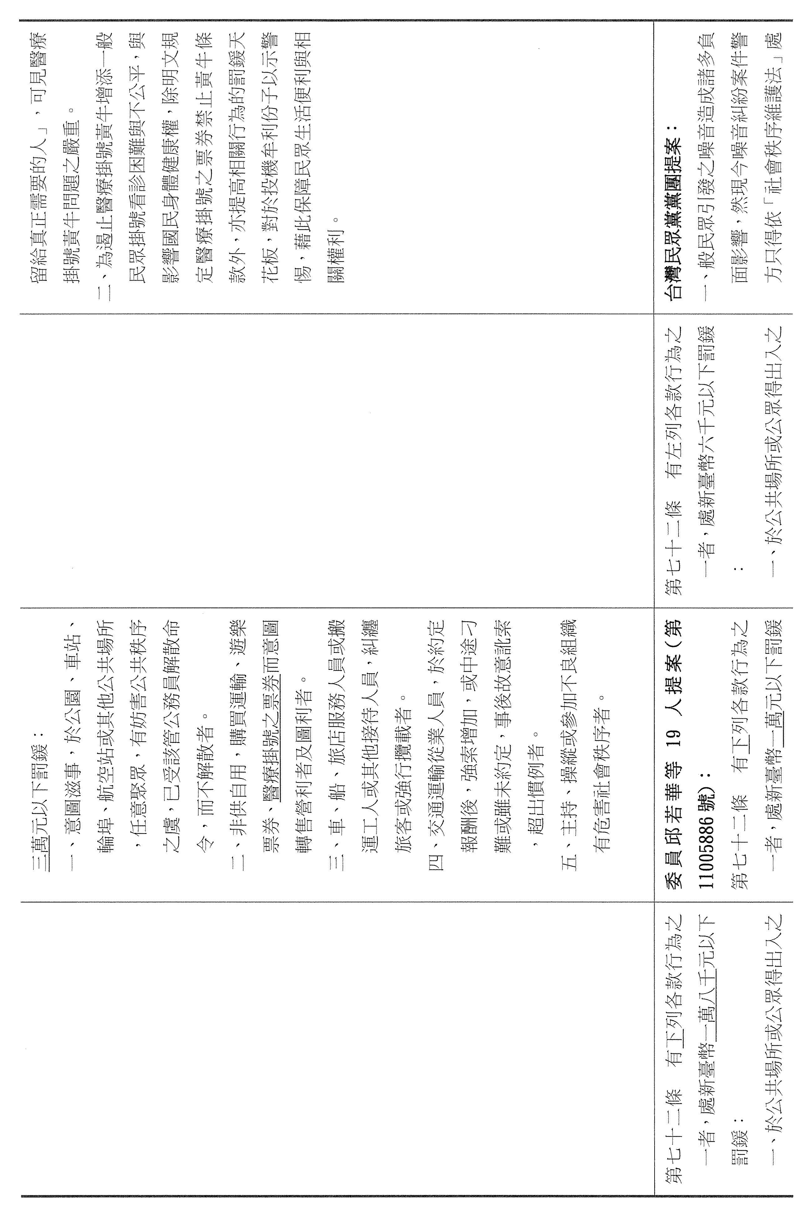 八、審查委員邱若華等19人擬具「社會秩序維護法第七十二條條文修正草案」案。