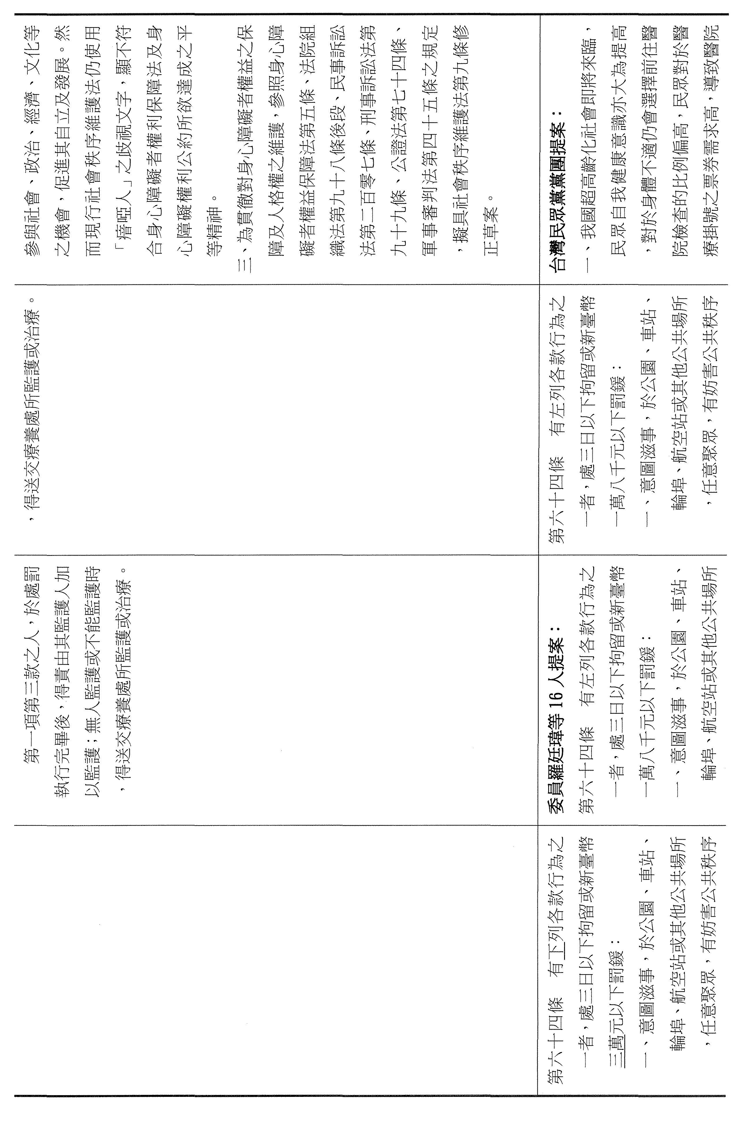 六、審查台灣民眾黨黨團擬具「社會秩序維護法第六十四條及第七十二條條文修正草案」案。