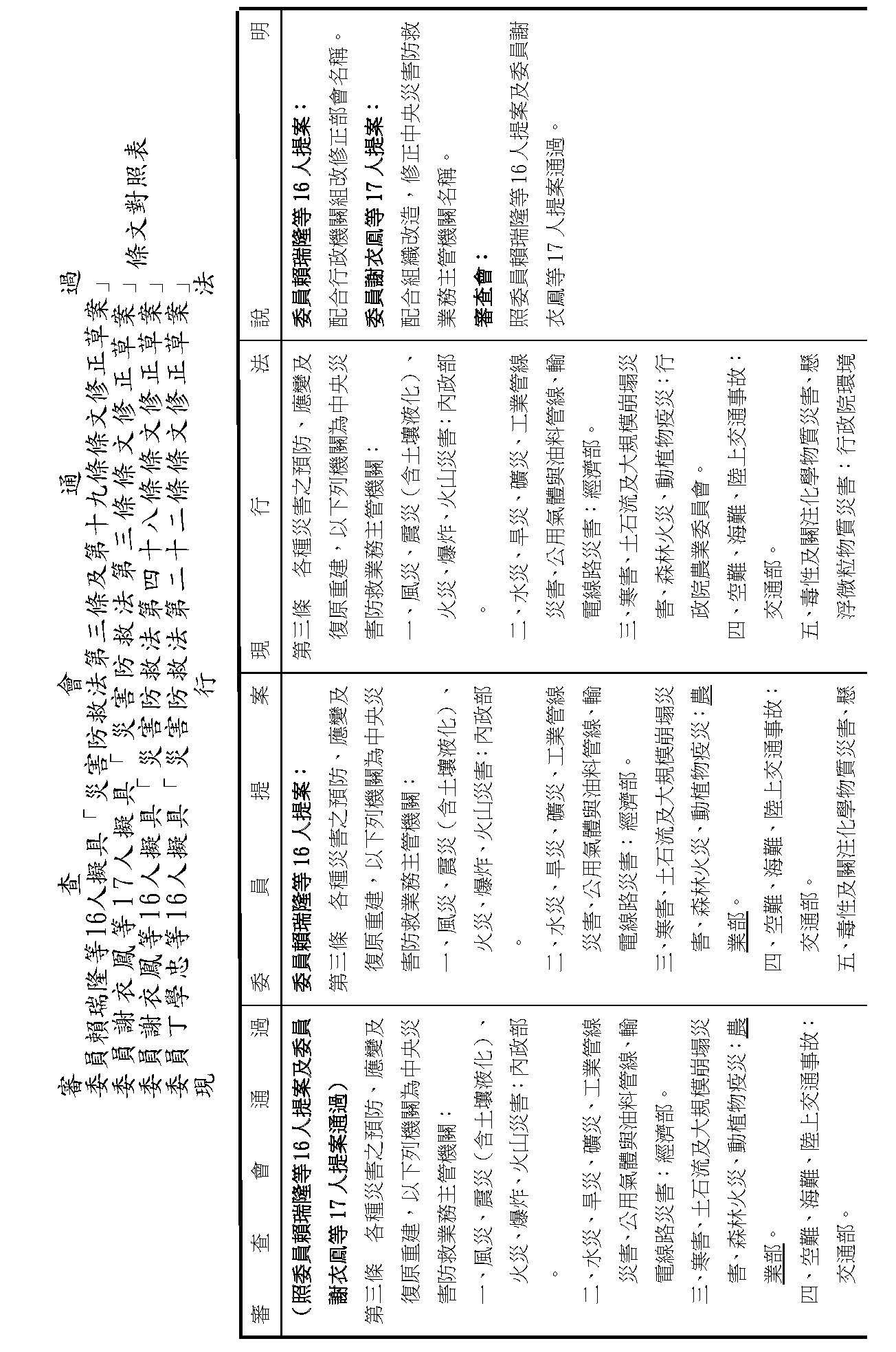 災害防救法修正第三條、第二十二條及第四十八條條文(三讀)