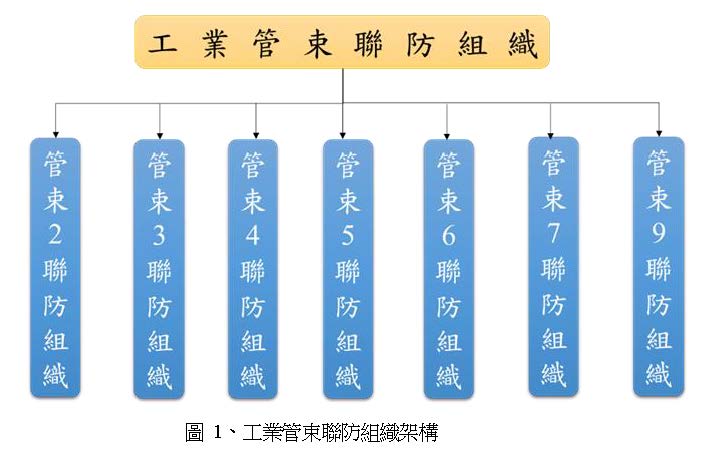 103年高雄發生731氣爆後,中央即協同地方政府清查全國工業管線,管線依縣市所在地及行經路徑區分為各工業管束,為使業者有效管理管線,中央主管機關協助業者成立「地下工業管束聯防組織」,高雄氣爆事故之管束1僅剩一條氮氣管線輸送,而原管束6與原管束8於107年合併為管束6,現共計7大管束(工業管束聯防組織架構如圖1),分別為高雄市6個管束(管束2~7)及宜蘭縣1個管束(管束9),共有22個石化廠(17家石化業者)。