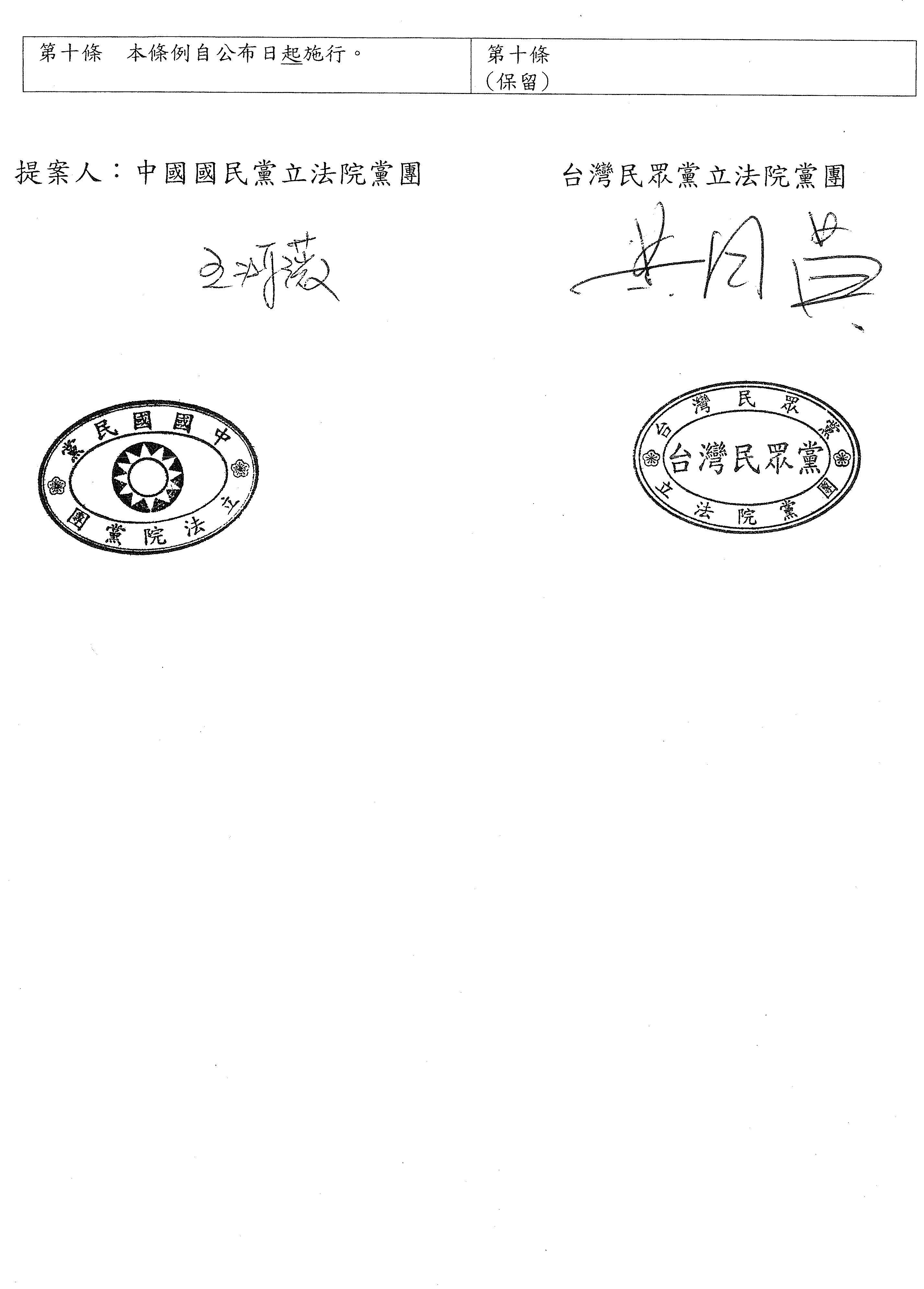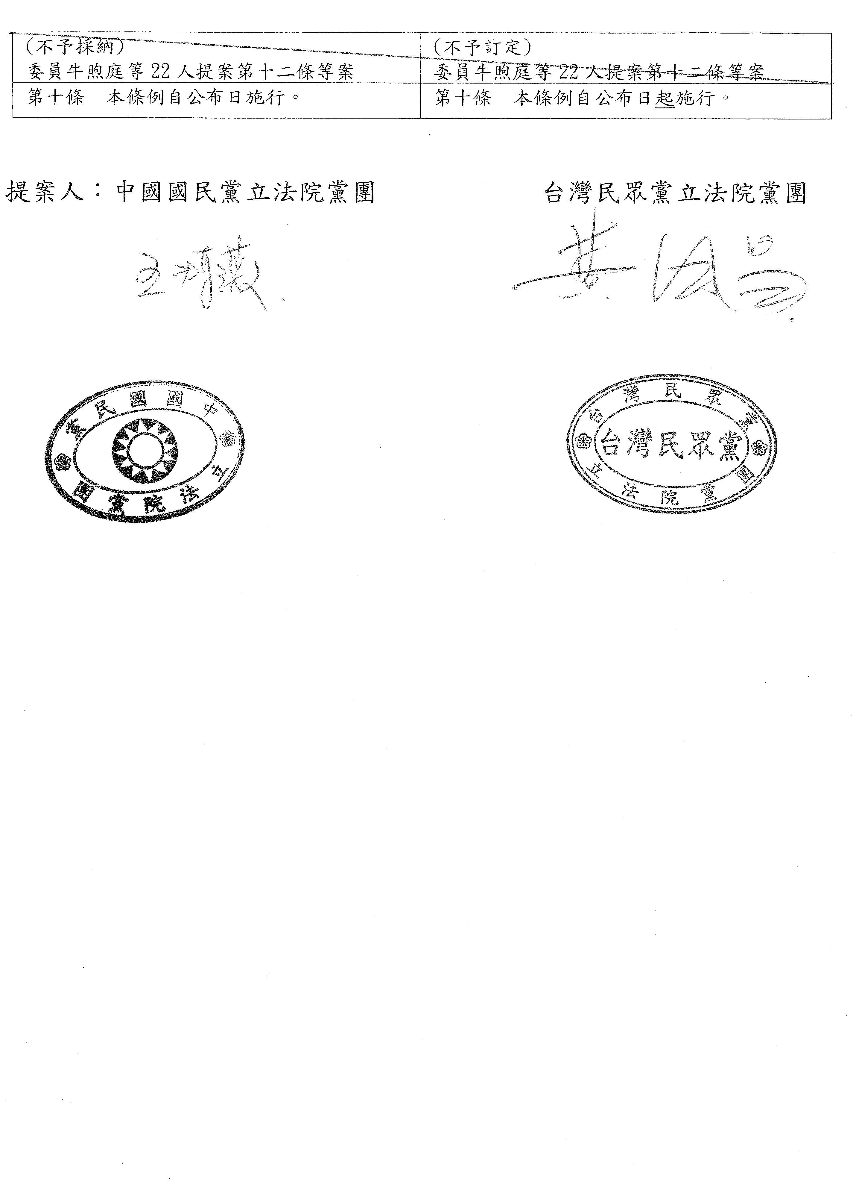 國民黨黨團、台灣民眾黨黨團共同提案: