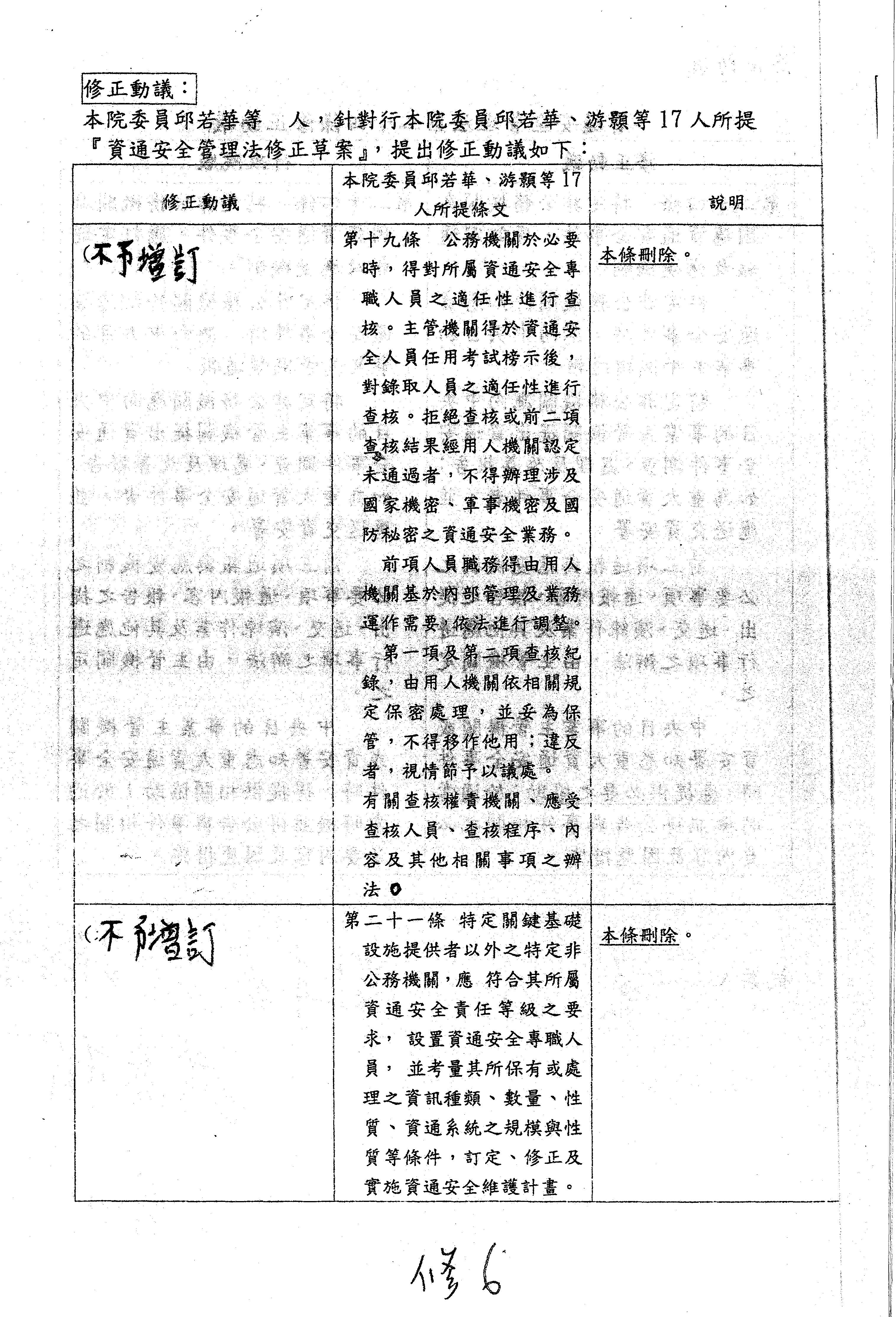 二十、審查委員郭昱晴等19人擬具「資通安全管理法第六條、第七條及第十條之一條文修正草案」案。