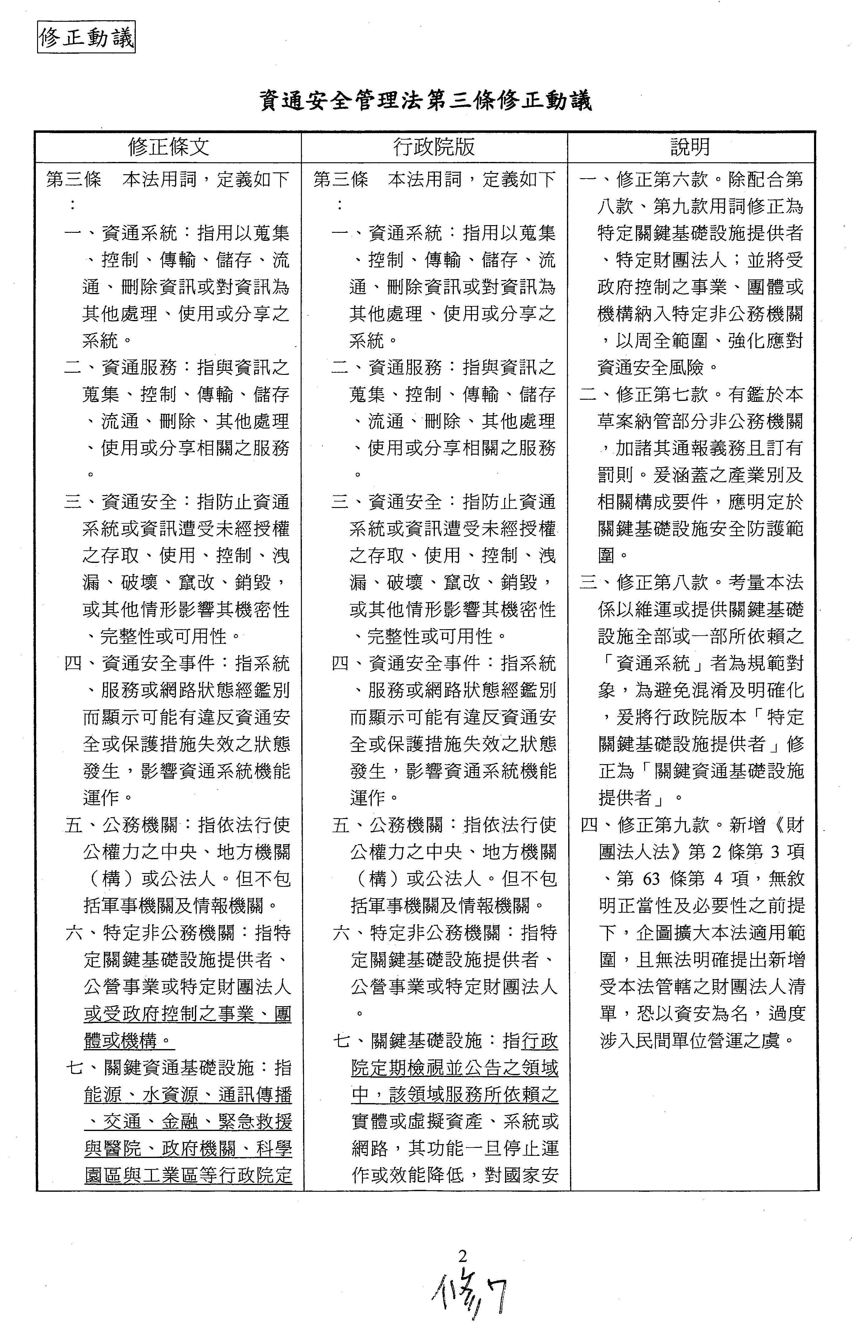 「資通安全管理法修正草案」逐條審查書面報告