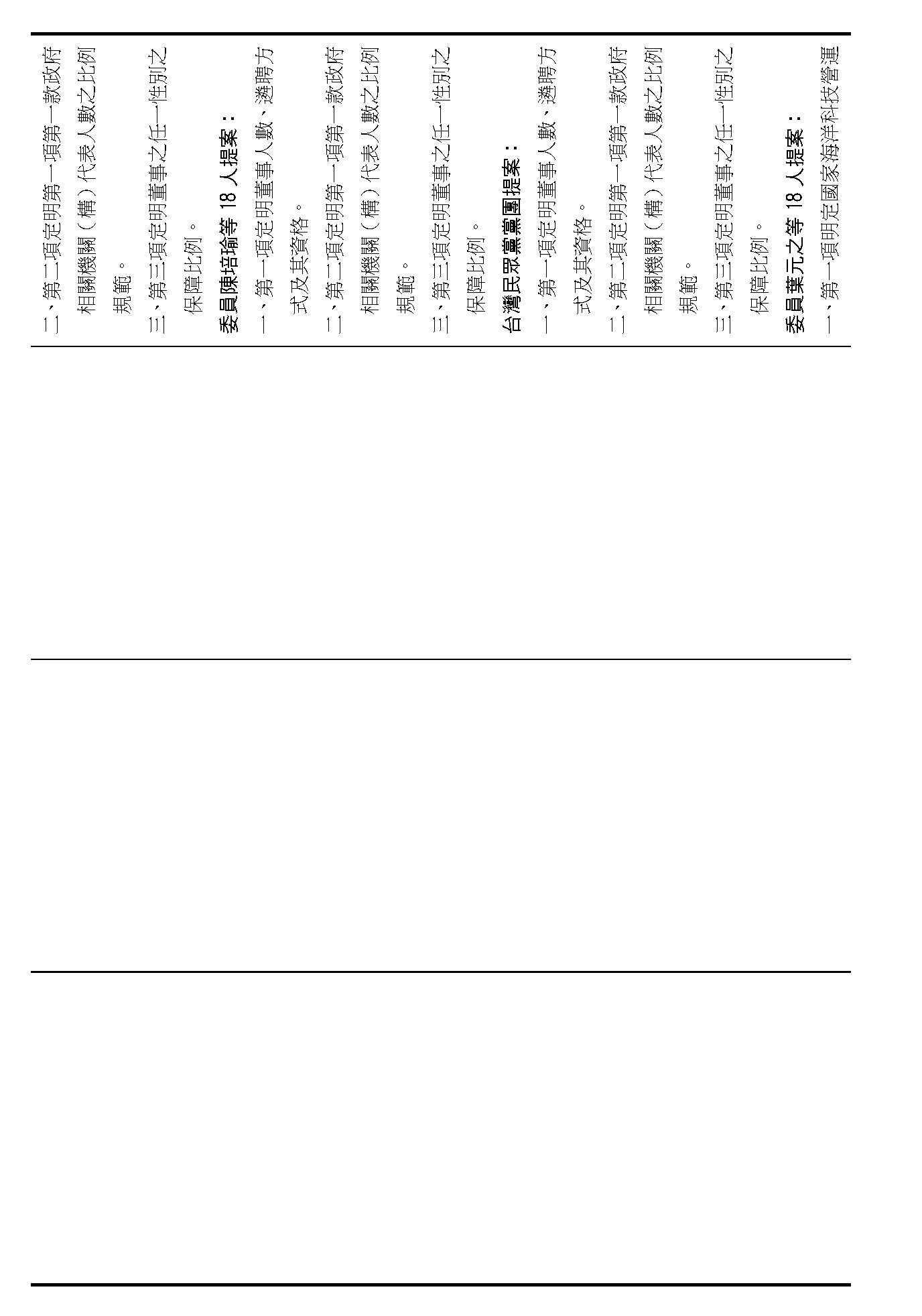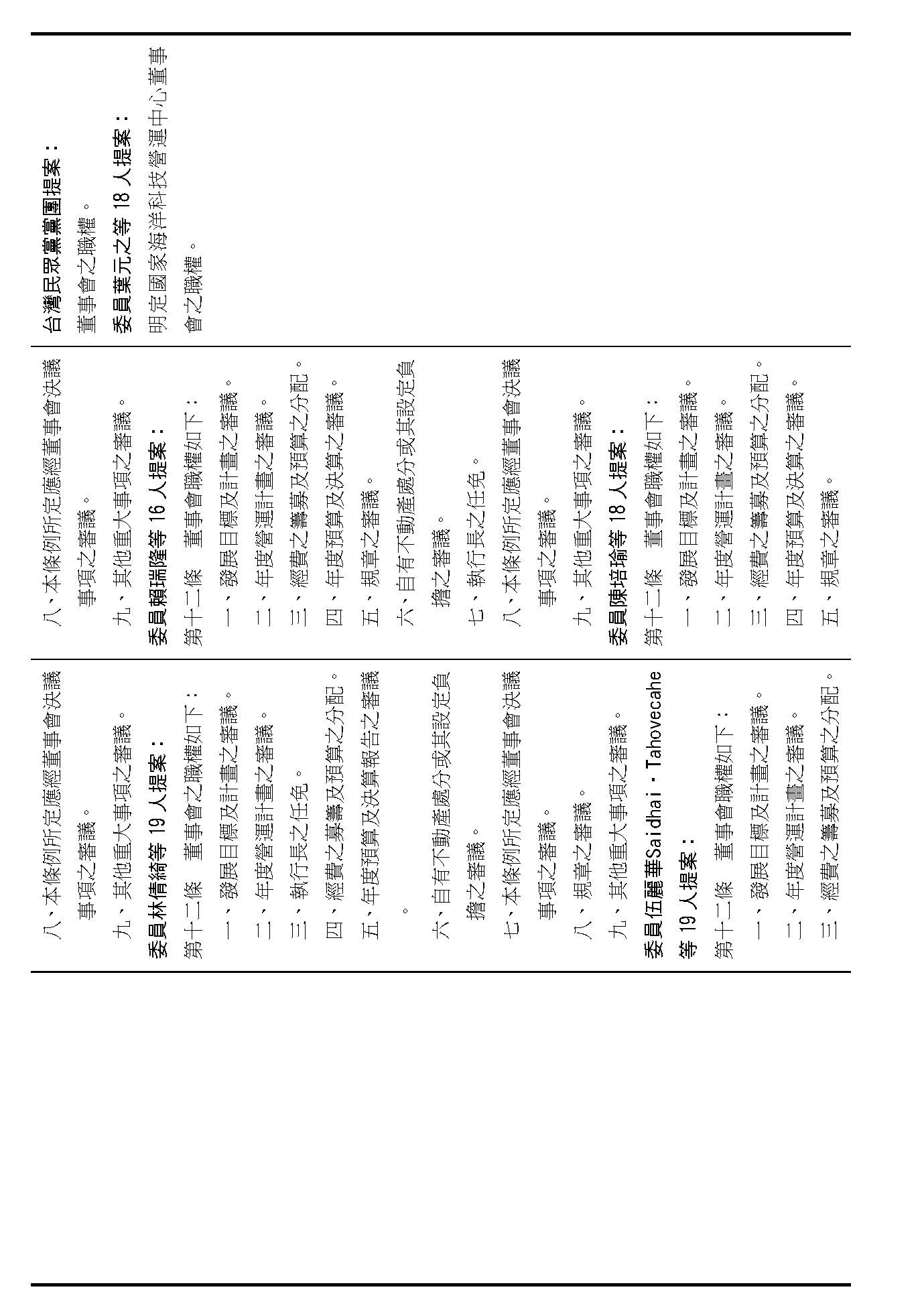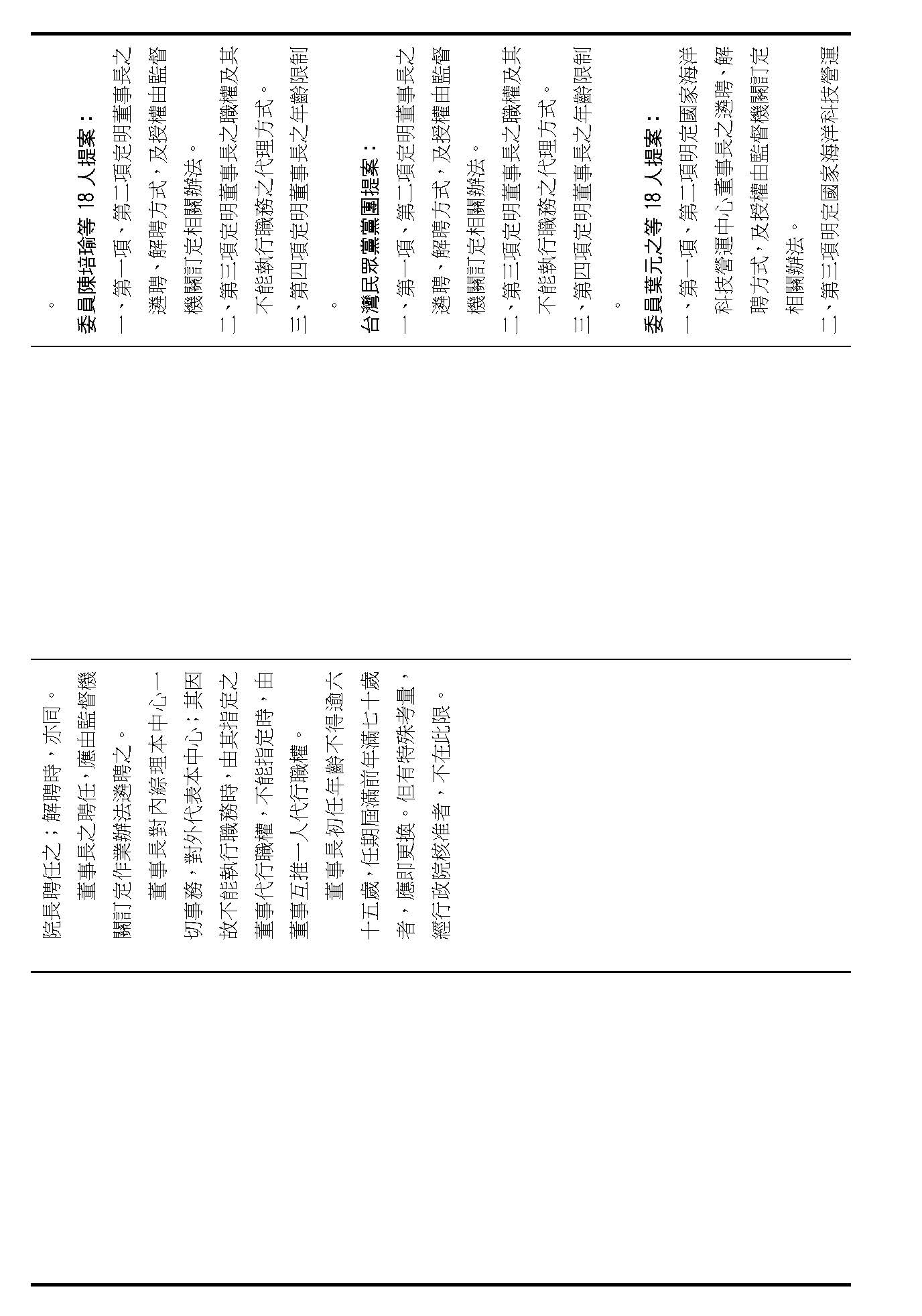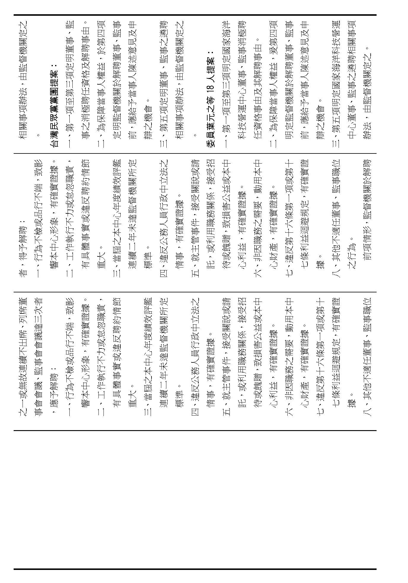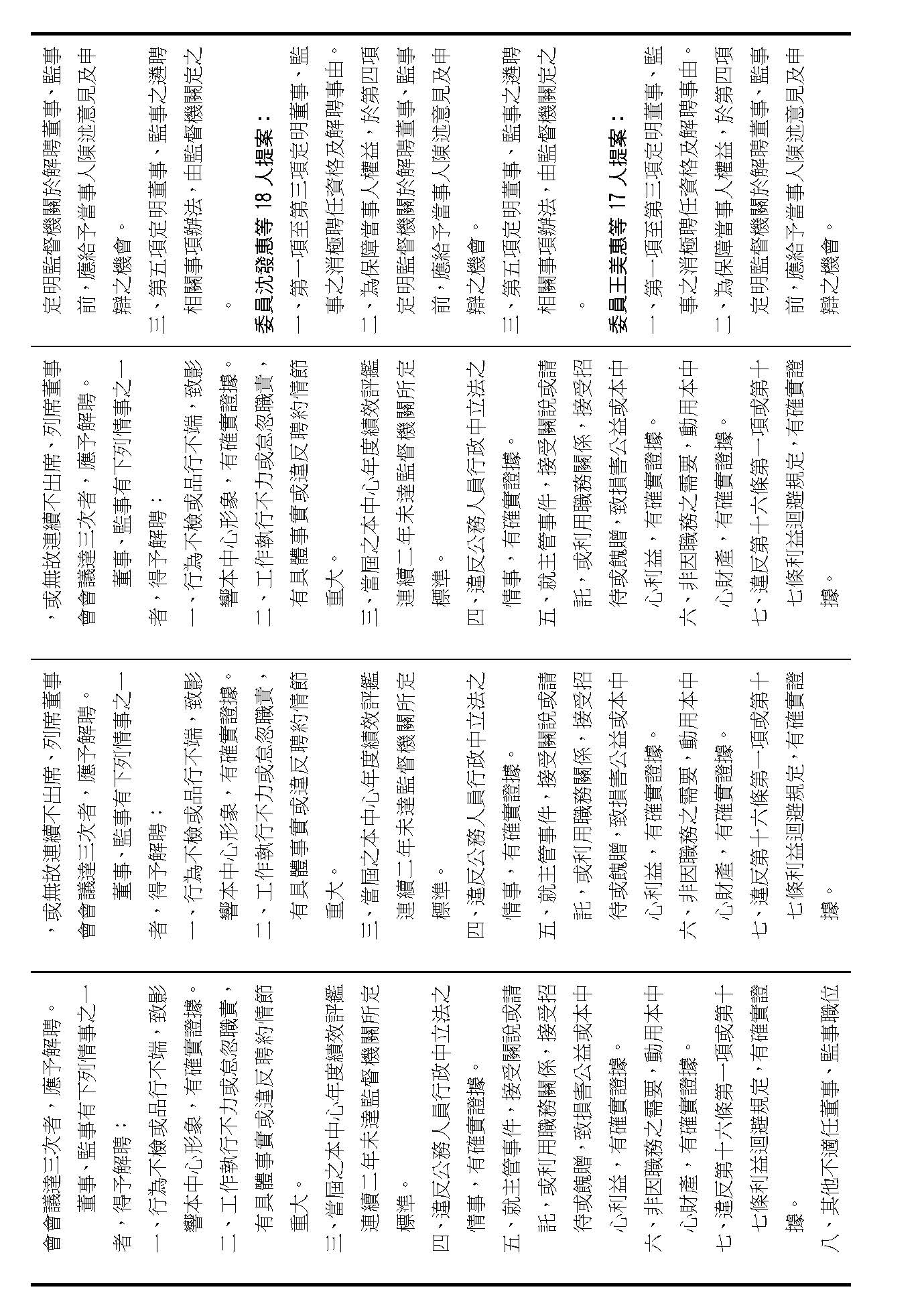 第八條是董事及監事的任期、解聘還有補聘的方式,這條提案的內容都大同小異,如果在場委員沒有其他的意見的話,我們就按照行政院的提案通過。