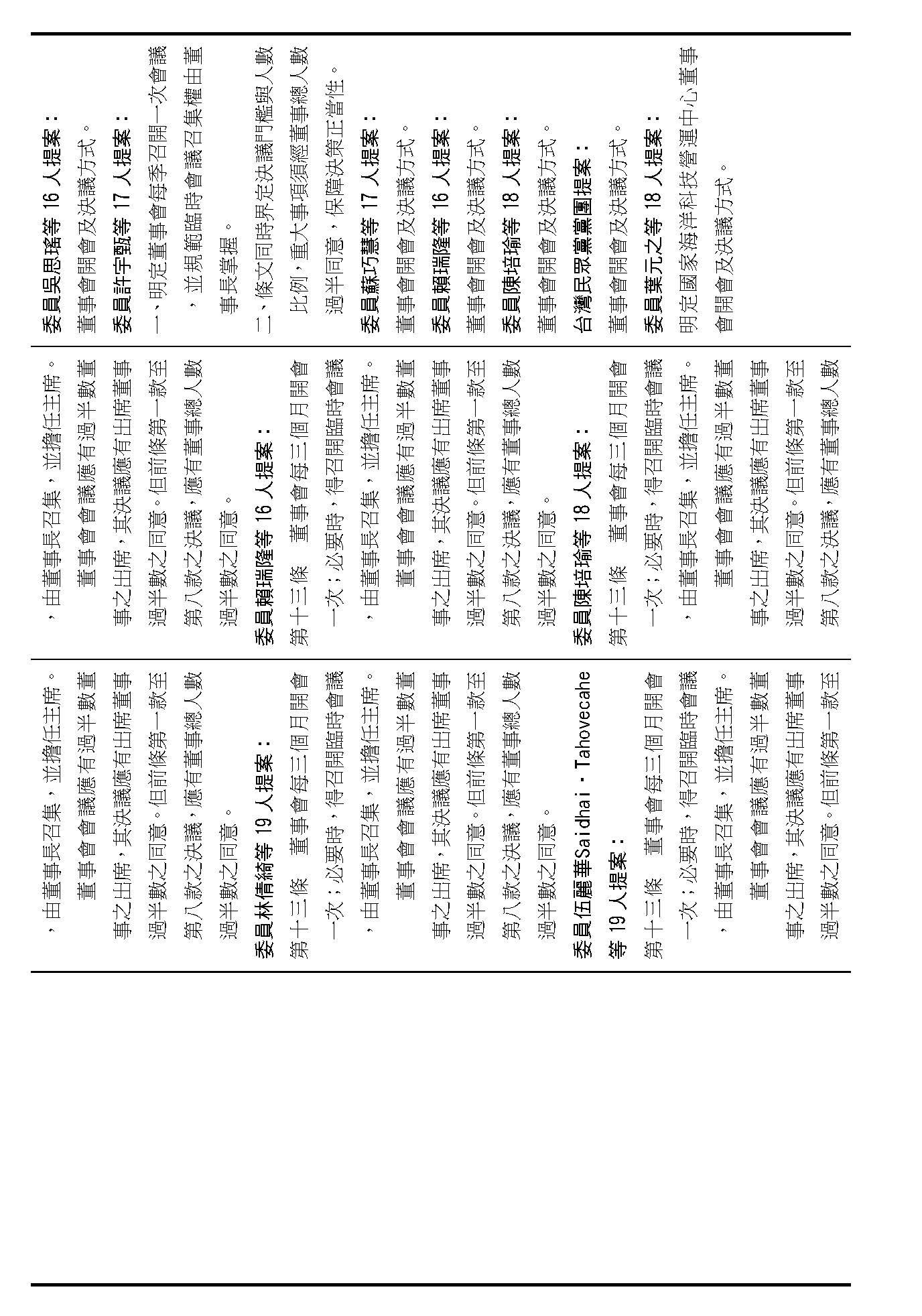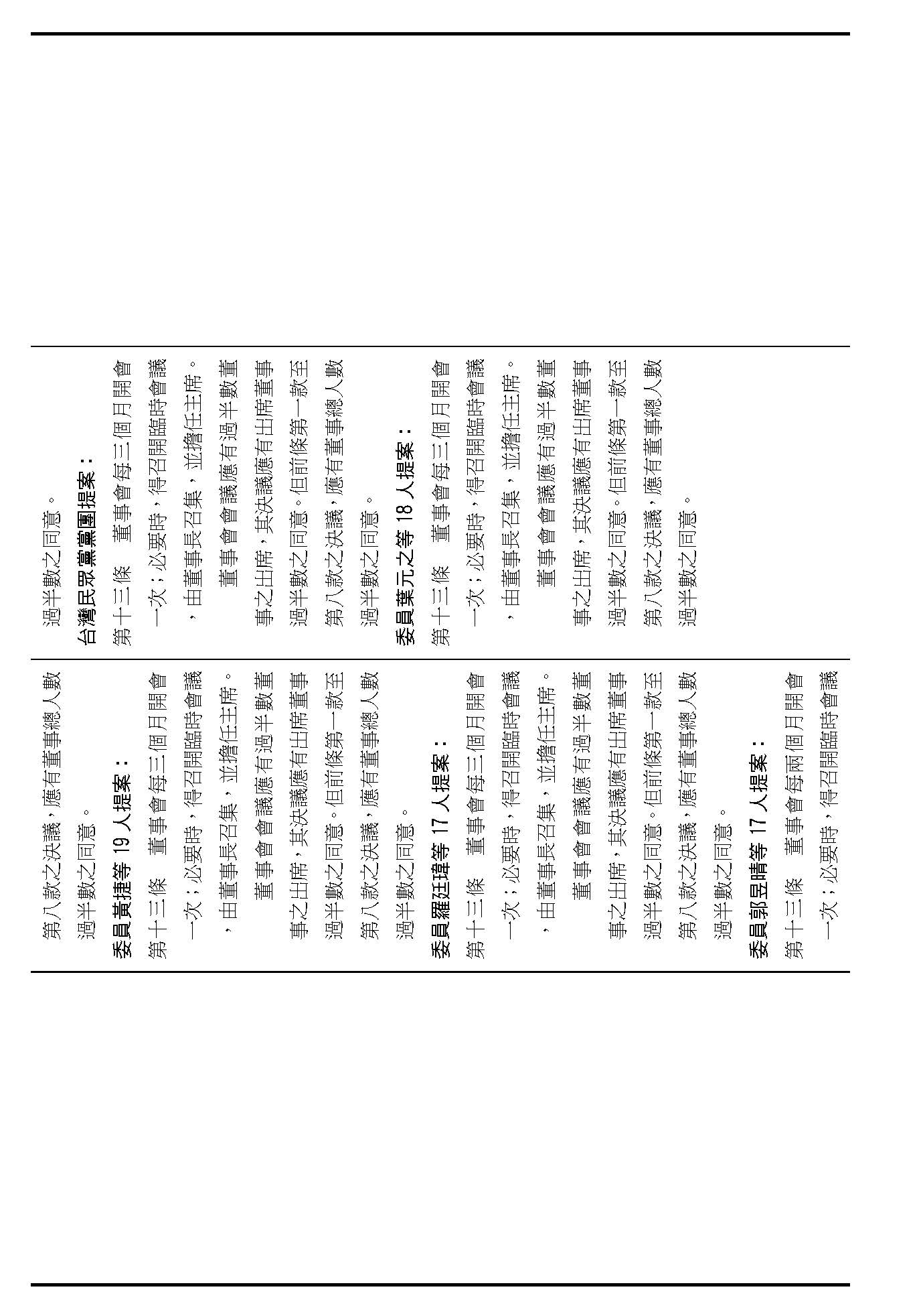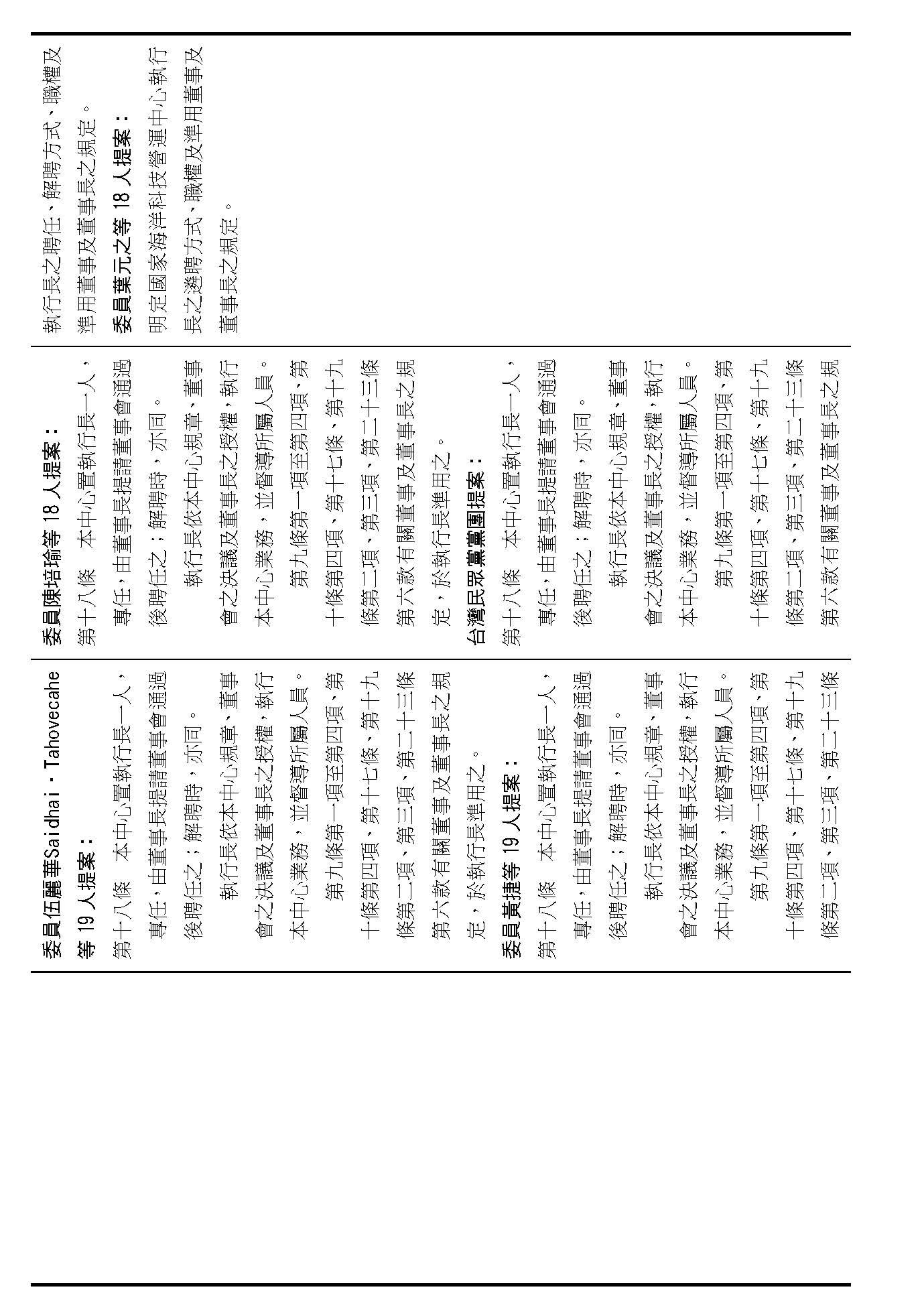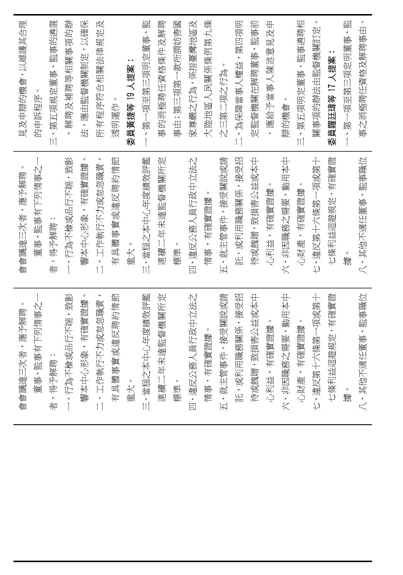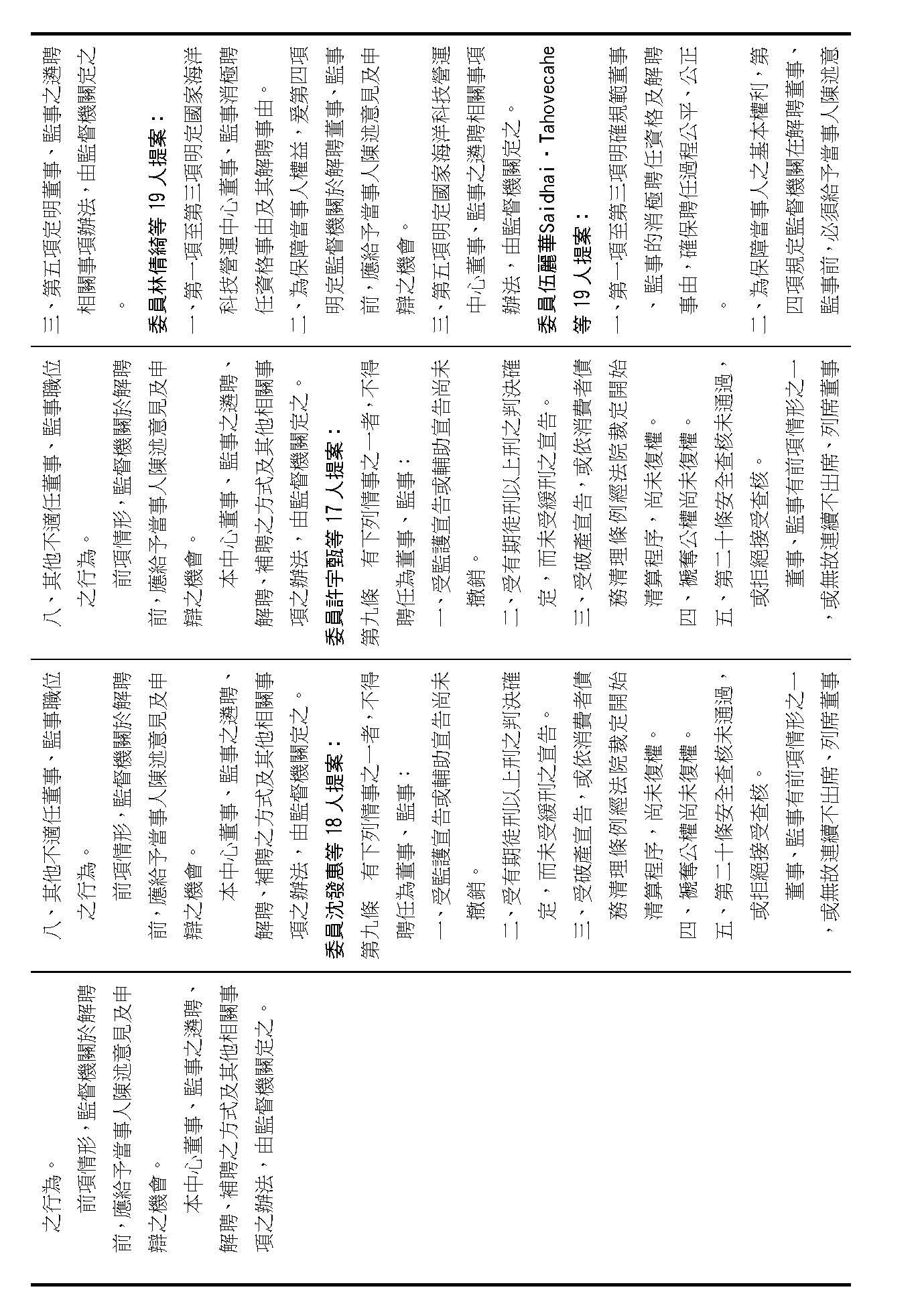 第八條是董事及監事的任期、解聘還有補聘的方式,這條提案的內容都大同小異,如果在場委員沒有其他的意見的話,我們就按照行政院的提案通過。