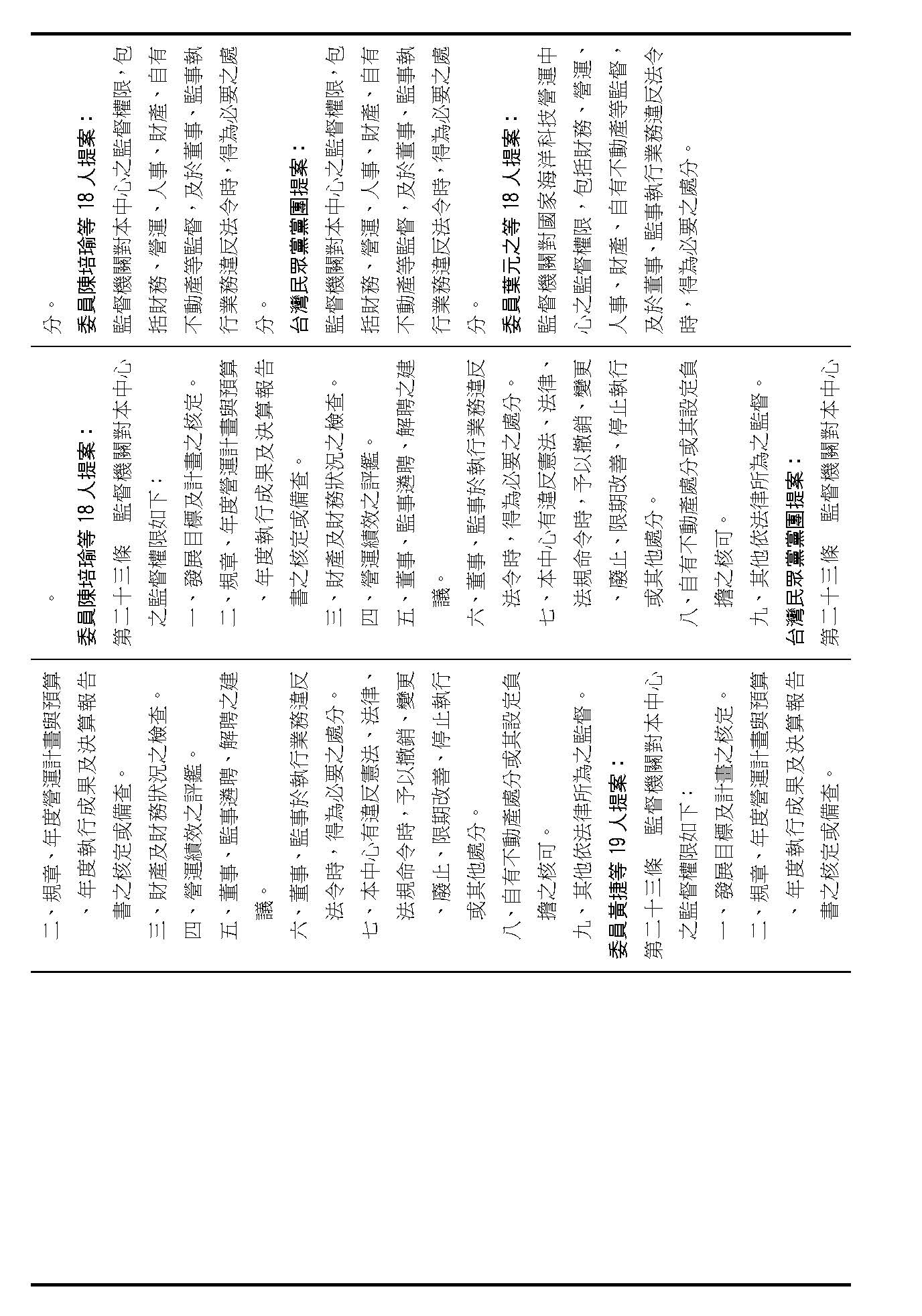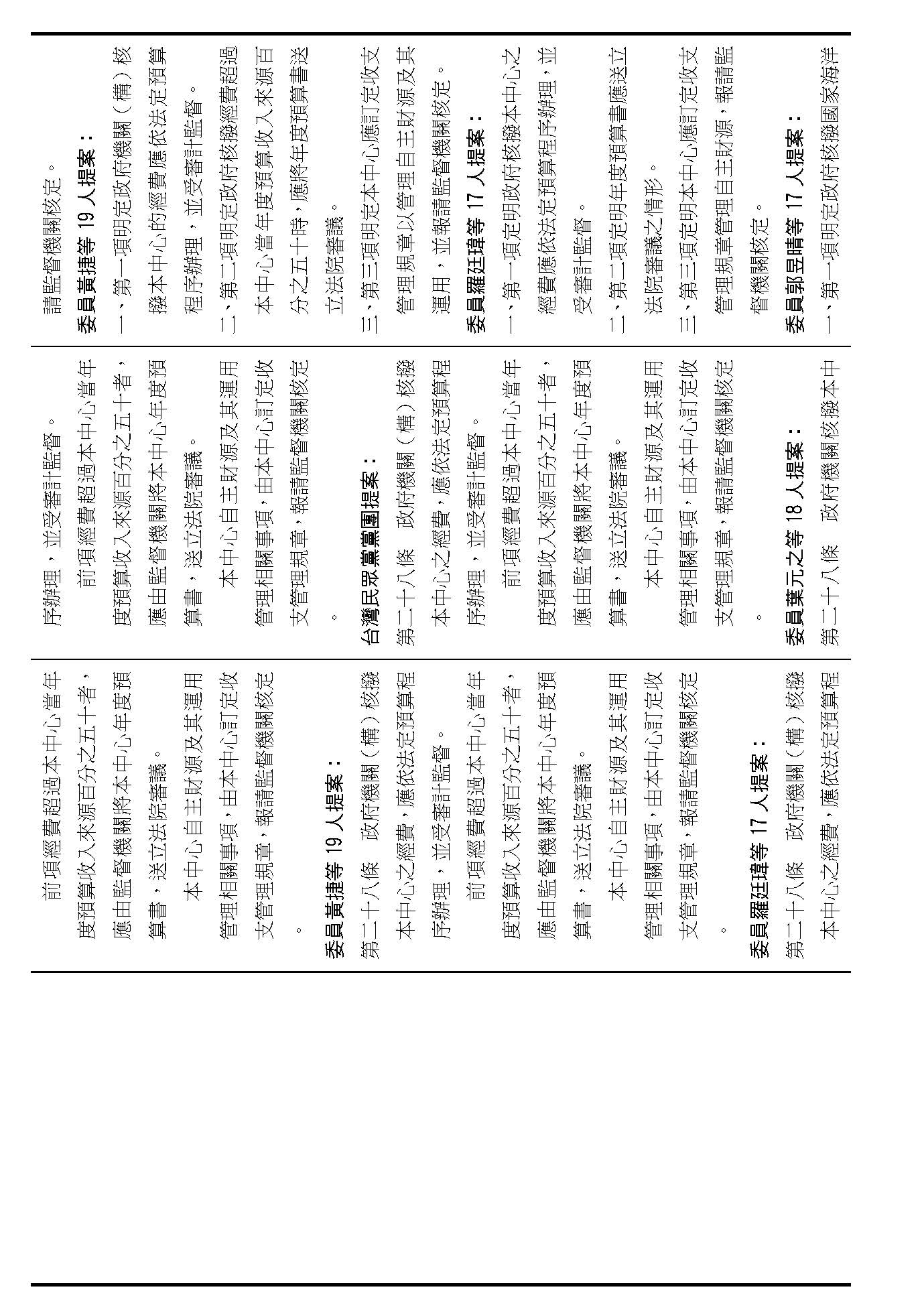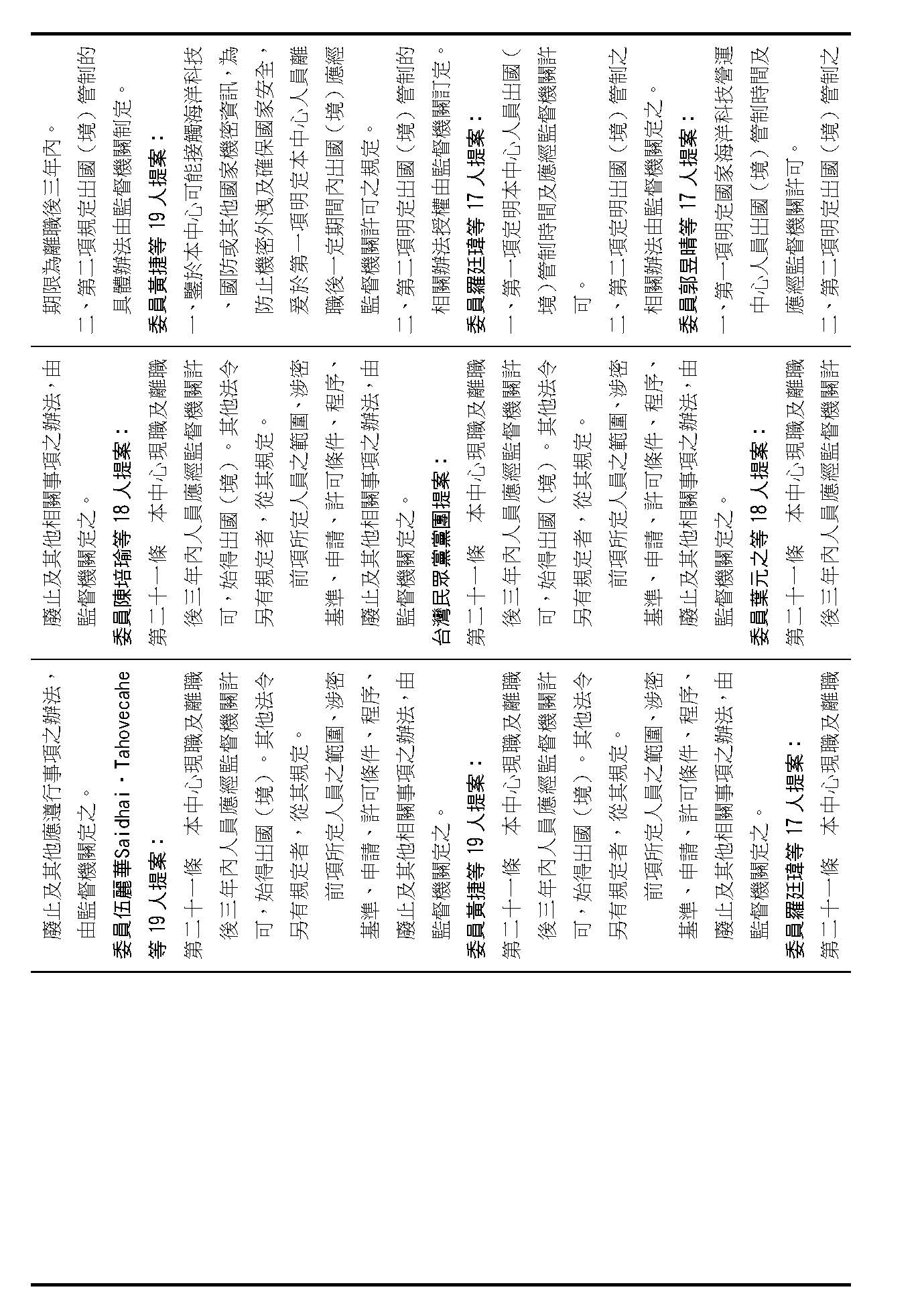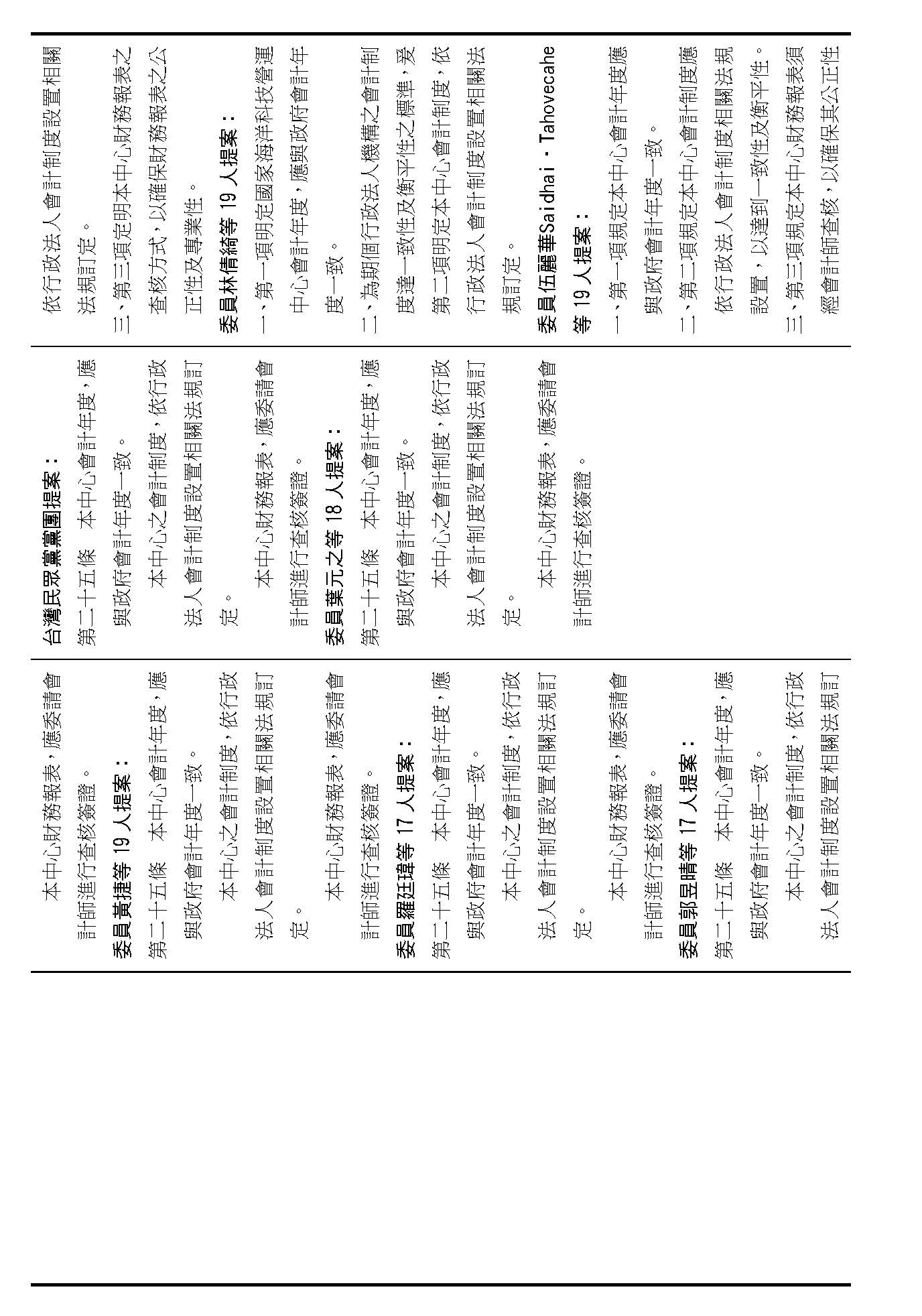 主席:第二十條修正動議,在場委員有沒有不同意見?(無)如果沒有的話,我們就按照黃國昌委員等7人所提修正動議通過。