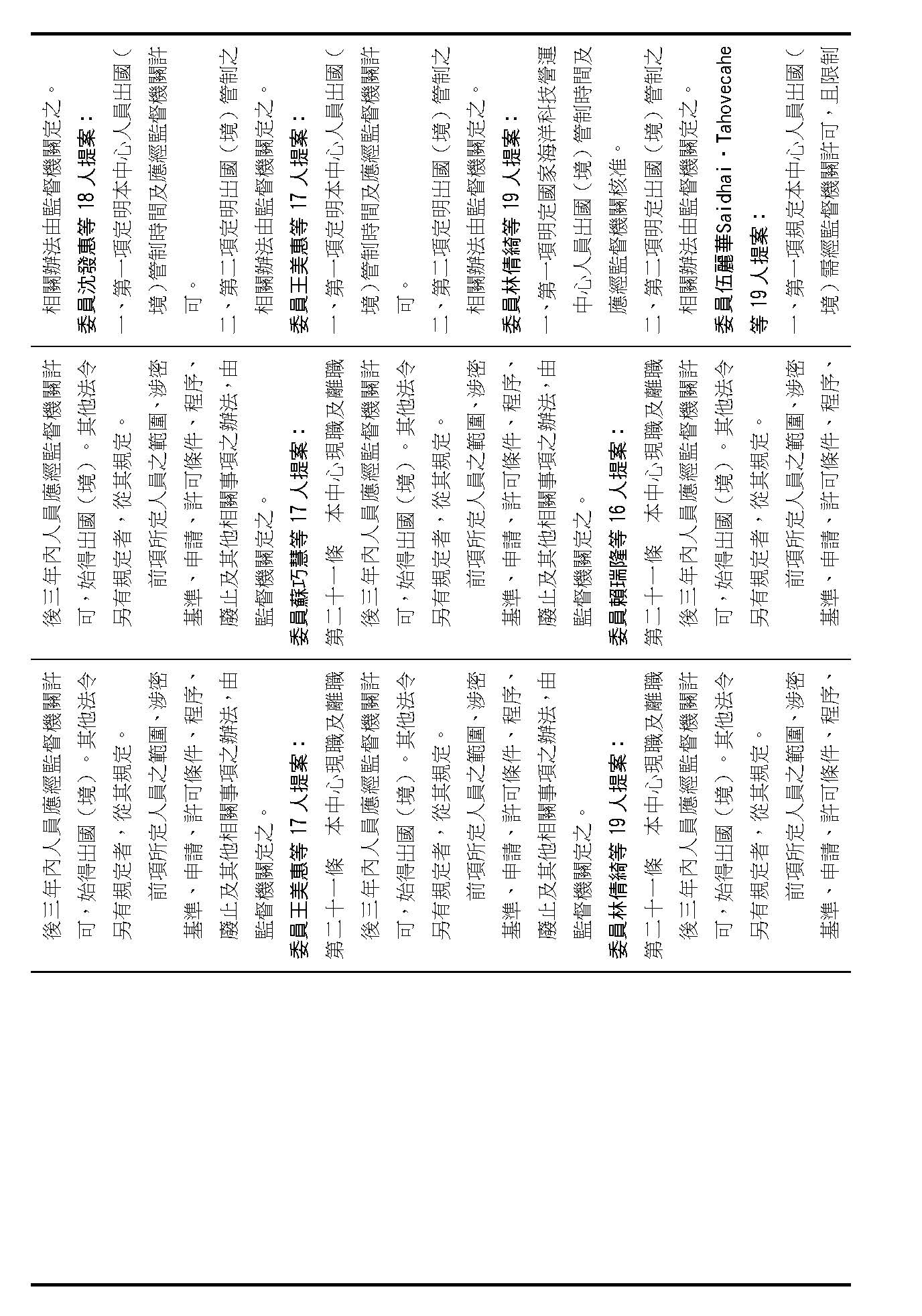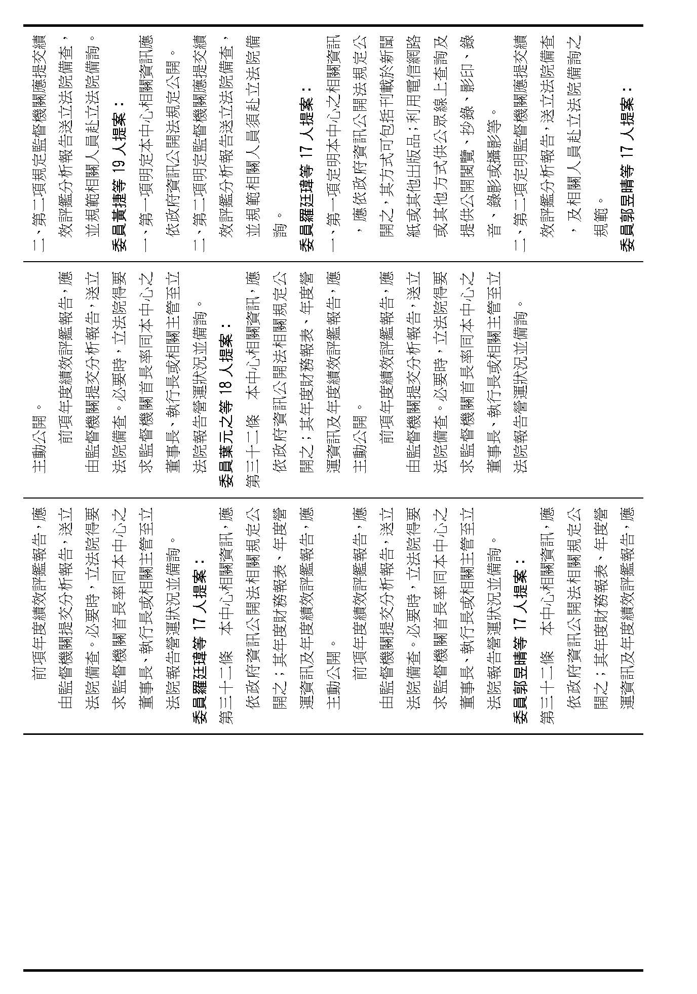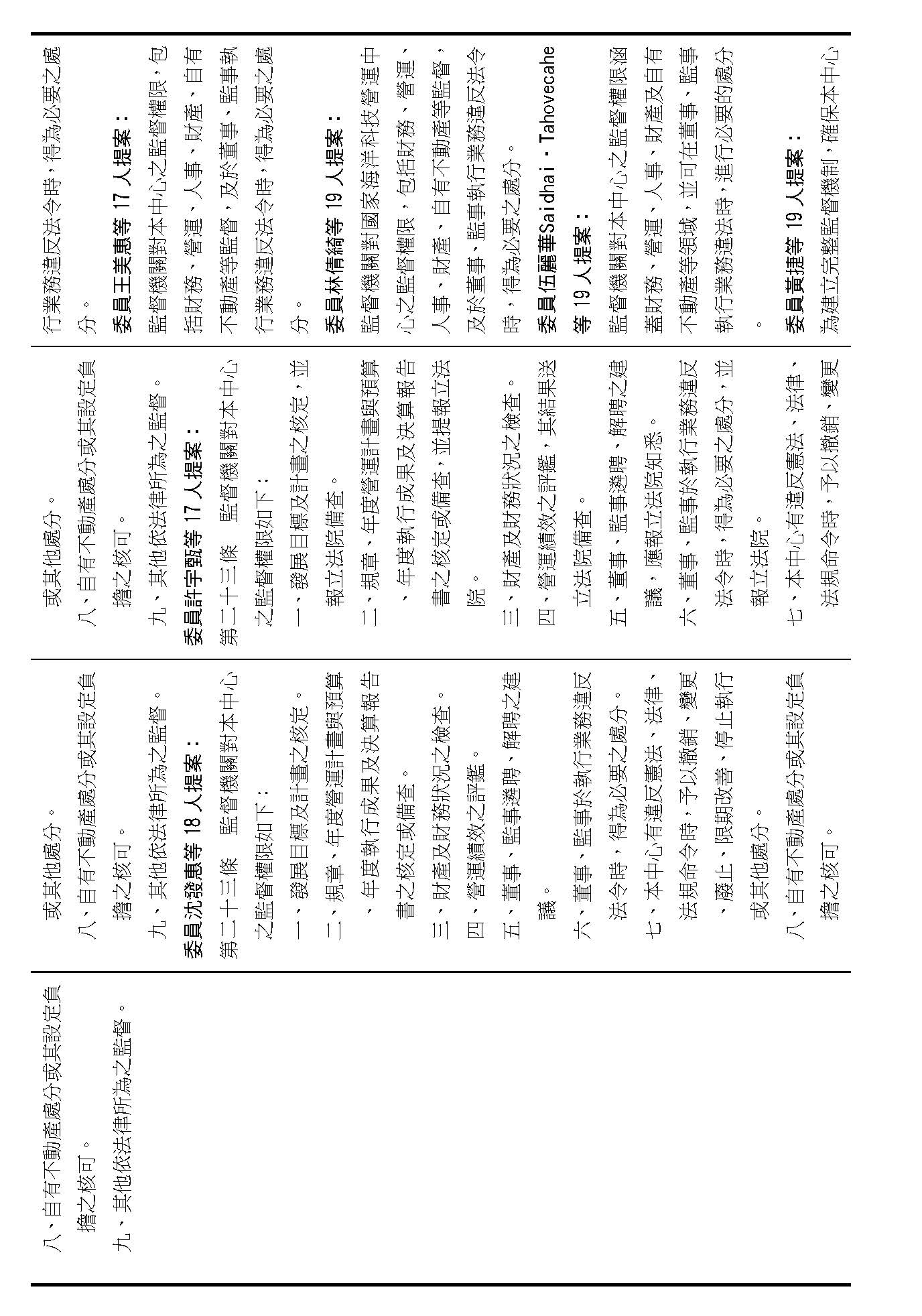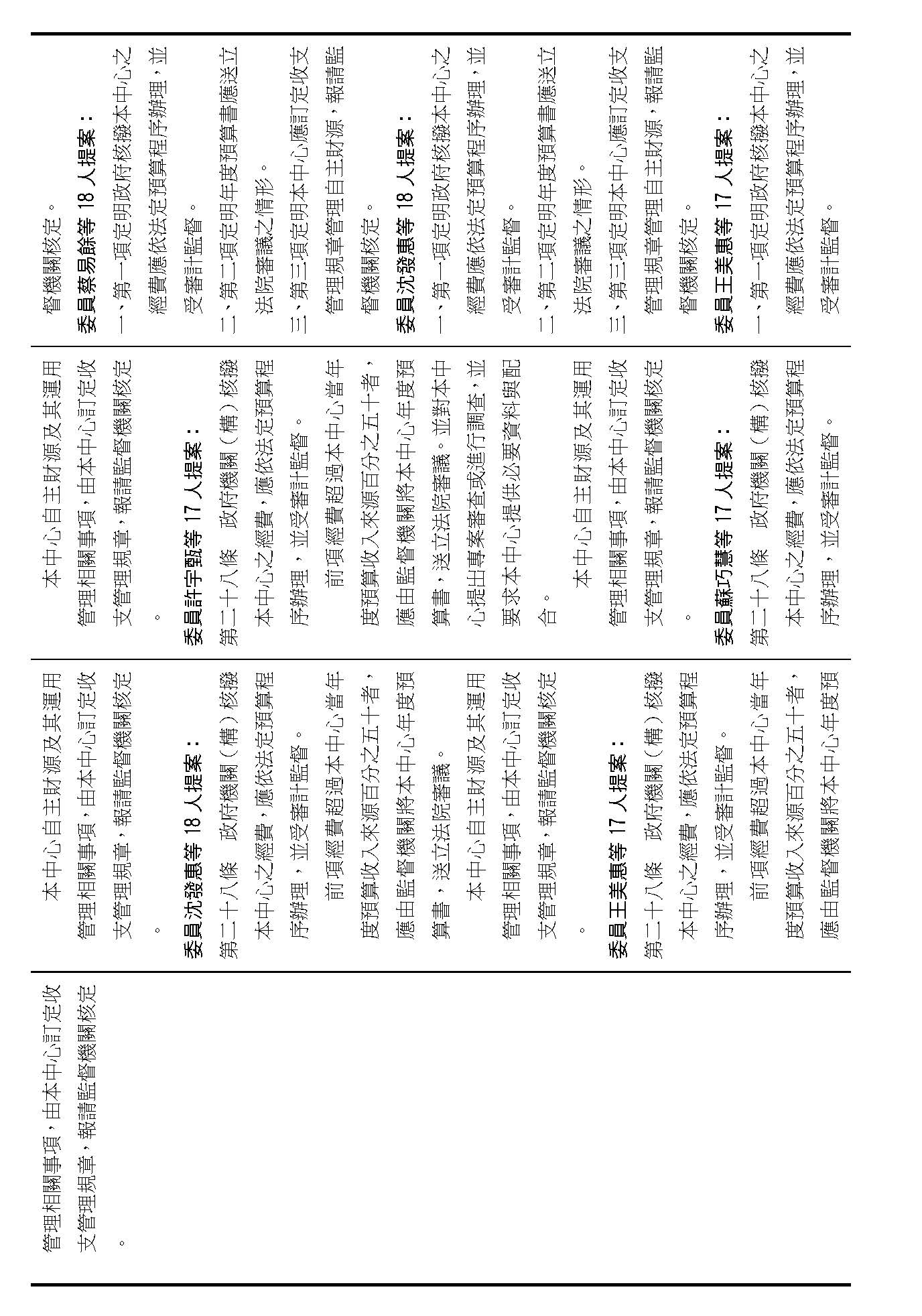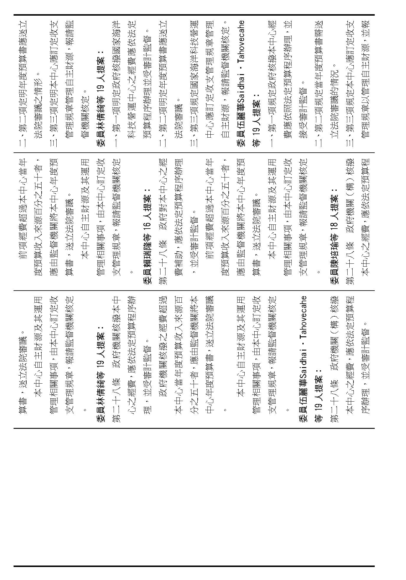主席:第二十條修正動議,在場委員有沒有不同意見?(無)如果沒有的話,我們就按照黃國昌委員等7人所提修正動議通過。