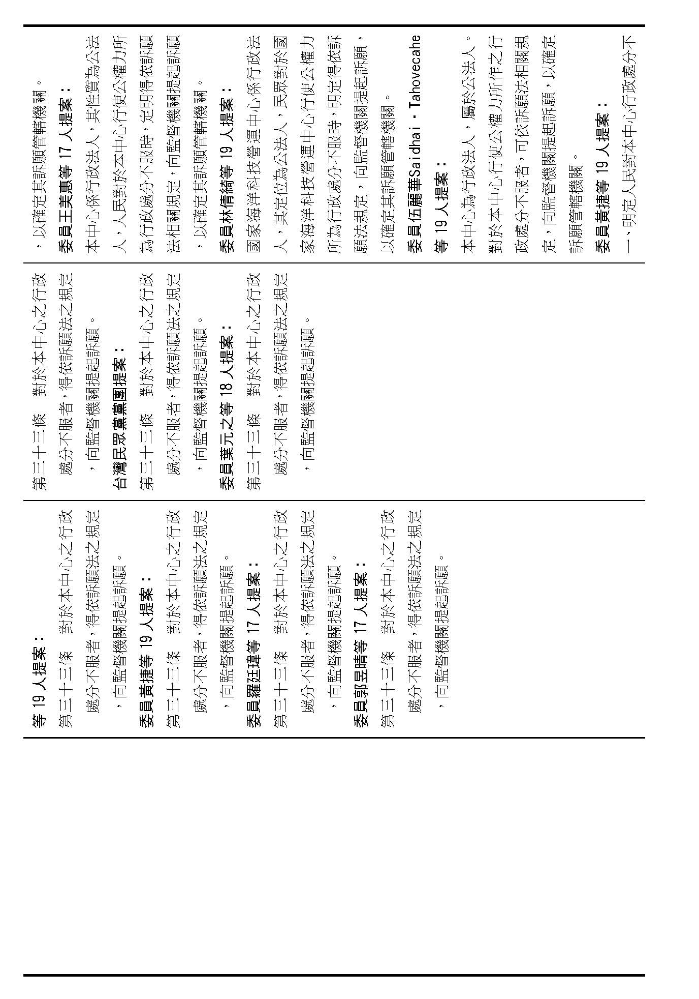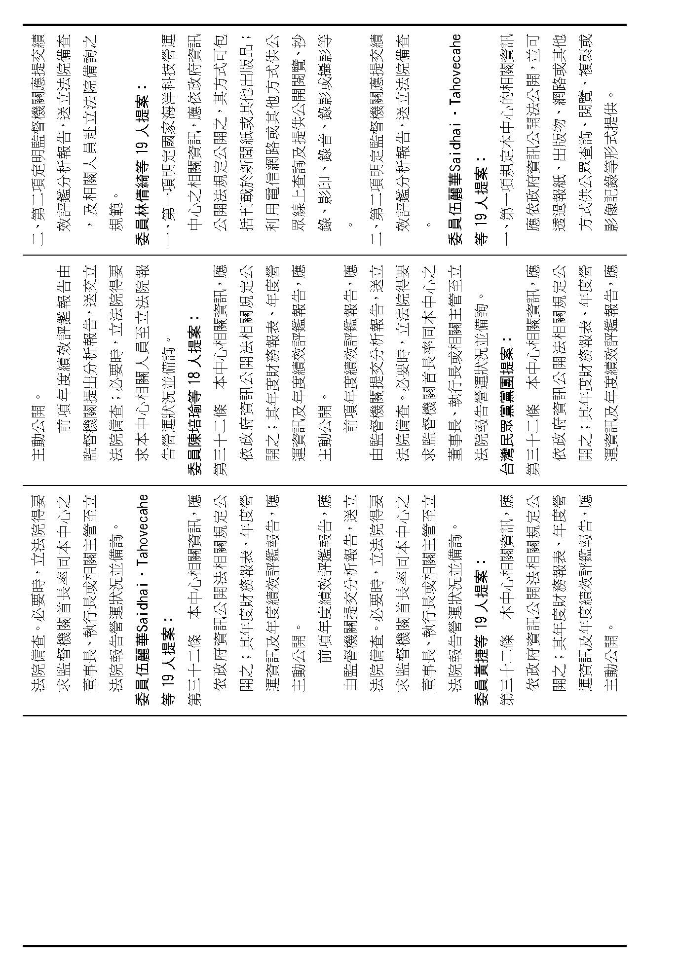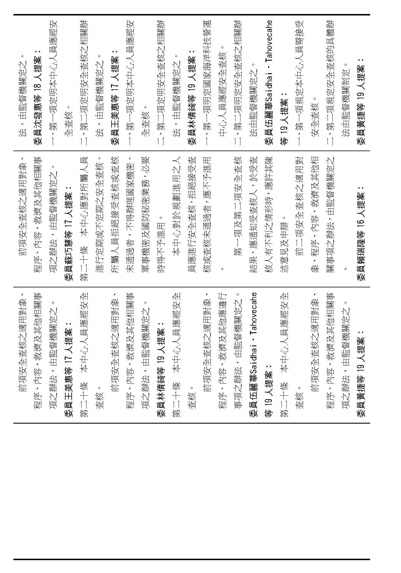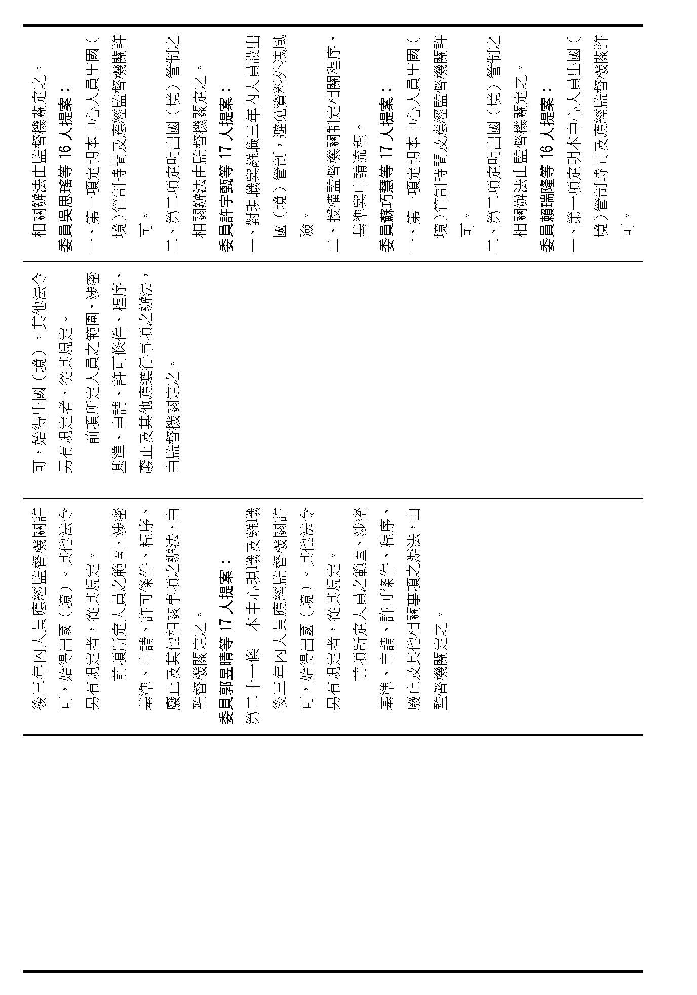 主席:第二十條修正動議,在場委員有沒有不同意見?(無)如果沒有的話,我們就按照黃國昌委員等7人所提修正動議通過。