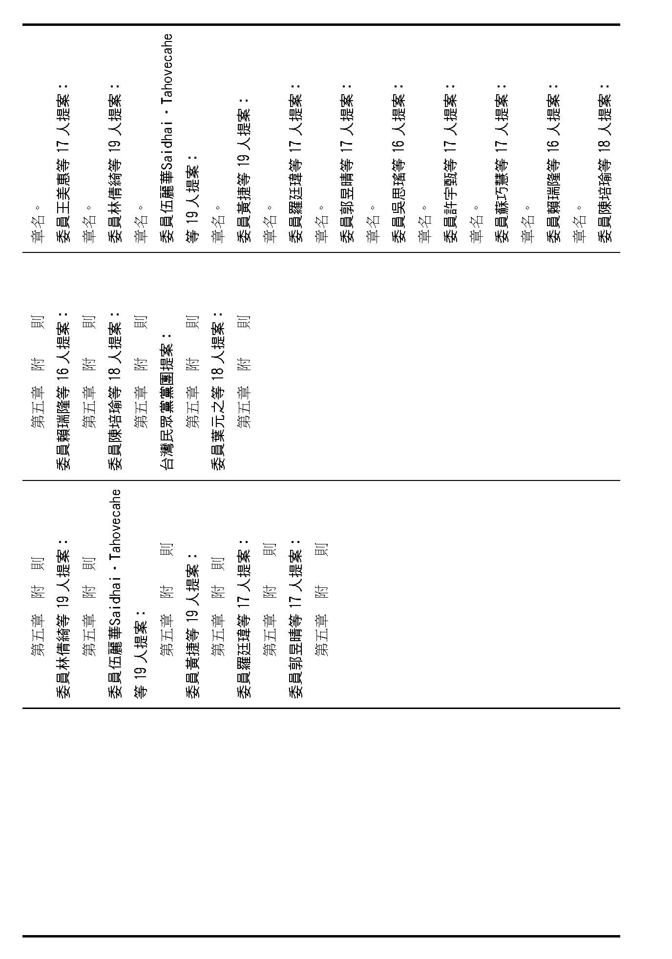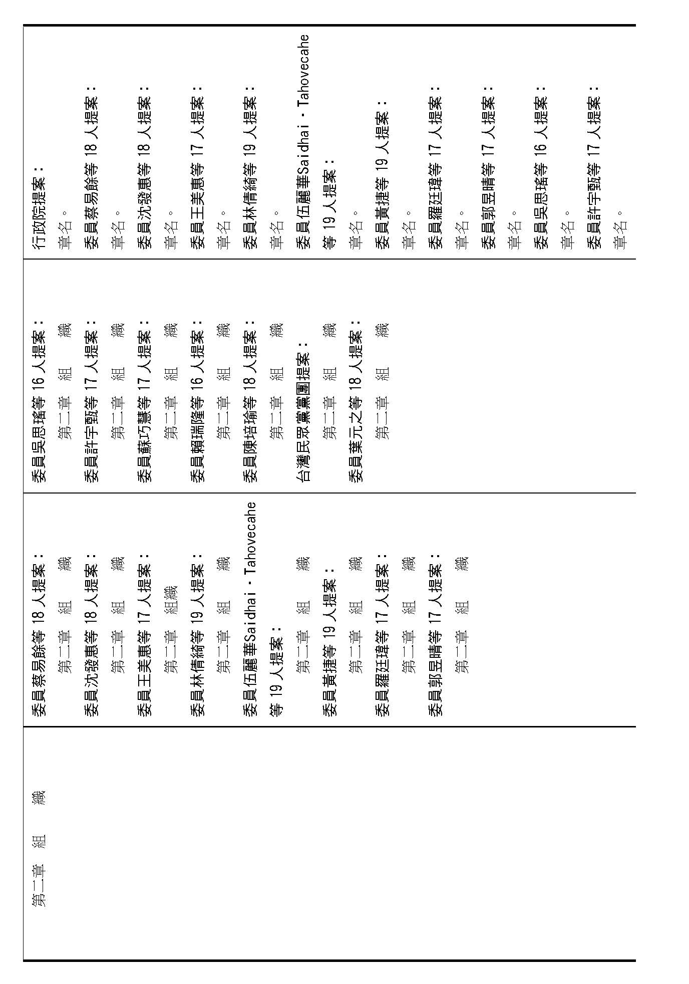 第二章的章名,各個提案的章名都相同,如果在場委員沒有意見的話,我們就按照行政院的提案通過。