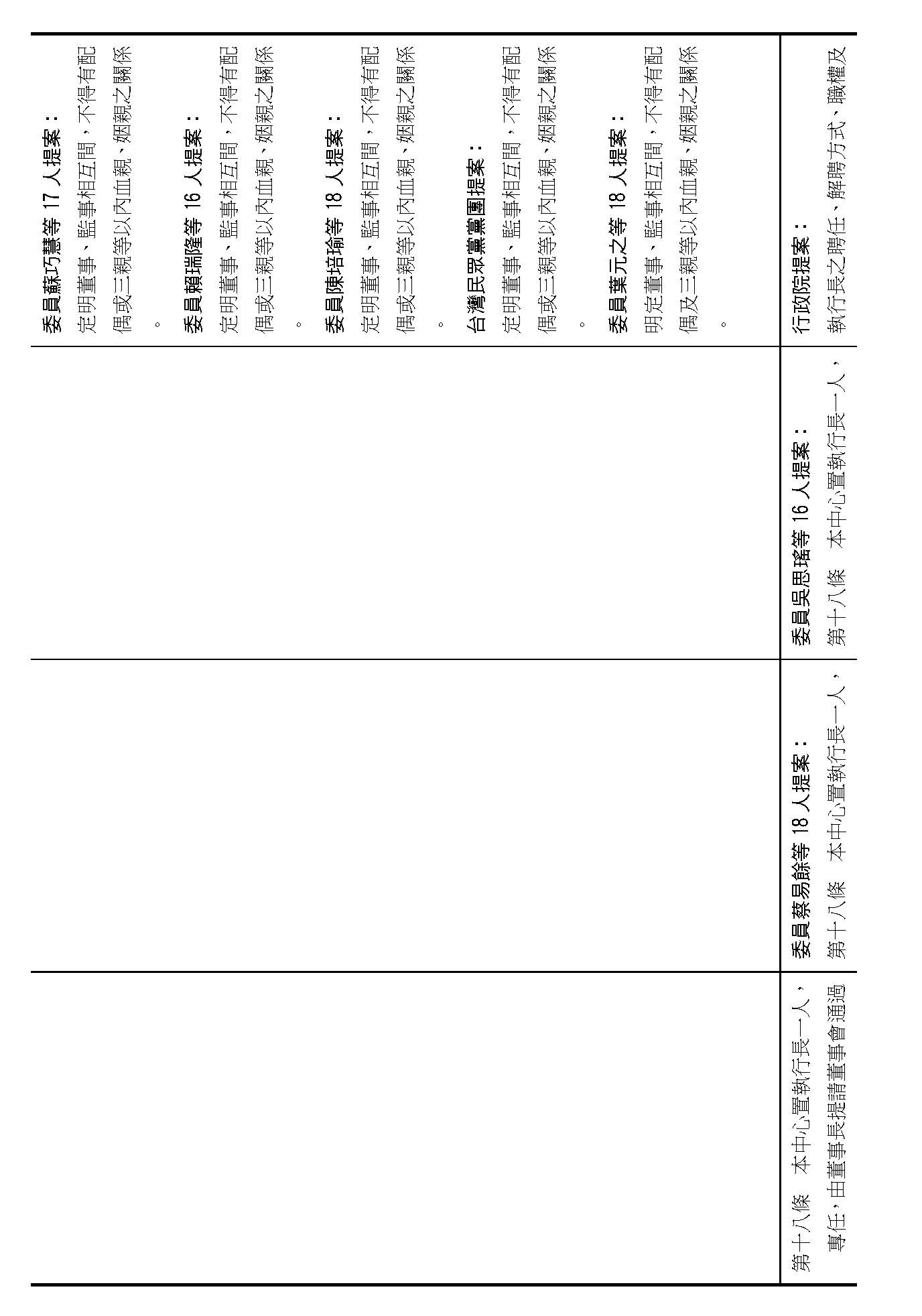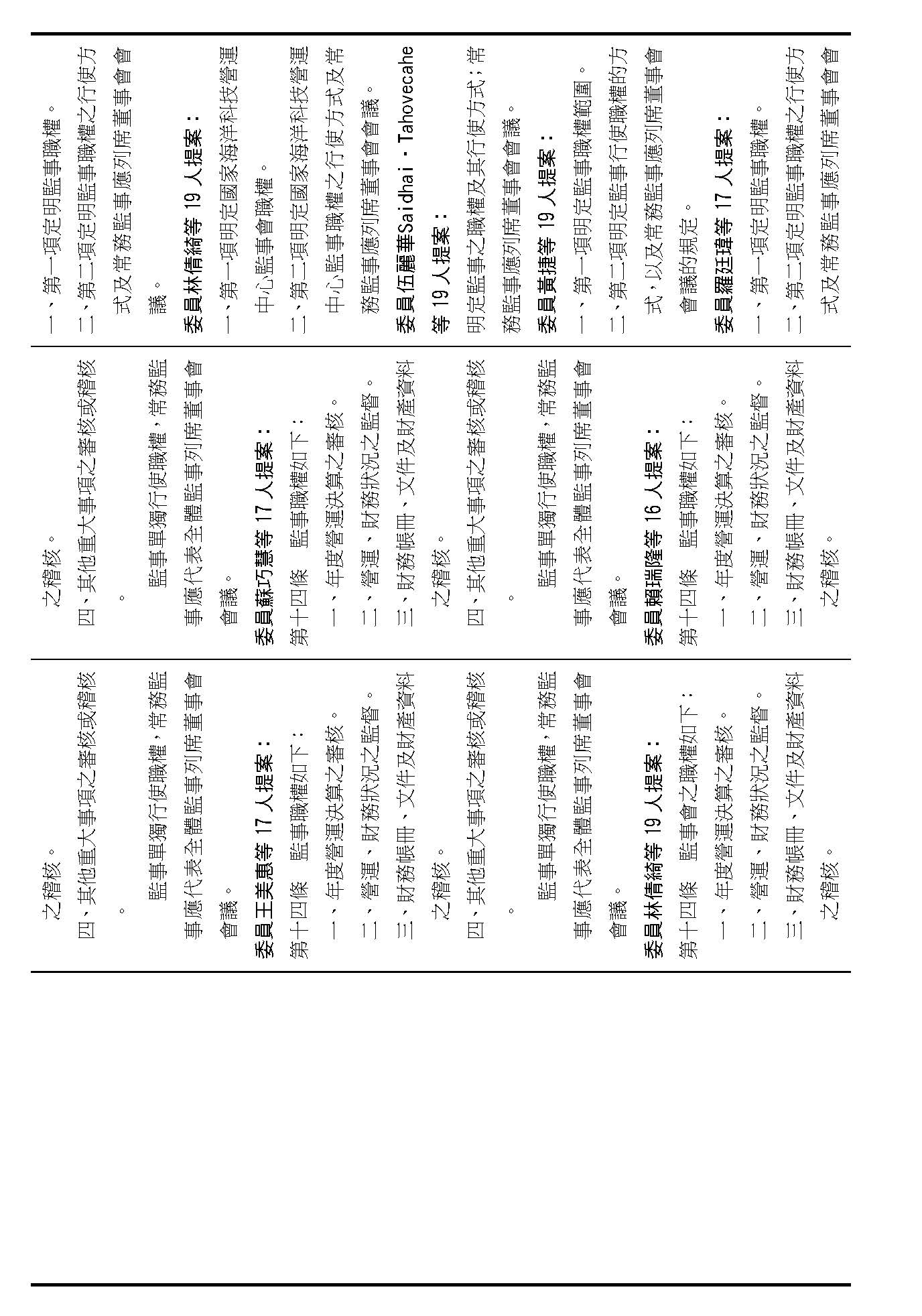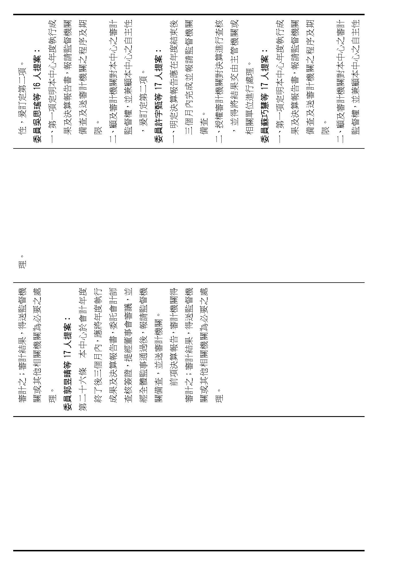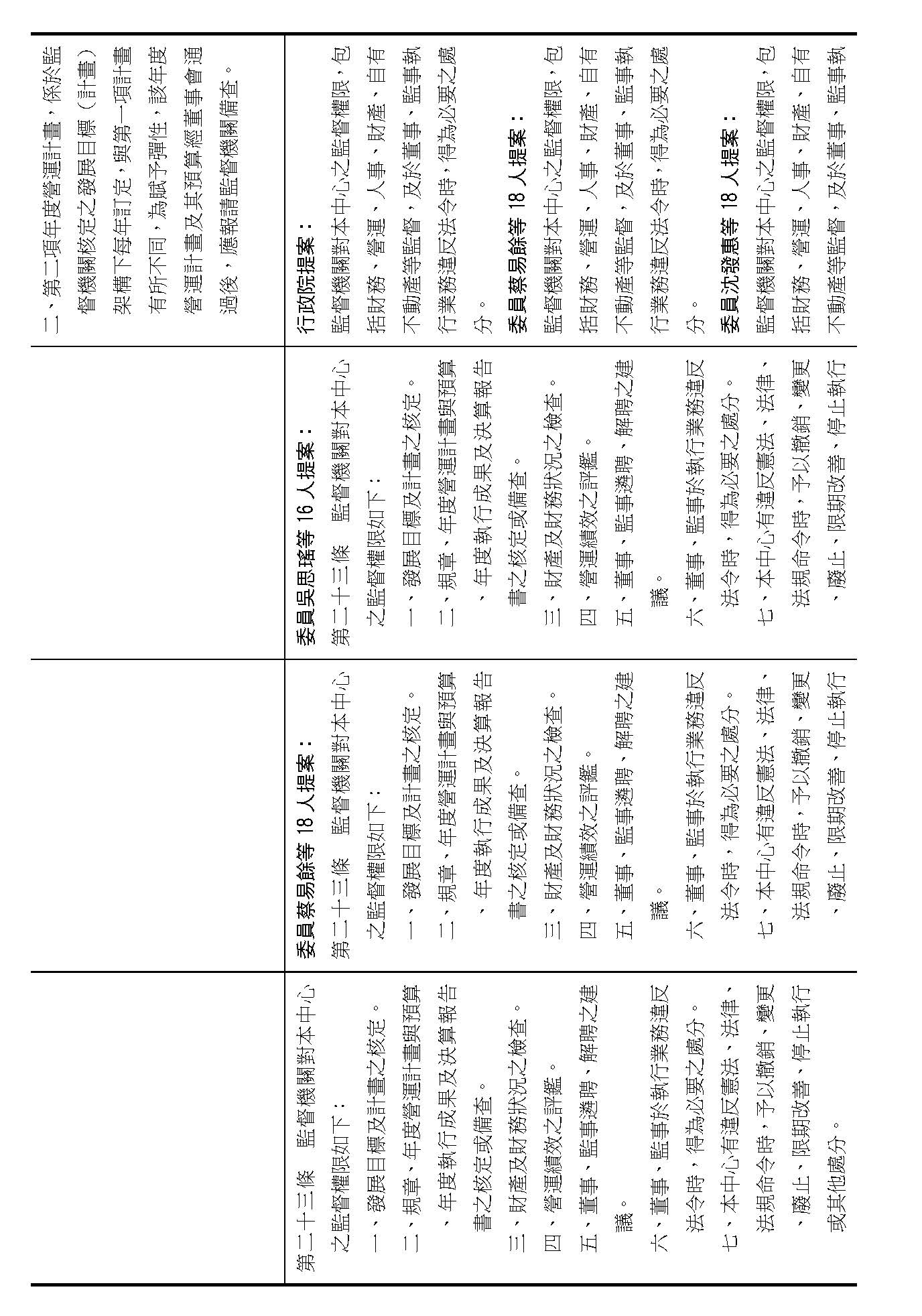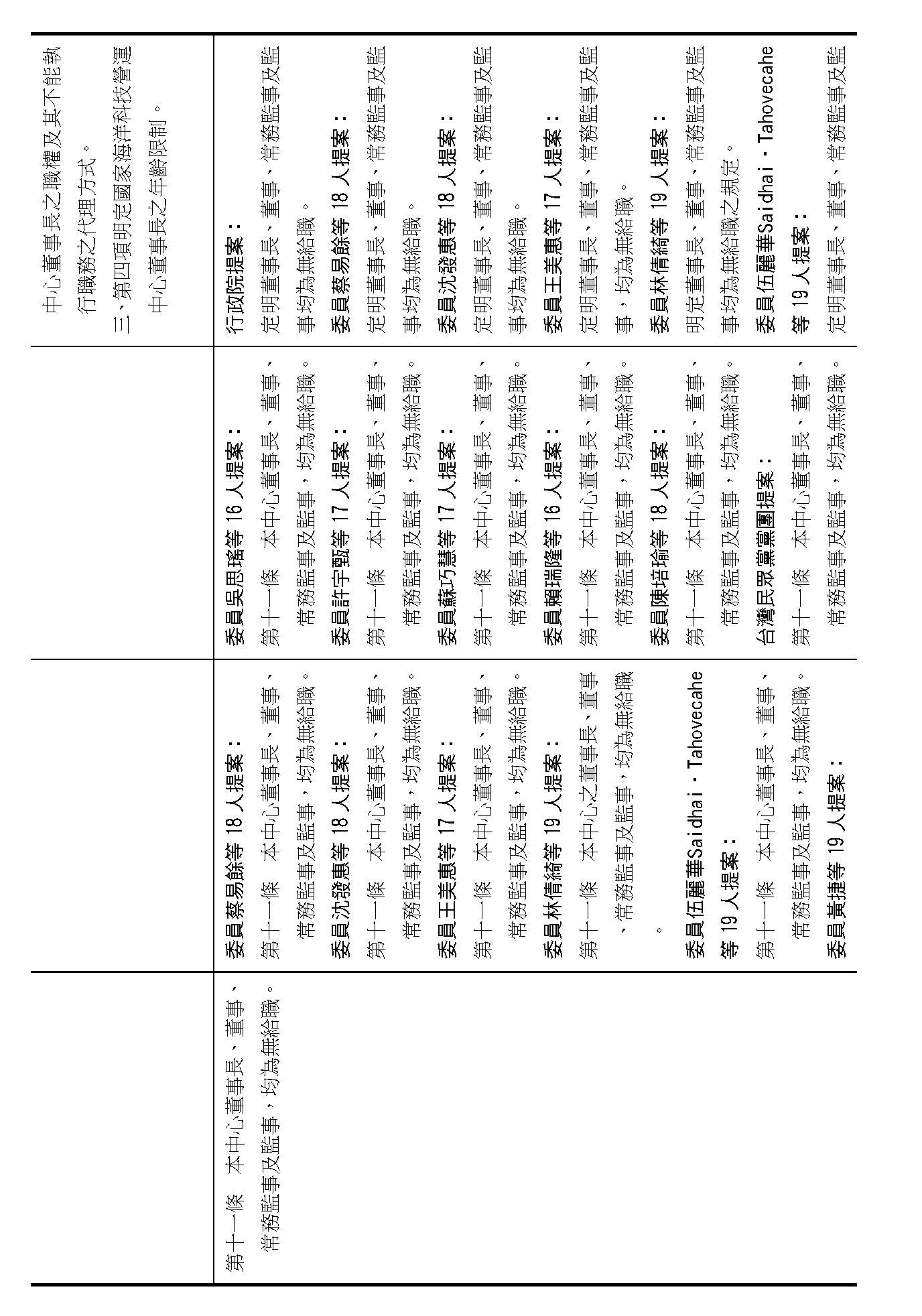 第十四條是監事的職權事項跟行使方式,請問在場委員有沒有其他不同意見?(無)沒有其他不同意見的話,就按照行政院的提案通過。